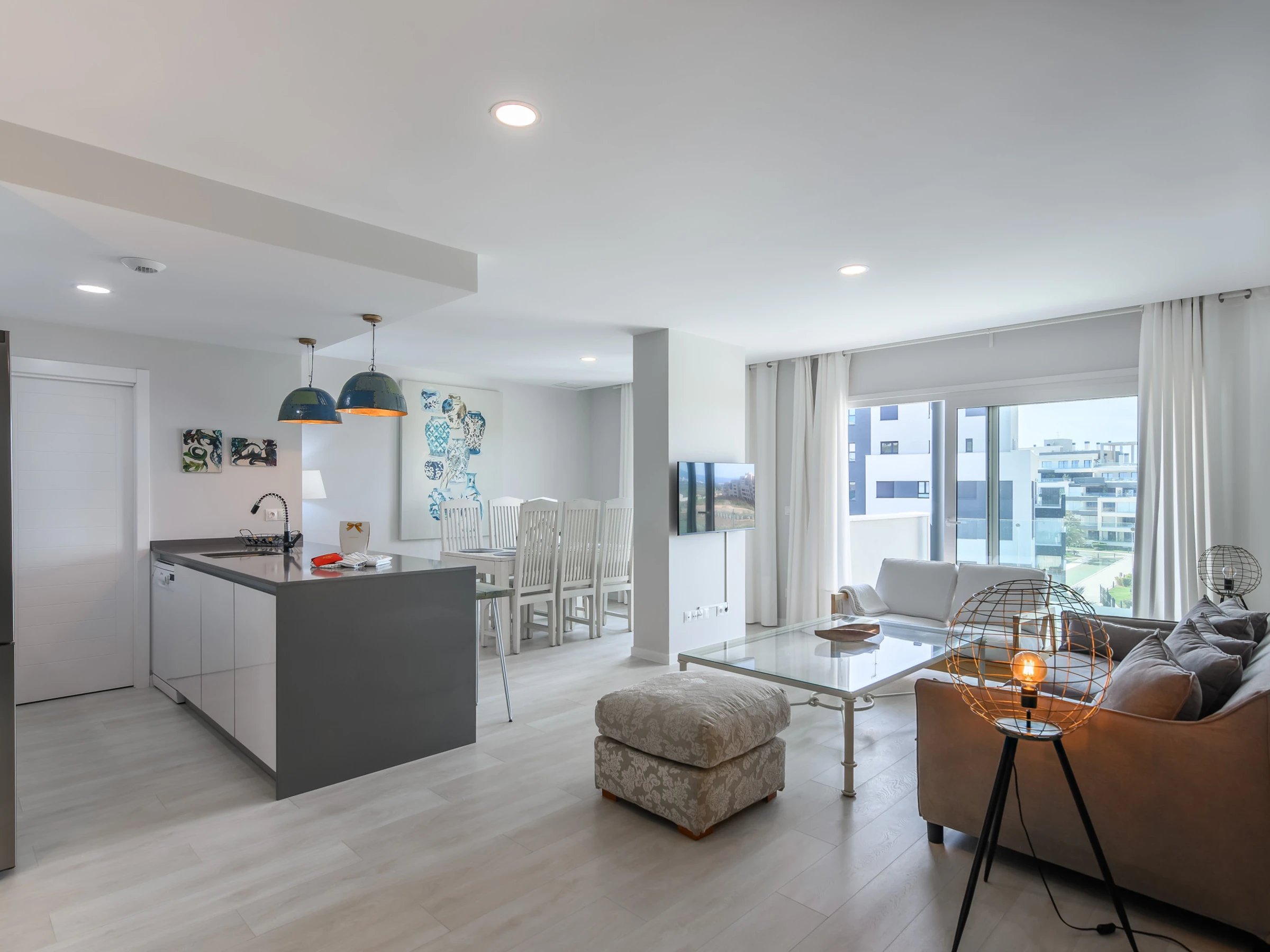 Logement de 126 m² meublé avec goût et de construction récente, situé en front de plage, avec vue sur la mer.