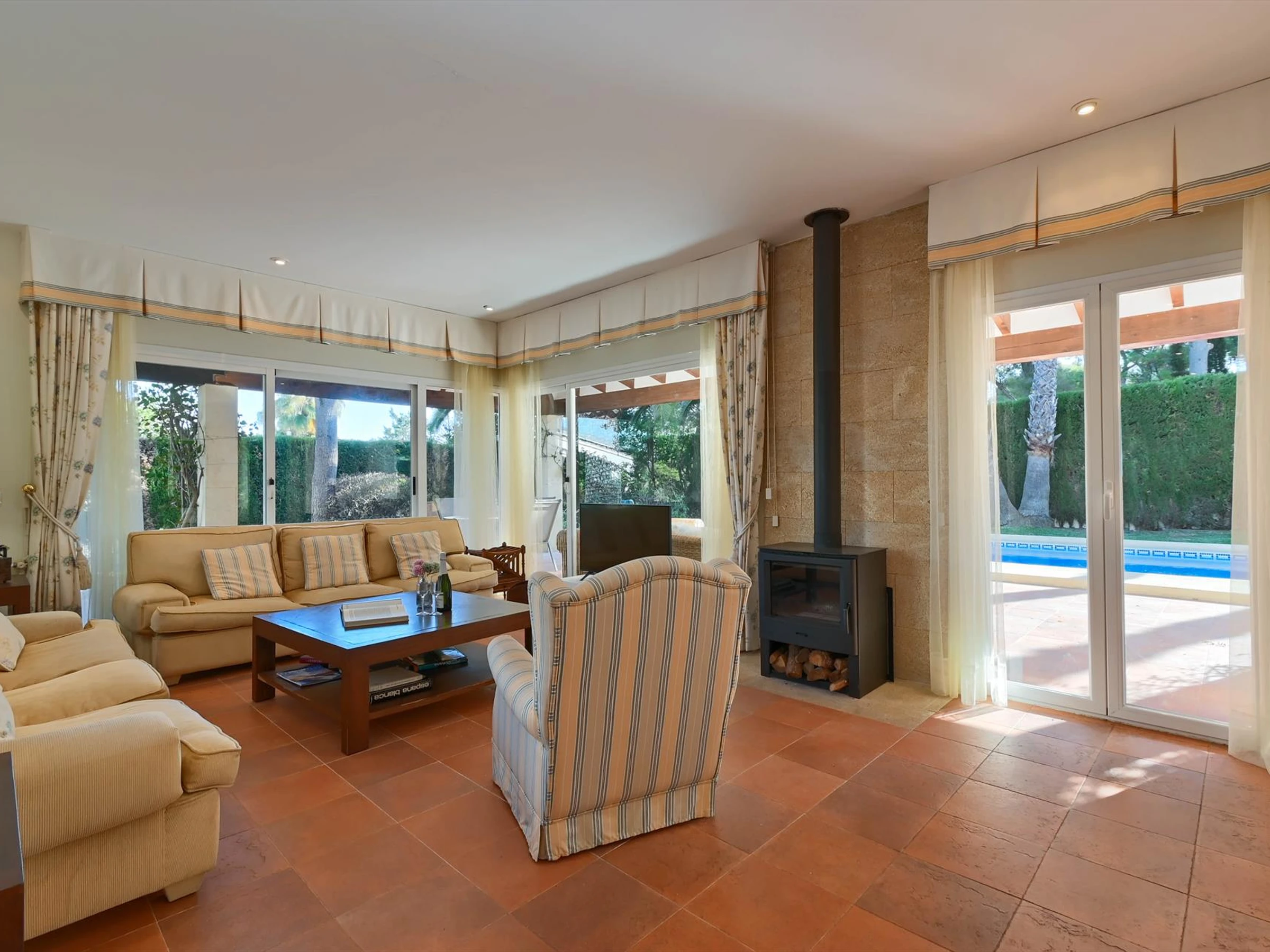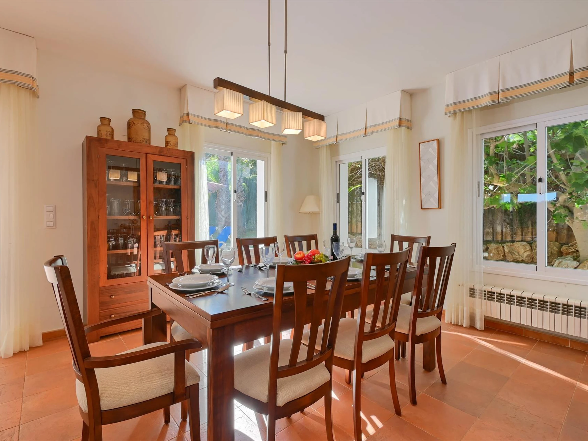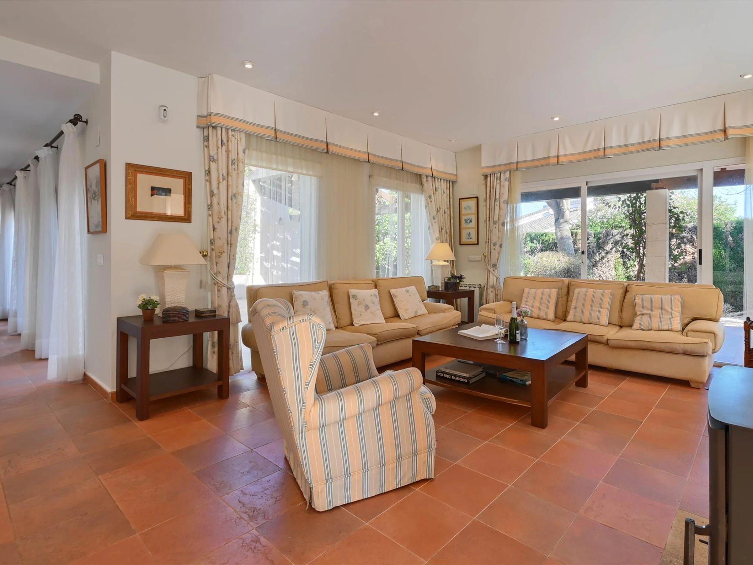 Elle dispose de jardin, terrasse, lave-linge, sèche-linge, cheminée, terrain de tennis, TV, DVD.