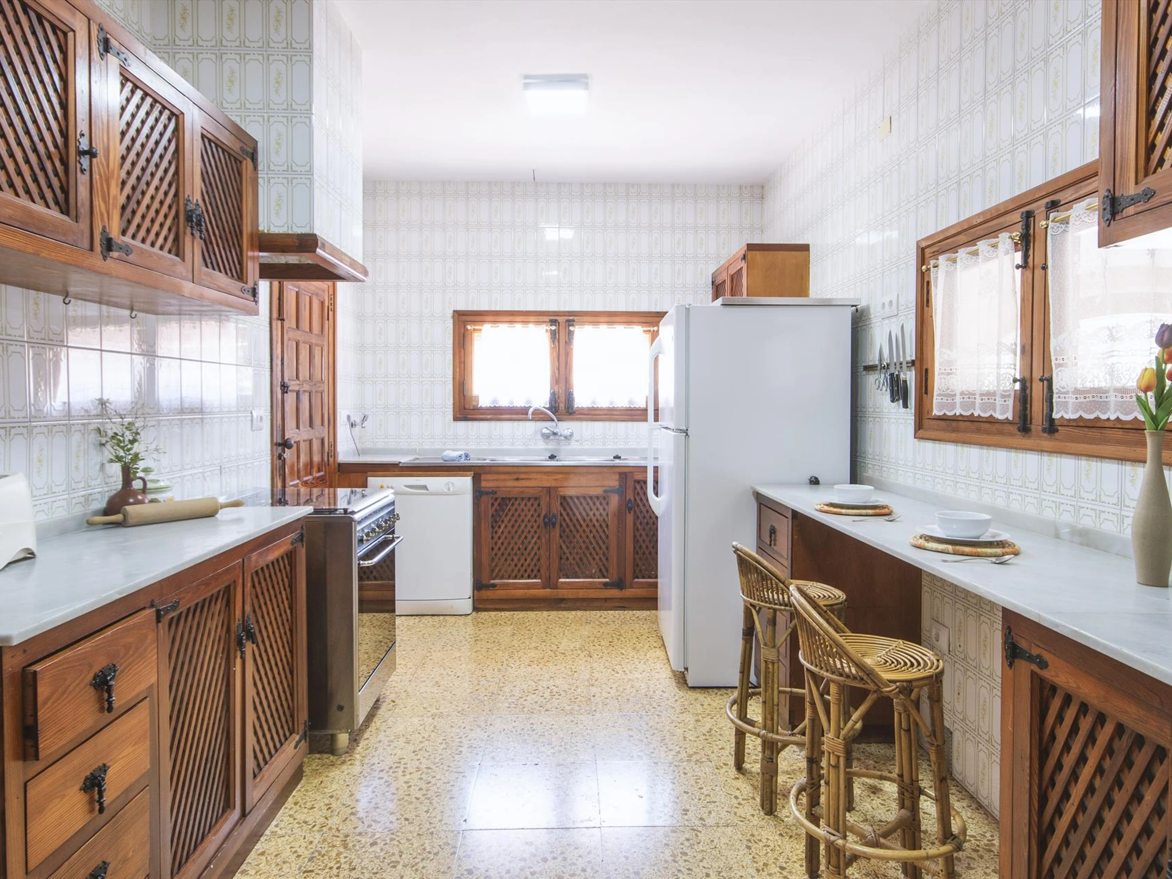 La cuisine, est équipée avec micro-ondes, four, congélateur, lave-vaisselle, cafetière et grille pain.