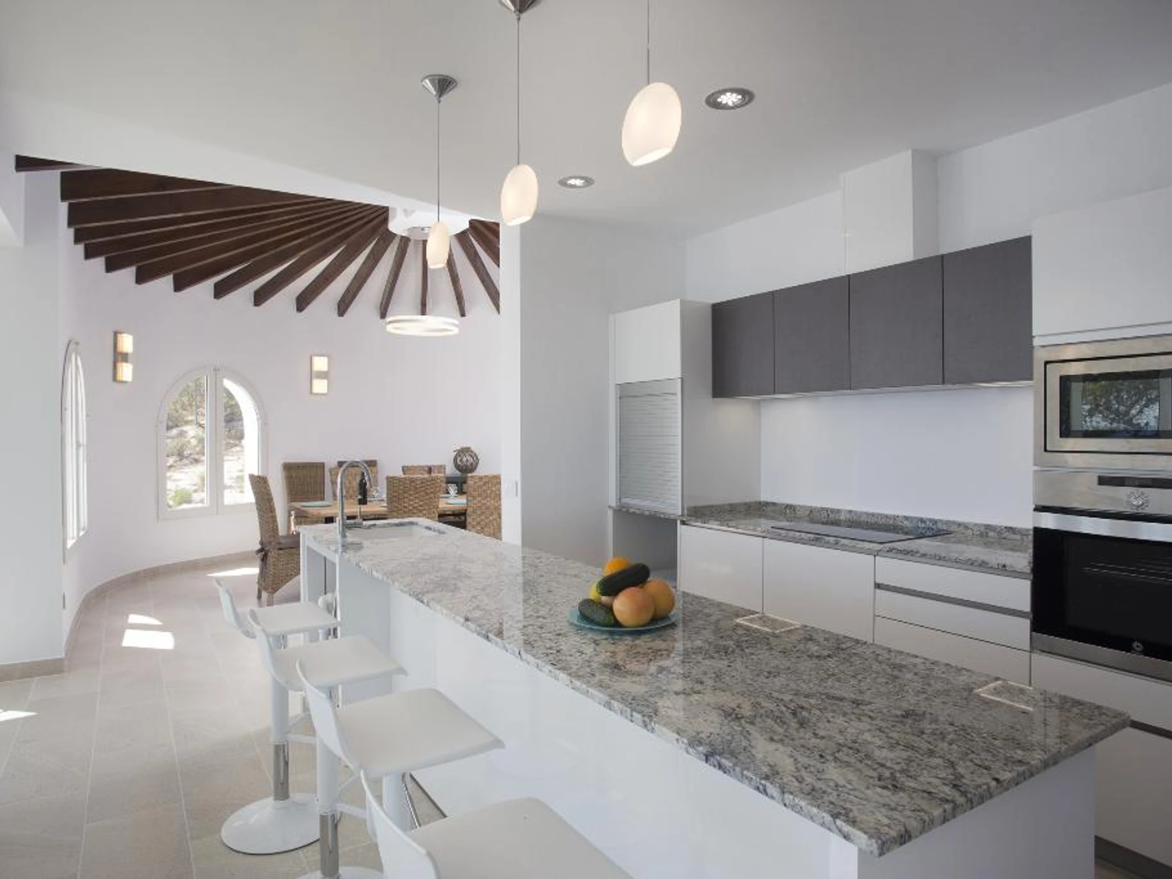 La cuisine, est équipée avec micro-ondes, four, congélateur, lave-vaisselle, cafetière et grille pain.