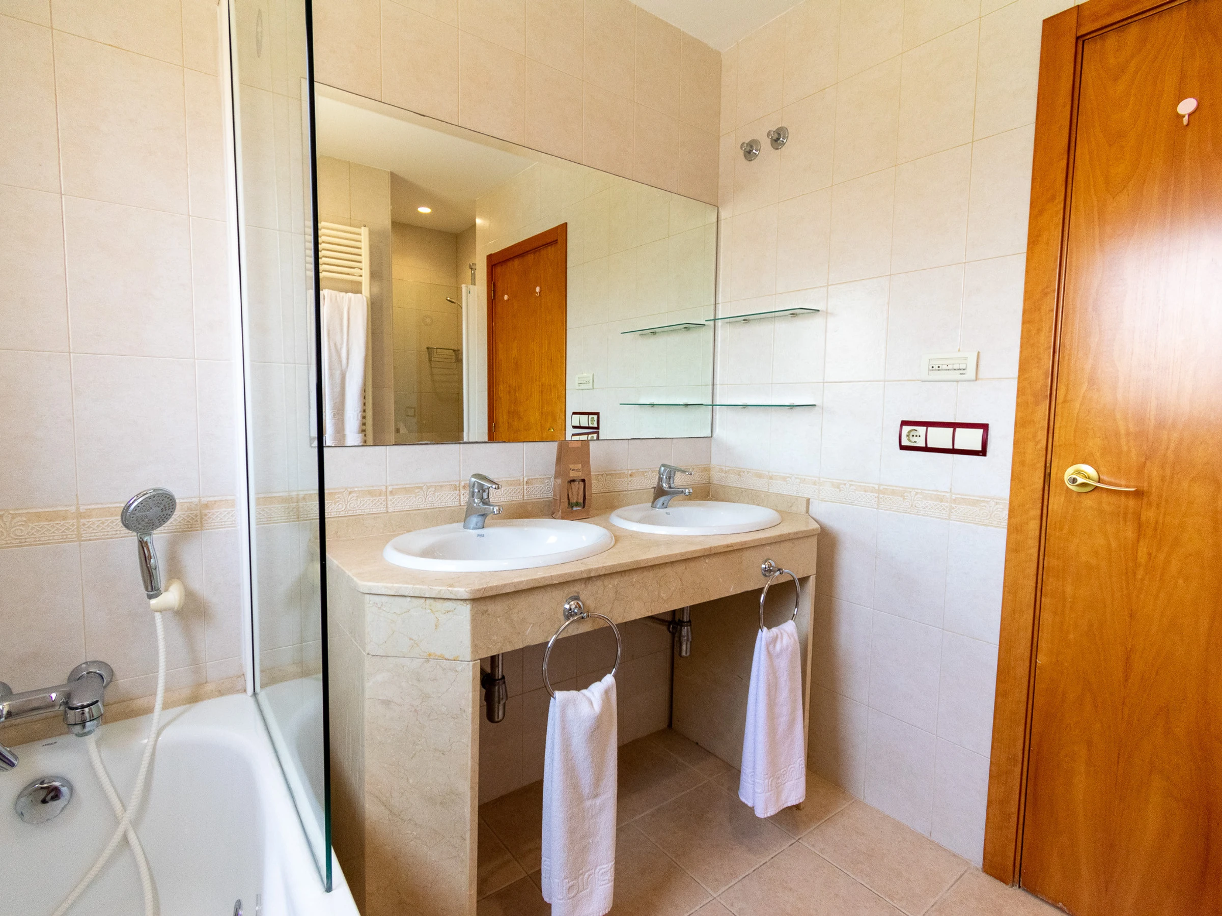 Logement de 85 m² confortable et de construction récente, avec vue sur la piscine.