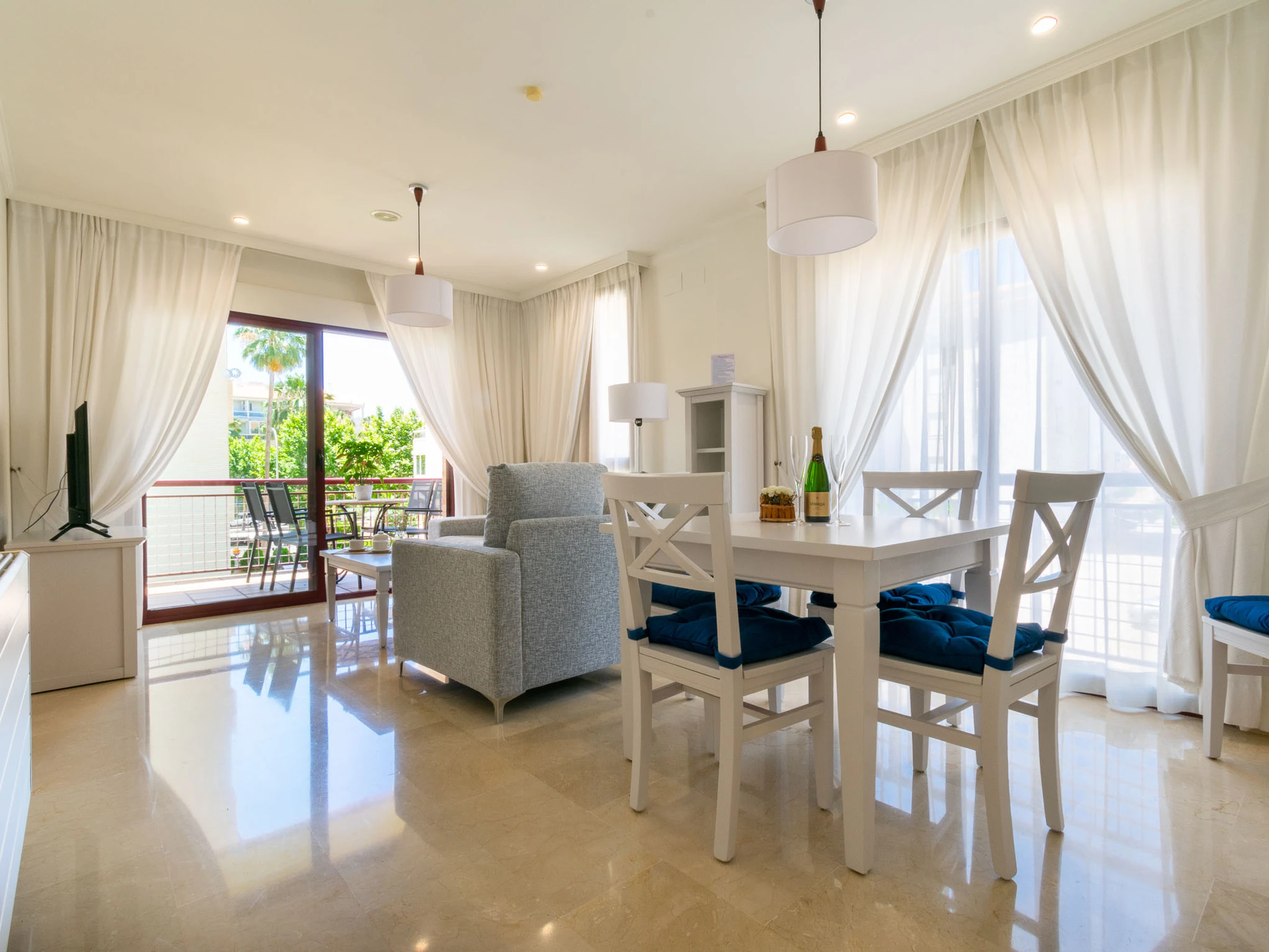 Elle dispose de ascenseur, terrasse, lave-linge, fer à repasser, coffre-fort, accès internet (wifi), sèche-cheveux, chaudière au gaz individuelle, climatisation, piscine collective, garage même bâtiment, 3 Télévisions, tv satellite (Langues: Anglais, Allemand, Hollandais, Français, Norvégien).