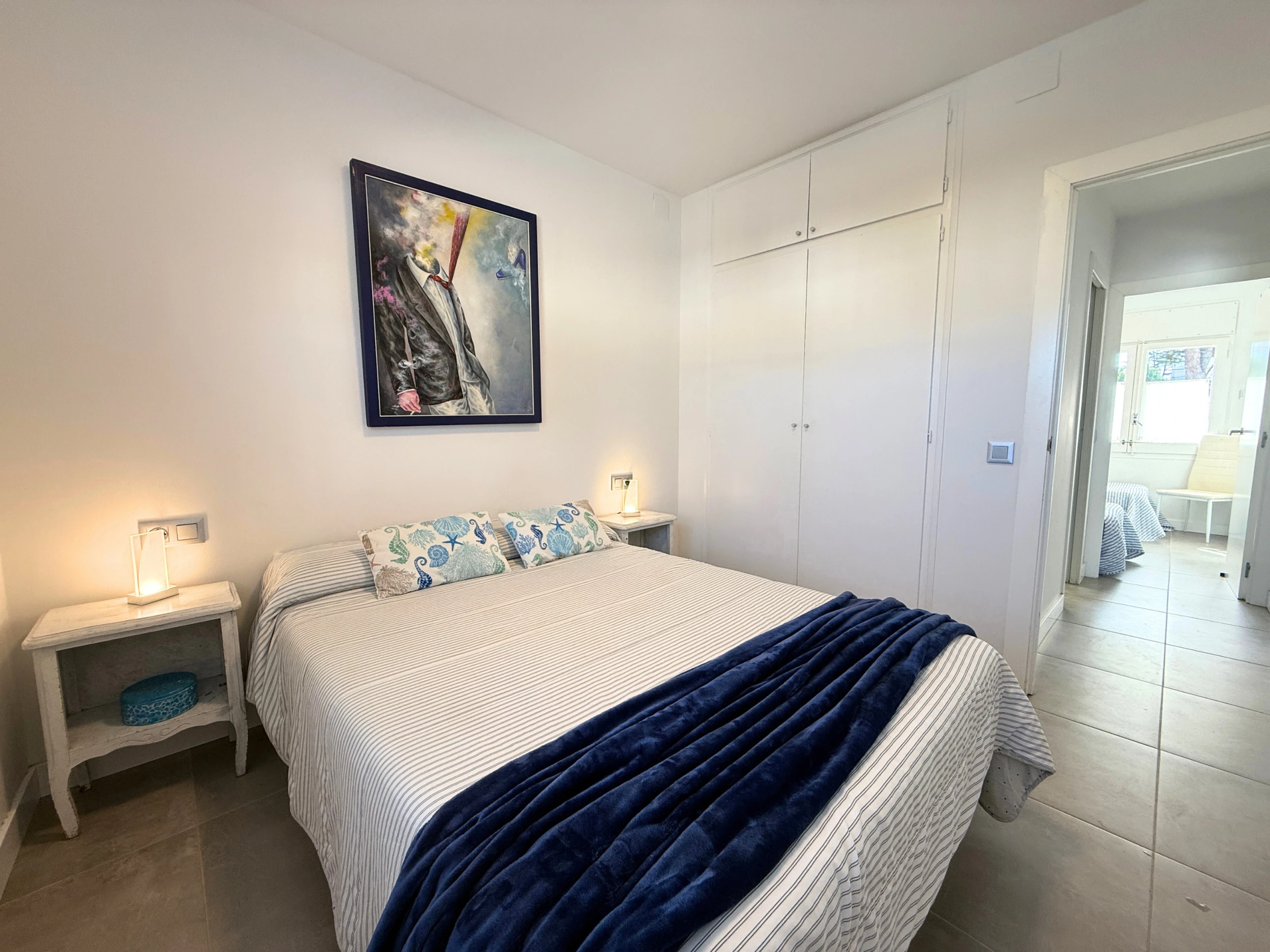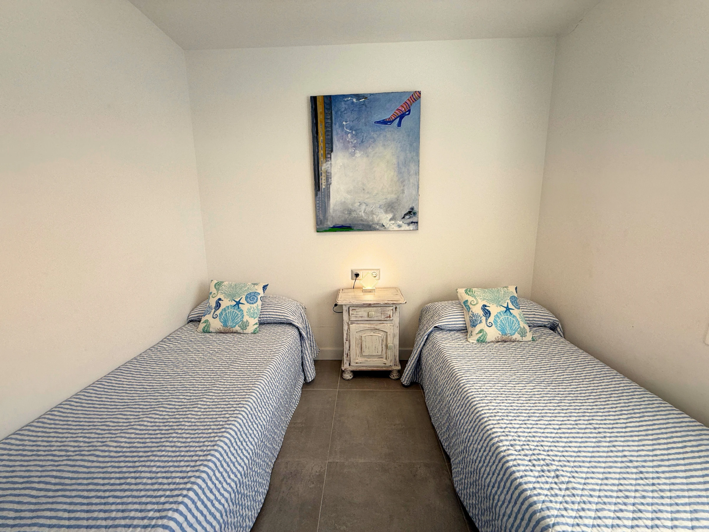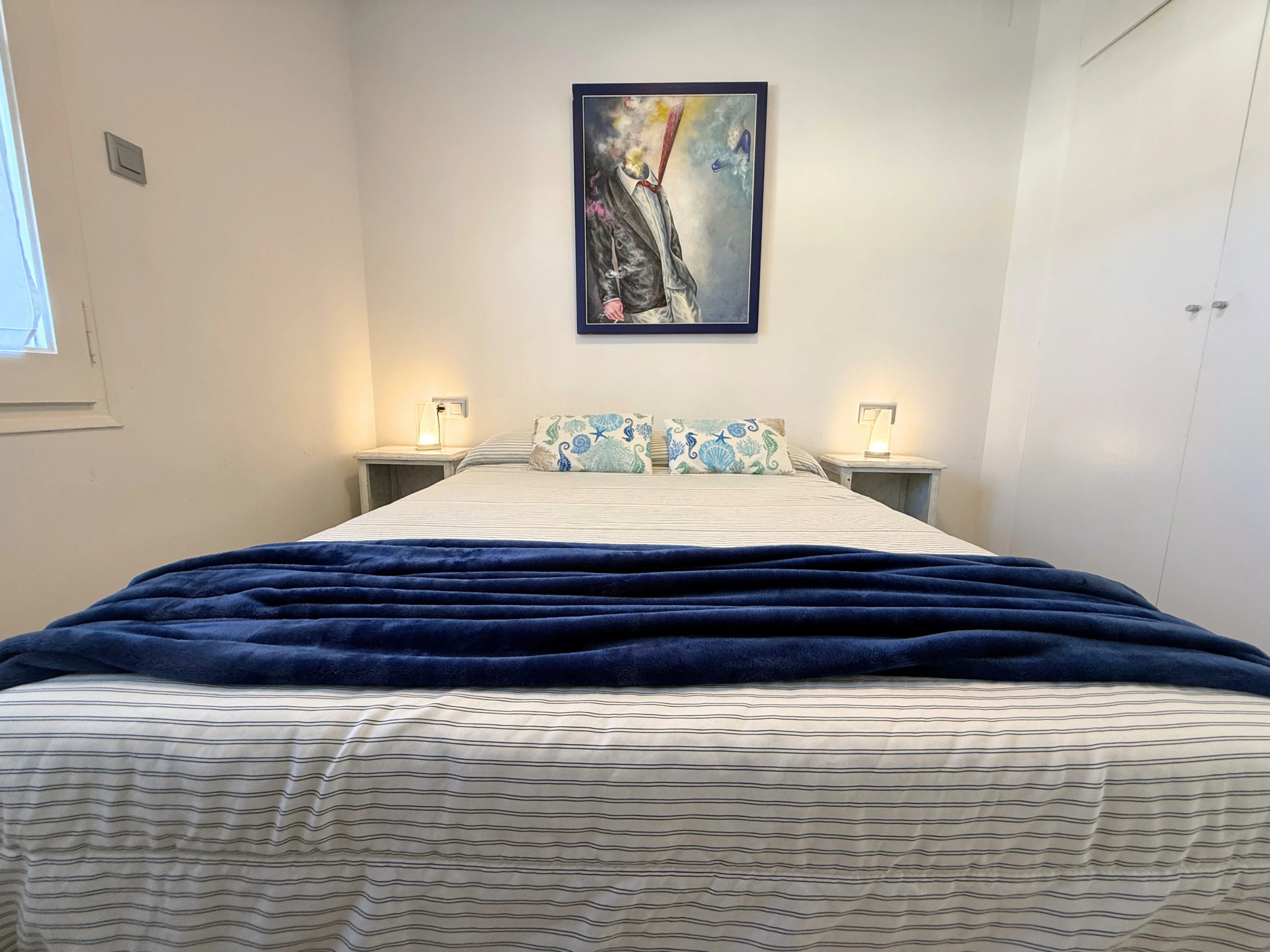 L’appartement dispose de deux chambres confortables : une avec lit double et l’autre avec deux lits simples, ainsi qu’une salle de bain complète avec douche. Pour un séjour encore plus agréable, il est équipé de la climatisation dans le séjour, télévision, lave-linge et d’une place de parking privée dans le même immeuble.
