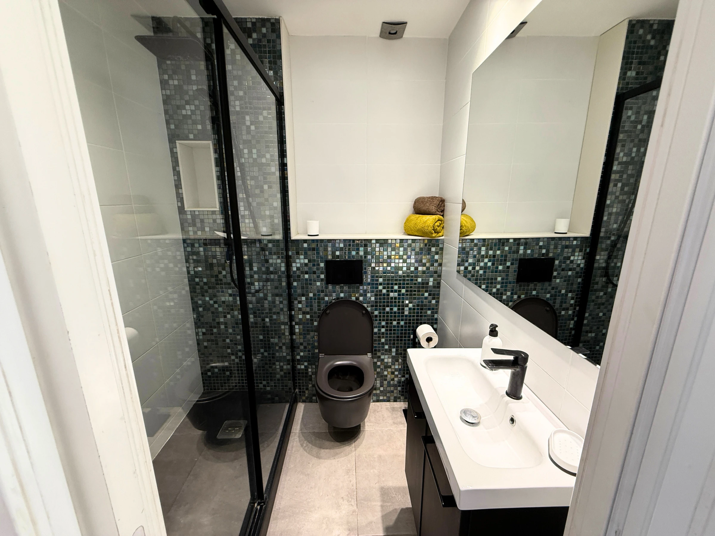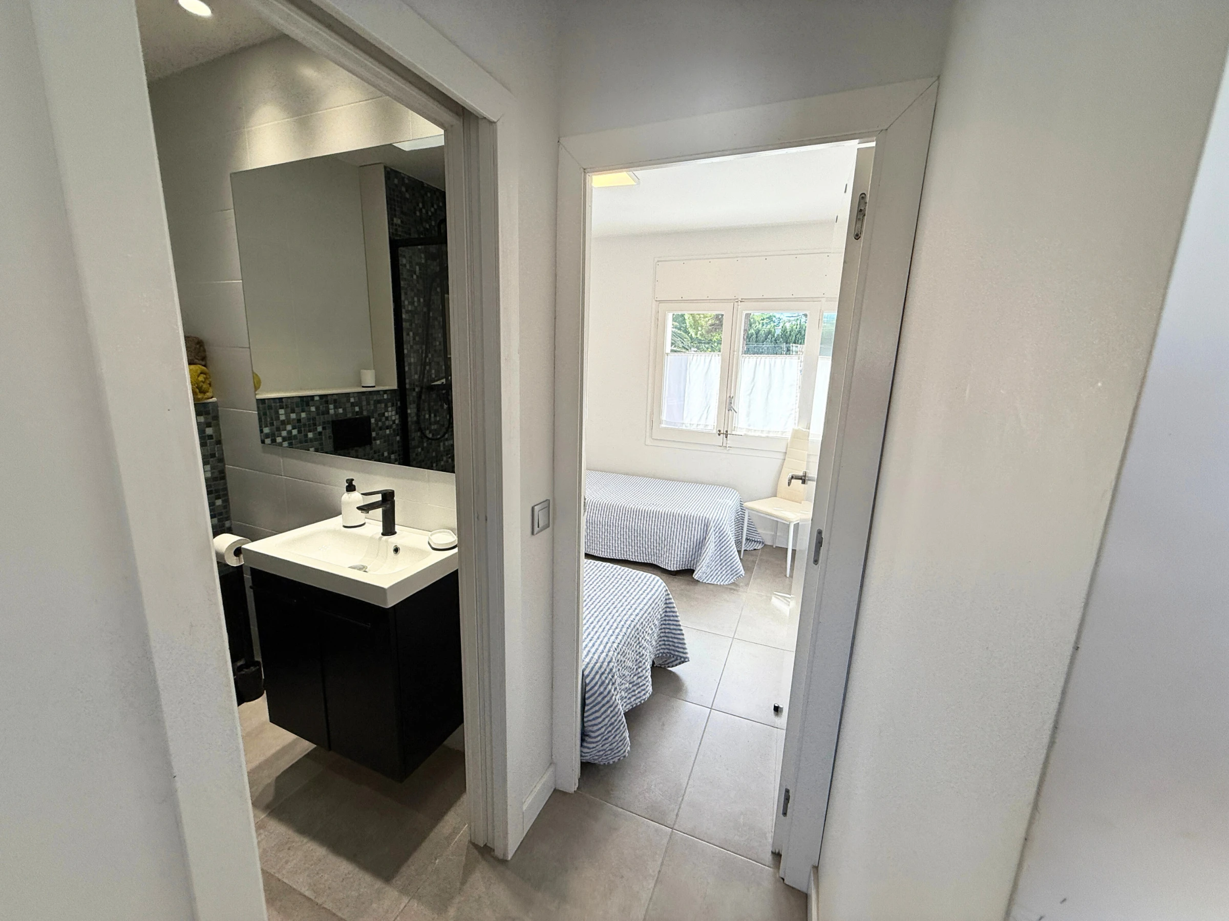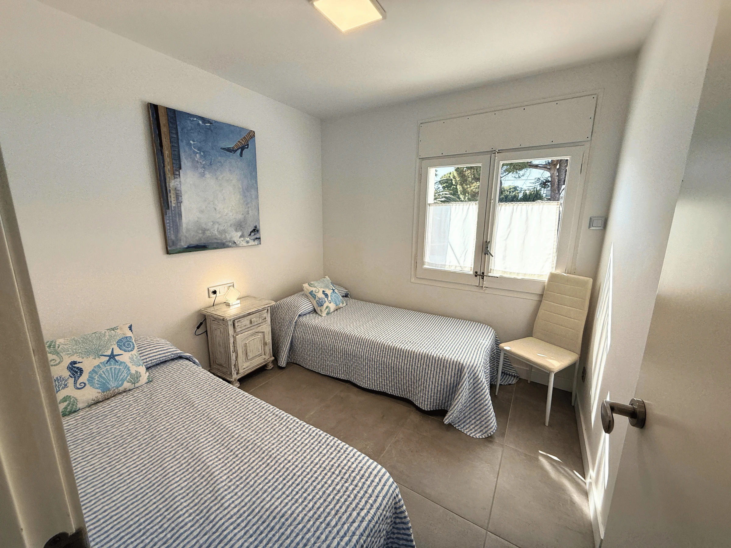 L’appartement dispose de deux chambres confortables : une avec lit double et l’autre avec deux lits simples, ainsi qu’une salle de bain complète avec douche. Pour un séjour encore plus agréable, il est équipé de la climatisation dans le séjour, télévision, lave-linge et d’une place de parking privée dans le même immeuble.