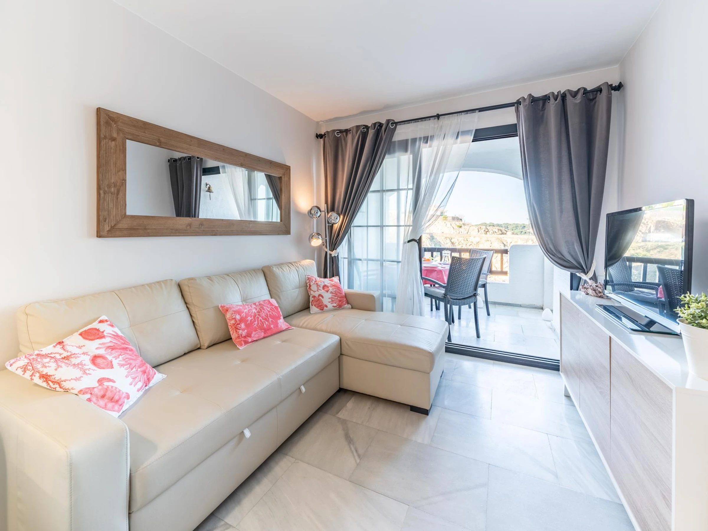 L'appartement situé au deuxième étage comprend une chambre avec lit double, une salle de bain avec douche, une kitchenette et un salon. Il dispose également d'une magnifique terrasse où vous pourrez contempler la mer et vous détendre au soleil.