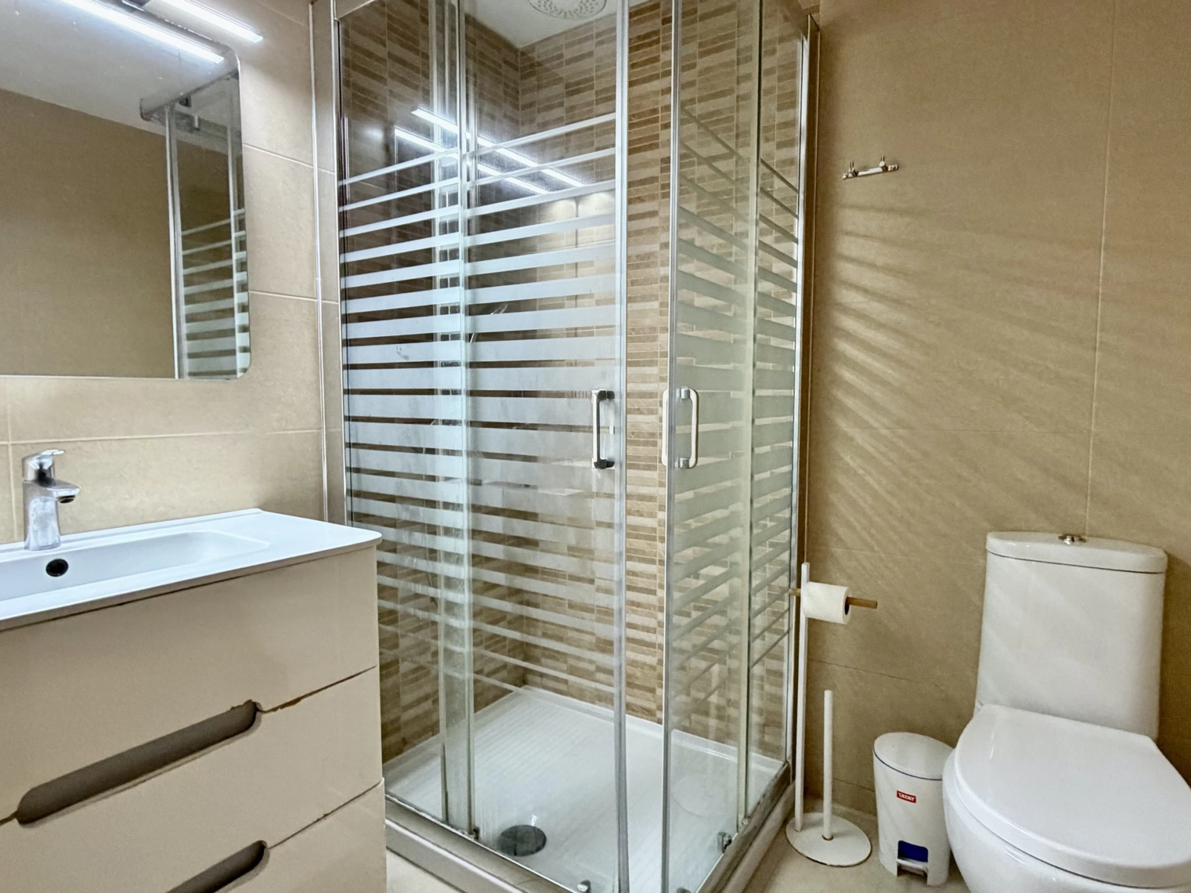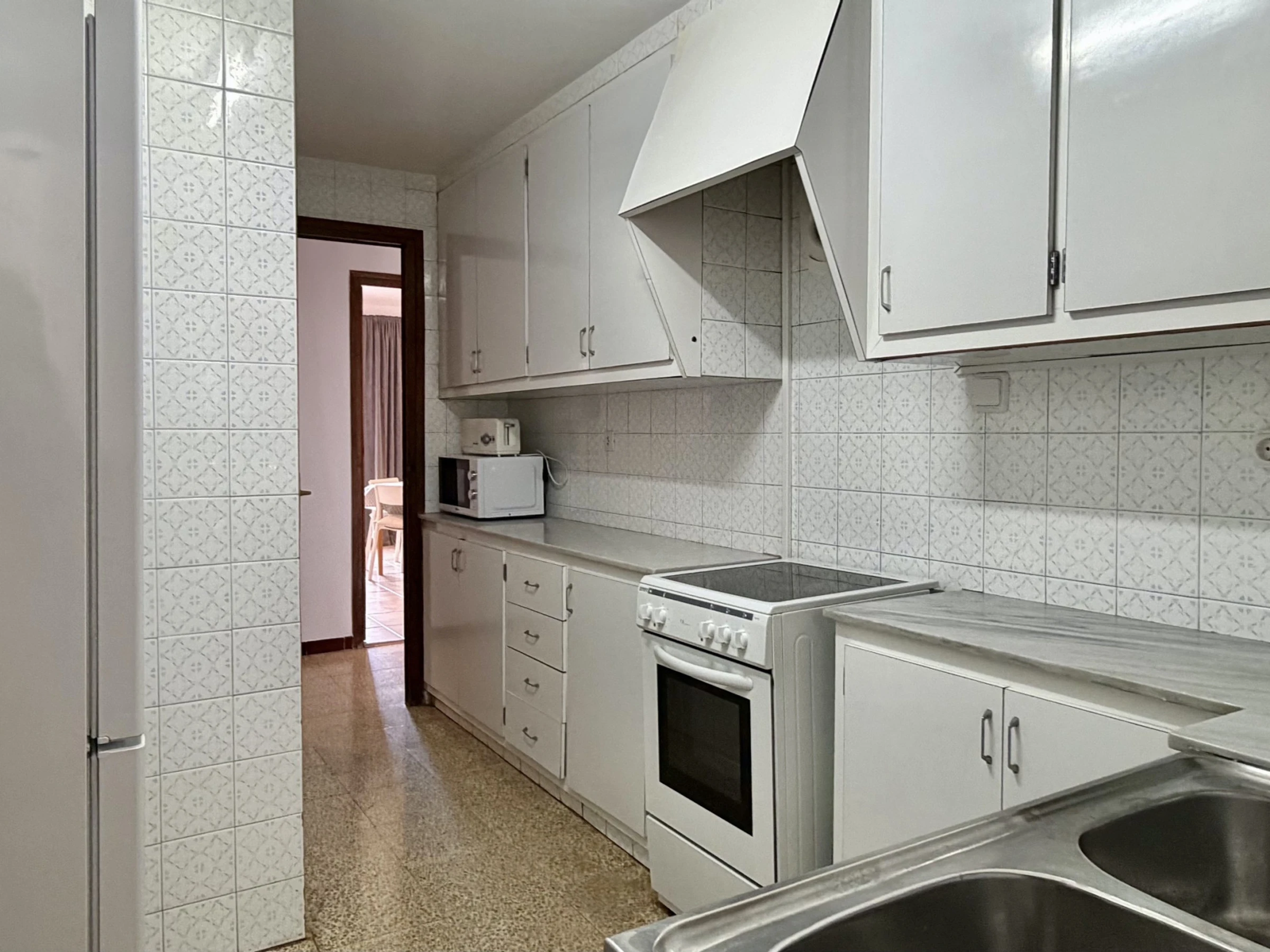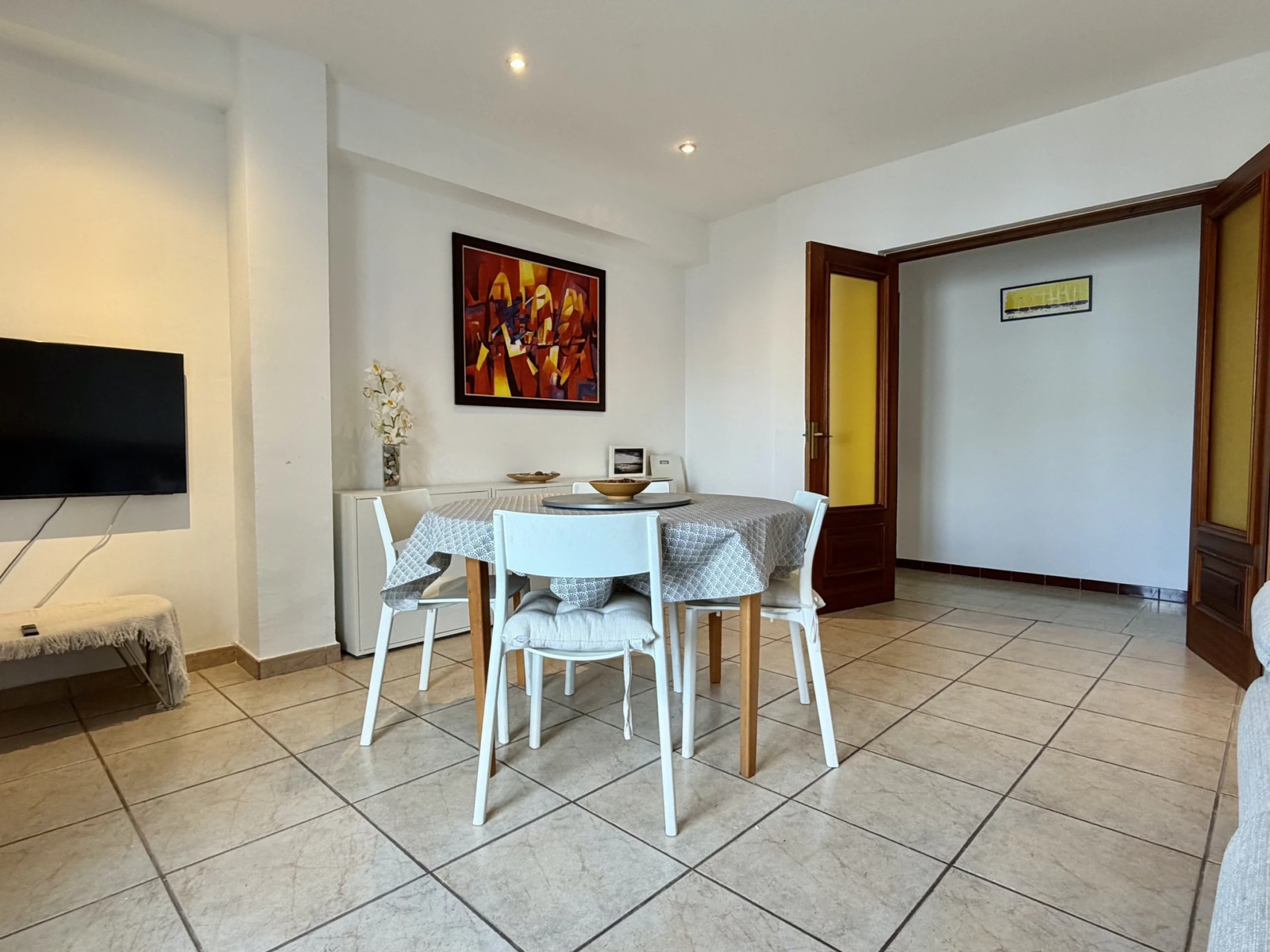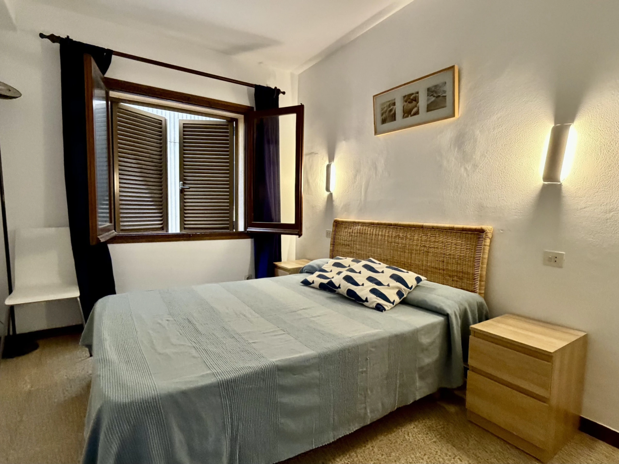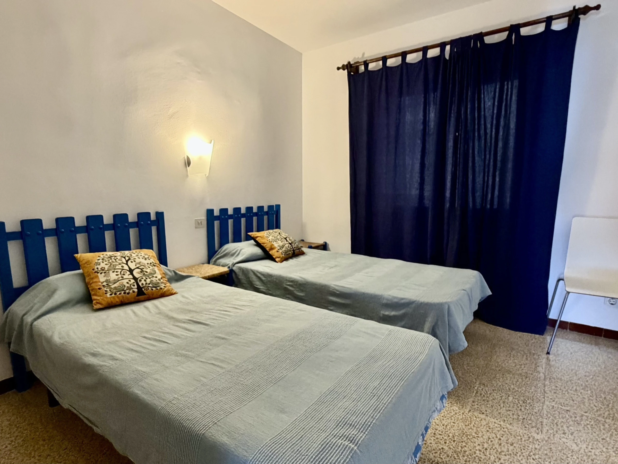 L'appartement dispose de 3 chambres équipées de 5 lits : 1 lit double et 4 lits individuels, idéal pour les groupes recherchant de la flexibilité pour le repos. Il comprend une salle de bain complète avec baignoire, parfaite pour se détendre après une journée à la plage.