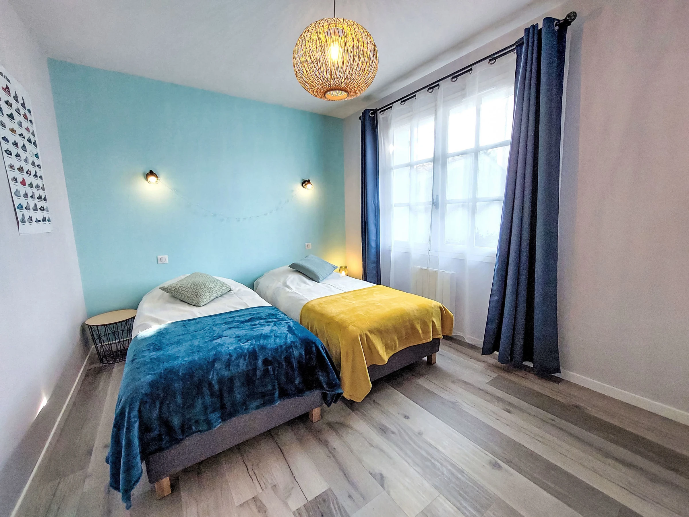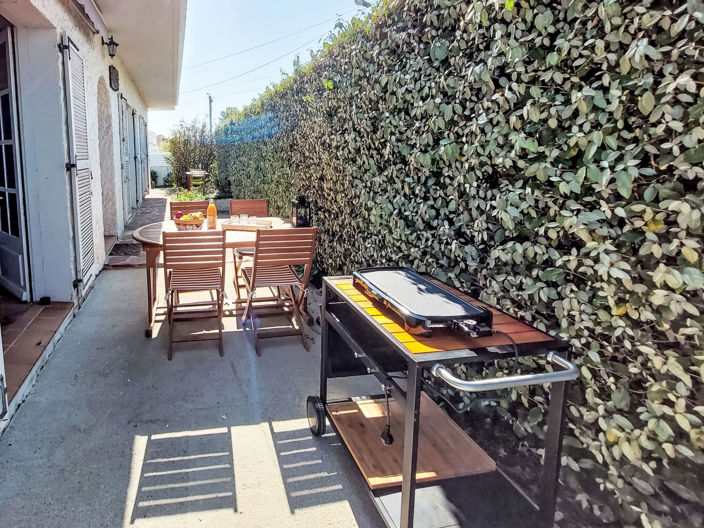 Maison 3 pièces 85 m2. Aménagement confortable et agréable: séjour/salle à manger avec poêle suédois (uniquement à titre de décoration), table pour les repas et TV (écran plat). Sortie sur la terrasse. 1 chambre avec 1 grand-lit (160 cm, longueur 200 cm), TV (écran plat). Sortie sur la terrasse. 1 chambre avec 2 lits (90 cm, longueur 200 cm). Cuisine ouverte (four, lave-vaisselle, 4 plaques à induction, grille-pain, bouilloire électrique, micro-ondes, congélateur, cafetière électrique, Capsules pour machine à café (Dolce Gusto) (NON INCLUSES)). Sortie sur la terrasse. Douche/WC. Chauffage électrique. À l'étage inférieur: WC séparé. Terrasse, situation sud. Meubles de terrasse, barbecue électrique. A disposition: lave-linge. Internet (Connexion WIFI, gratuit). Veuillez noter: maison non-fumeur. Maximum 1 animal/ chien autorisé. Détecteur de fumée. Annonce d'un particulier (art 155, IV du CGI).