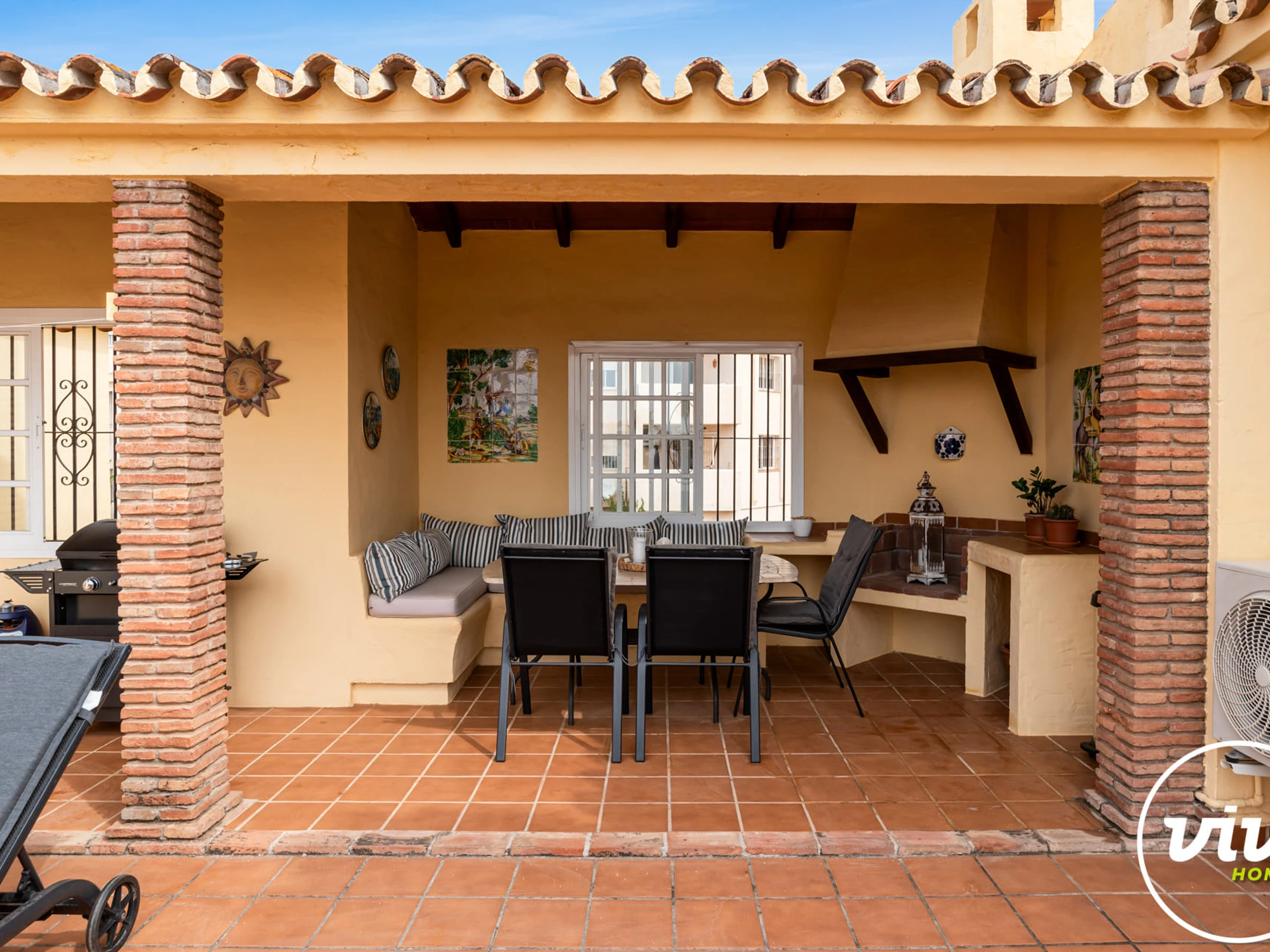 Elle dispose de mobilier de jardin, clôture, 45 m² de terrasse, lave-linge, fer à repasser, coffre-fort, accès internet (wifi), sèche-cheveux, chauffage central, climatisation, parking extérieur bâtiment proche, 1 Télévision.