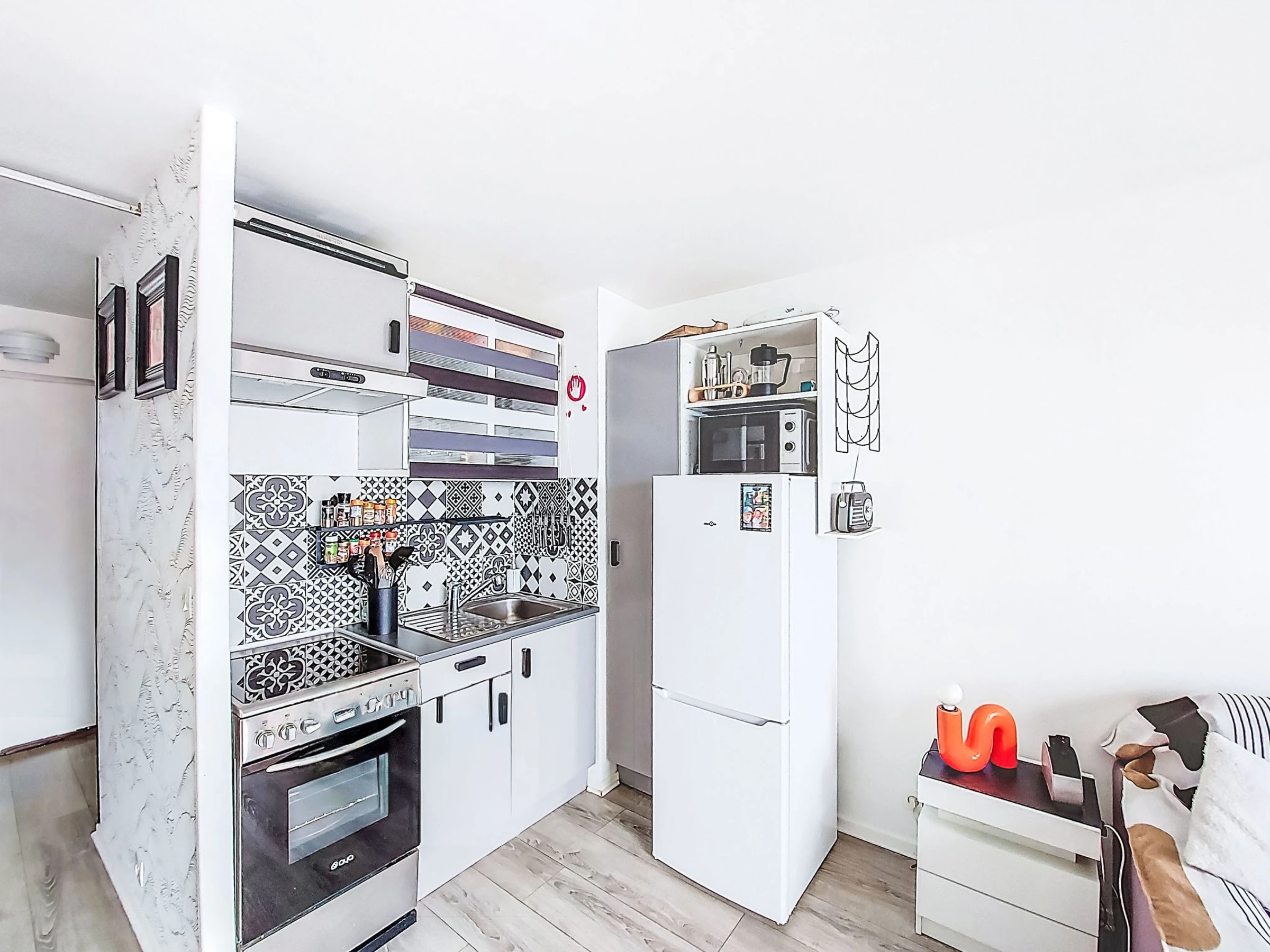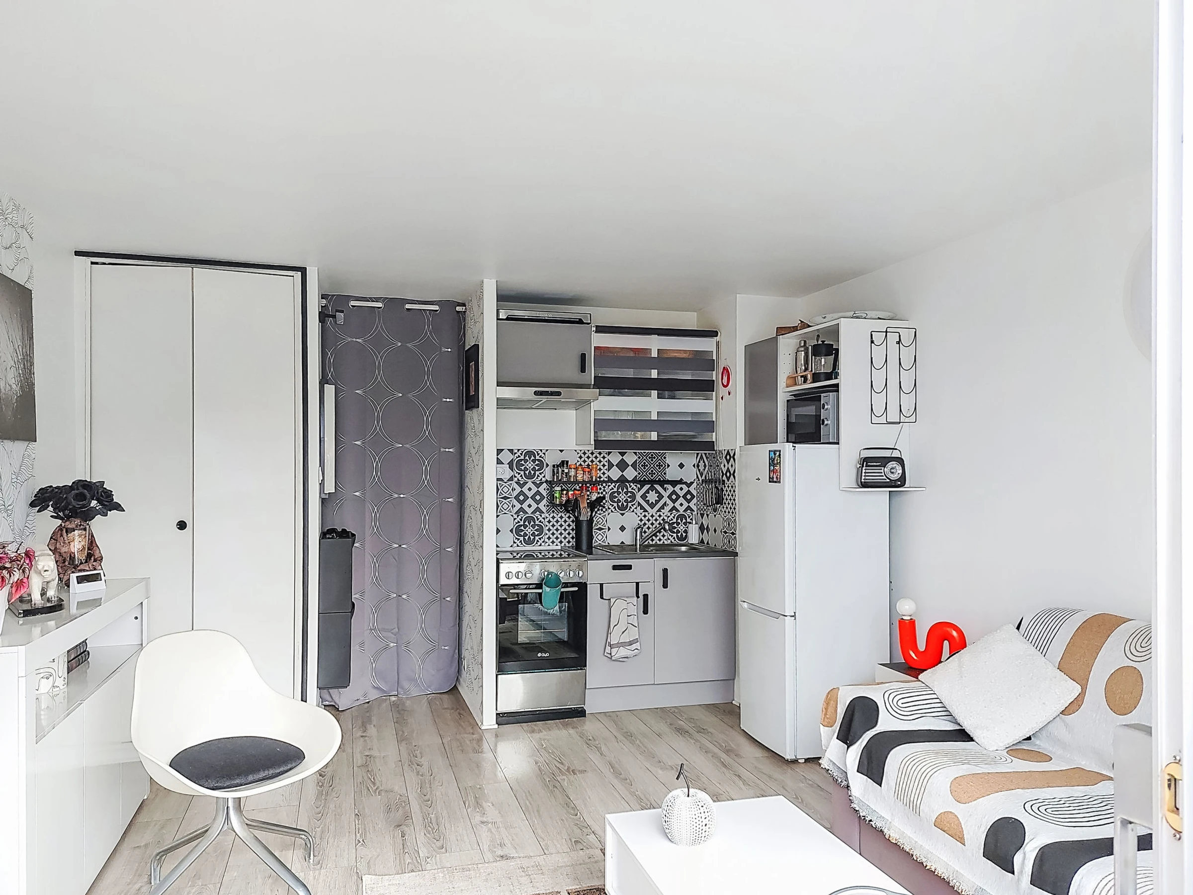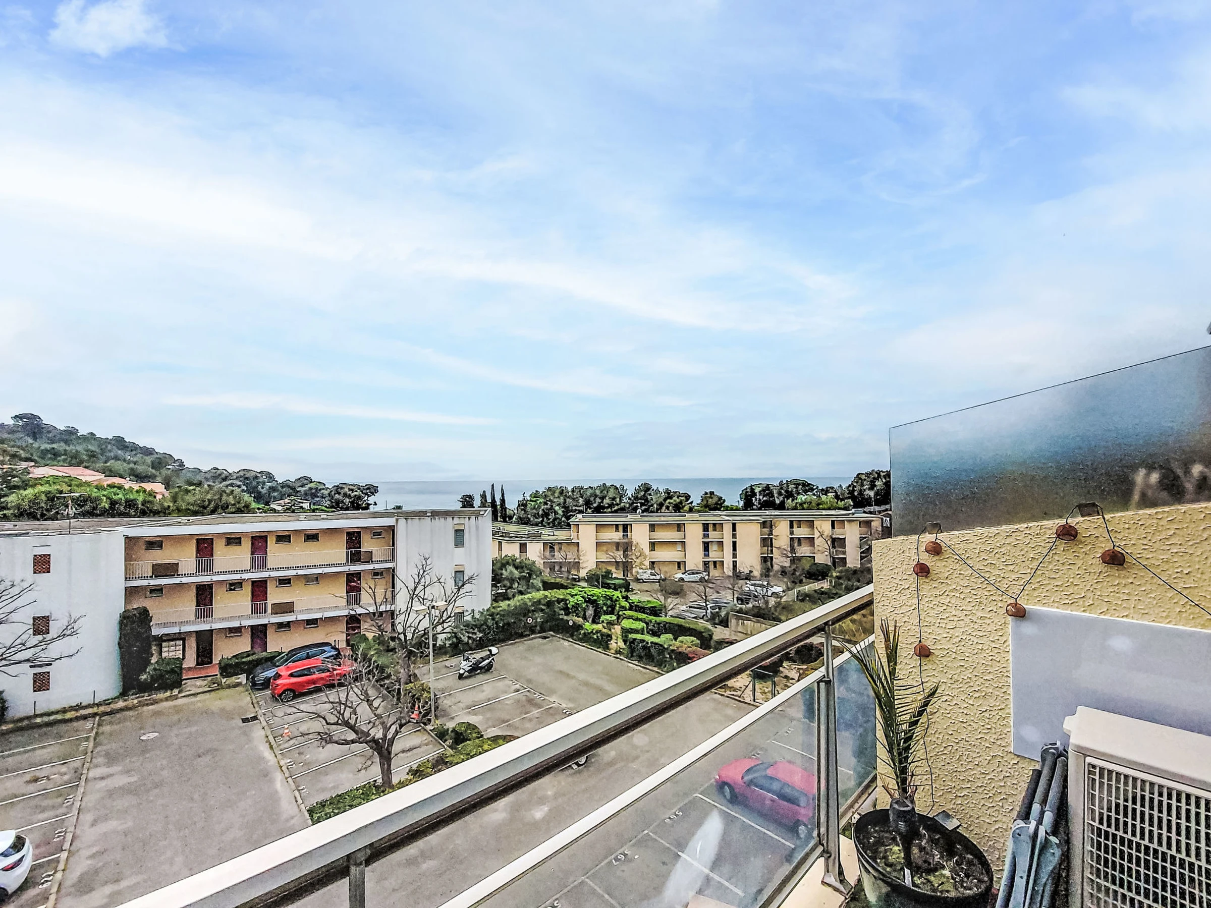 Studio 26 m2 au 3ème étage. Aménagement confortable et agréable: séjour/salle à manger avec 1 divan-lit double (160 cm, longueur 190 cm), TV (écran plat), air-conditionné. Sortie sur la terrasse. Coin cuisine (four, 4 plaques vitrocéramiques, grille-pain, micro-ondes, cafetière électrique). Douche/WC. Chauffage à air chaud. Terrasse 7 m2. Meubles de terrasse. Vue sur la mer. A disposition: lave-linge. Internet (Connexion WIFI, en sus). Place de parking No 694. Veuillez noter: TV seulement FR. Détecteur de fumée. Annonce d'un particulier (art 155, IV du CGI). [hidden]