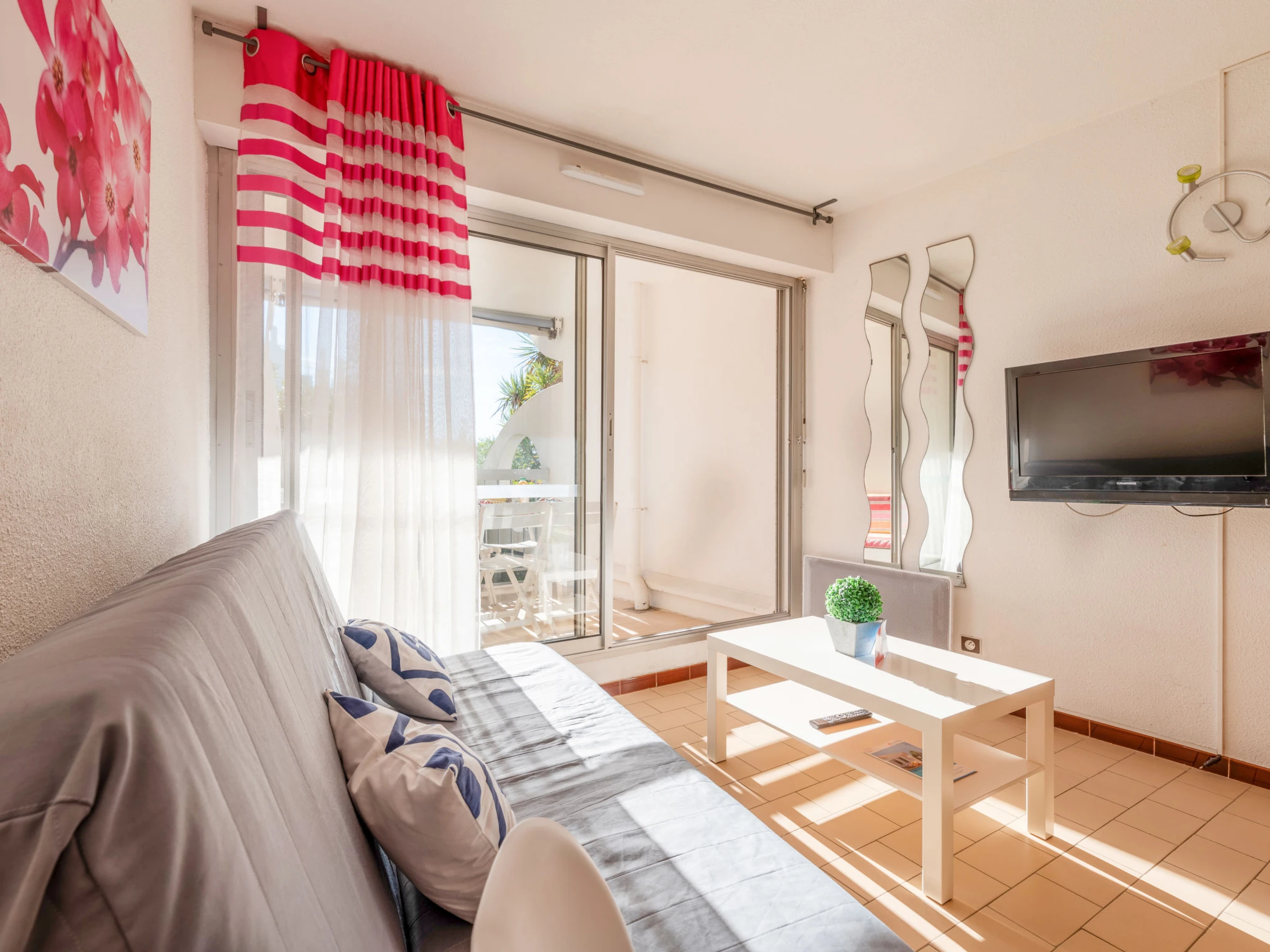 Belle résidence "Ipanema". Dans le quartier de La Motte du Couchant, à 2 km du centre, à 50 m de la mer, accès direct à la plage. Fleurs et arbres, parking public. Centre commercial 400 m, restaurant, arrêt de bus 300 m, gare ferroviaire "Montpellier" 25 km, plage de sable 50 m, piscine couverte 3 km, centre thermal "thalasso SPA" 3 km. Port plaisance 1.3 km, terrain de golf (18 trous) 3.6 km, ecole de voile 1 km, tennis 3.3 km, centre équestre 1.4 km. Attractions à proximité: Les Remparts d'Aigues Mortes 12 km, Les Saintes Maries de la Mer 40 km. Veuillez noter: Aéroport à proximité 20 km de la maison.