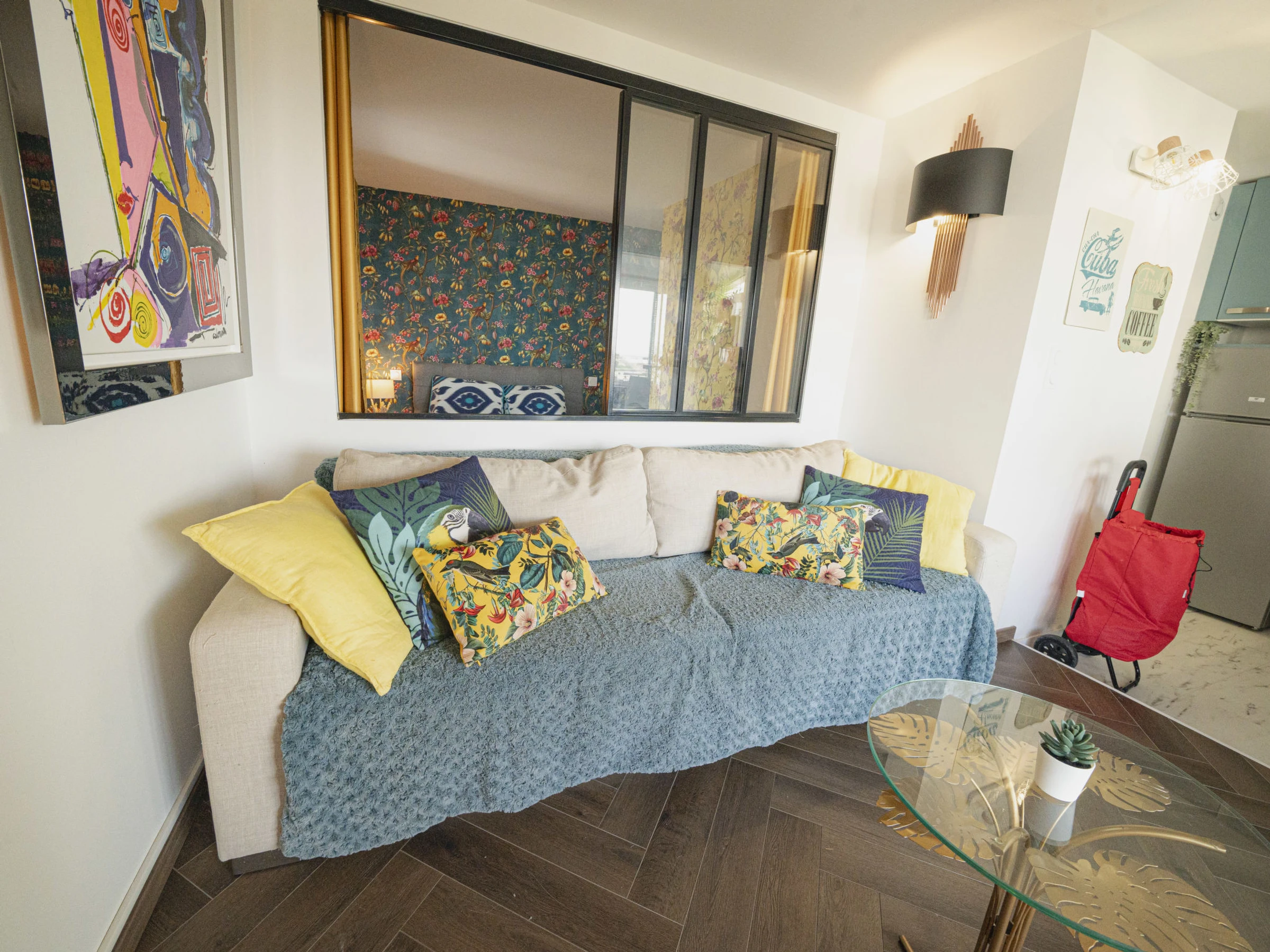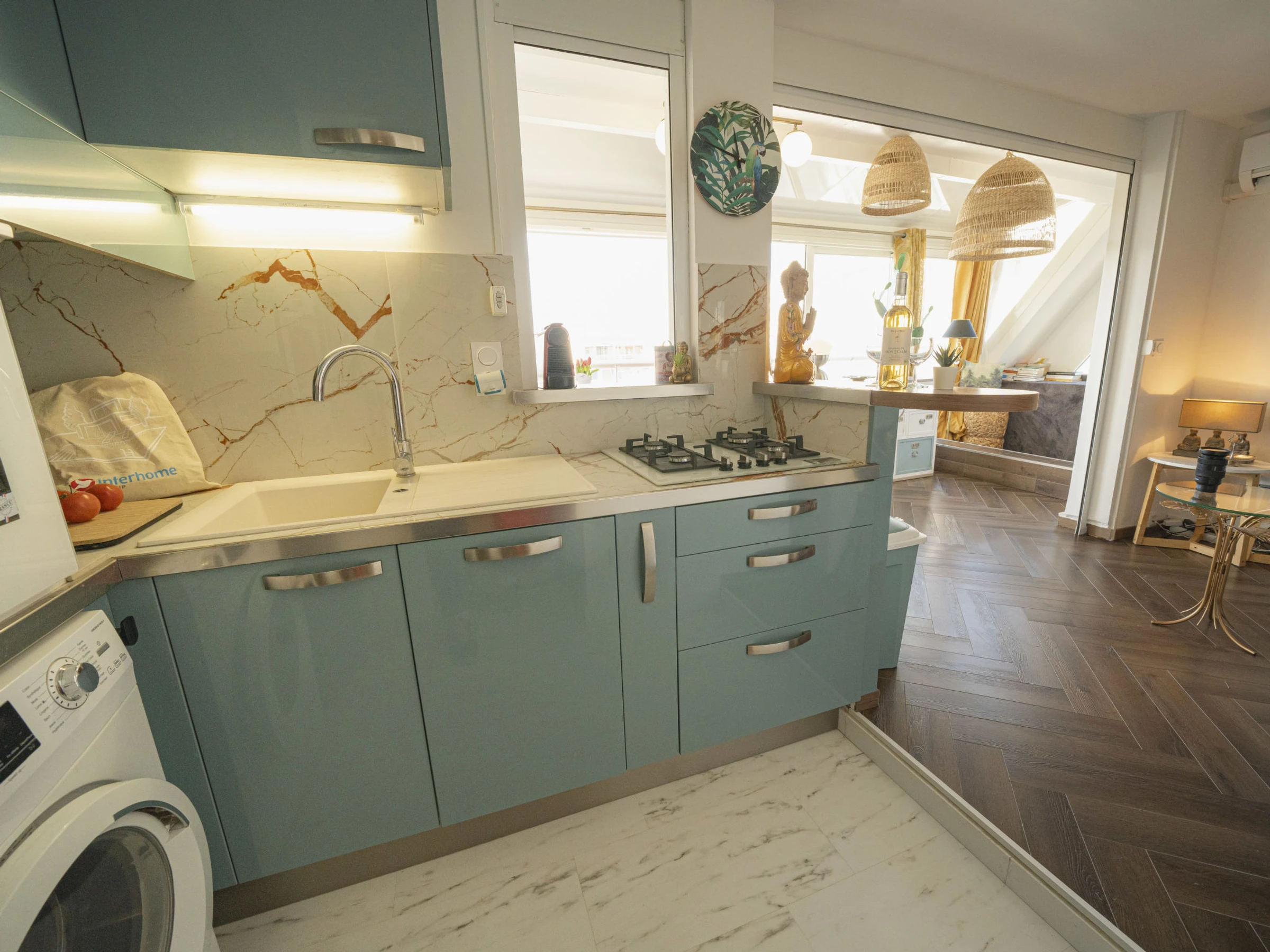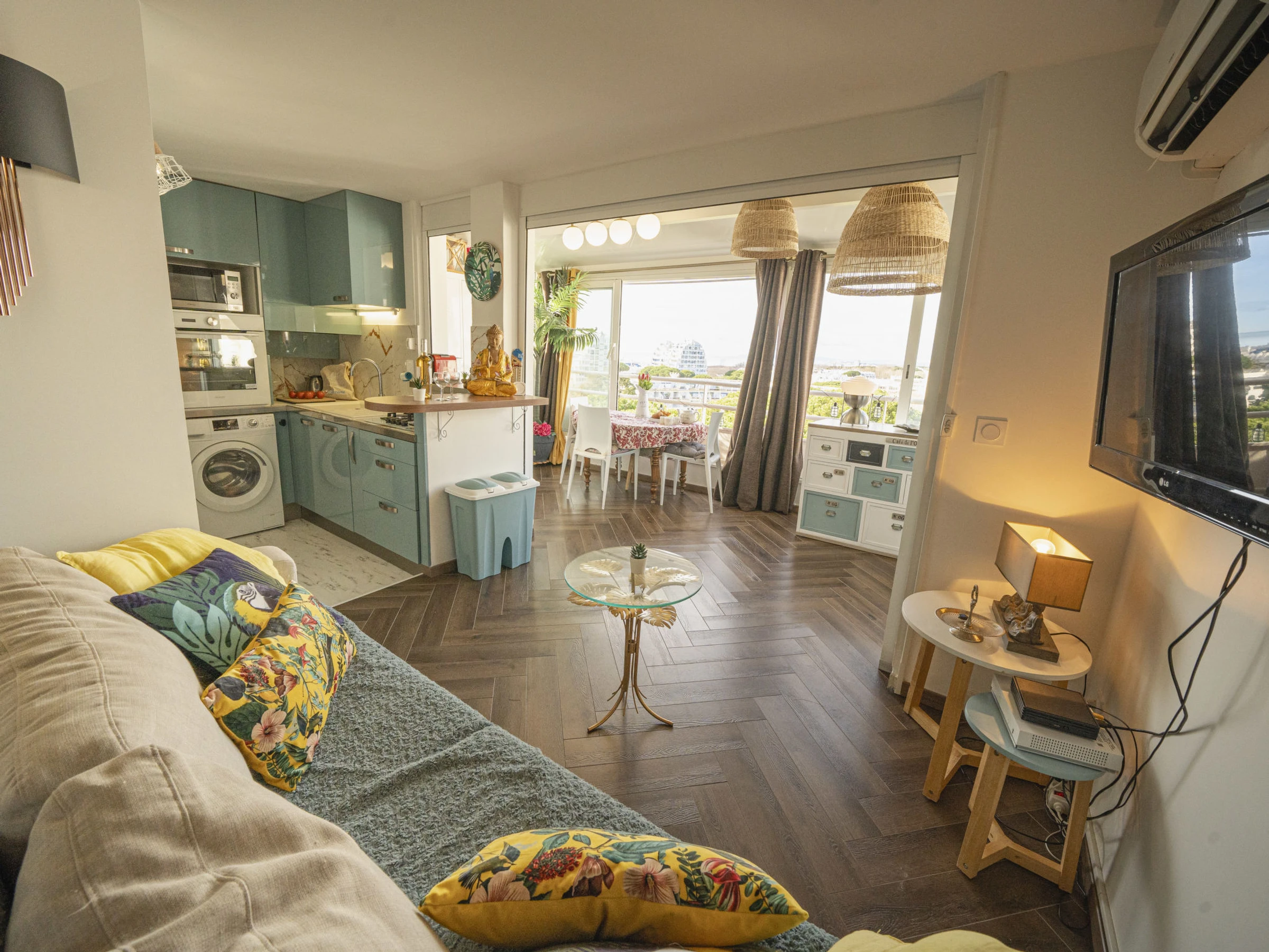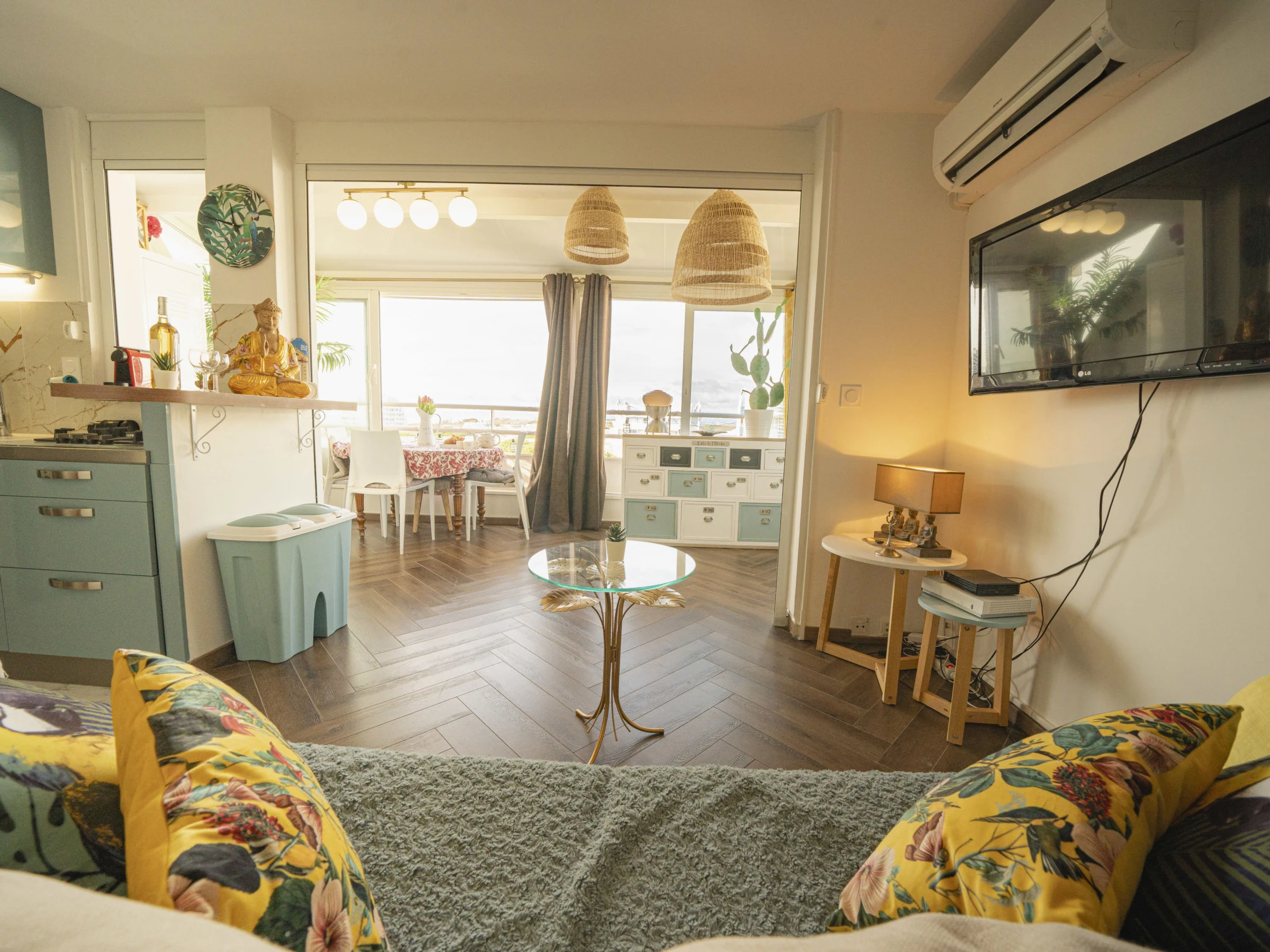 Apt 2 pièces 45 m2 au 7ème étage. Aménagement agréable: séjour/salle à manger avec TV (écran plat). 1 chambre orientée sud, fenêtre donnant sur le séjour avec 1 grand-lit (1 x 140 cm, longueur 190 cm). Pièce en enfilade avec 1 divan-lit double (120 cm, longueur 190 cm). Coin cuisine (four, lave-vaisselle, 4 feux, grille-pain, bouilloire électrique, micro-ondes, congélateur, cafetière électrique, Capsules pour machine à café (NESPRESSO) (NON INCLUSES)). Douche, WC séparé. Air-conditionné, chauffage à air chaud. Vue panoramique sur la mer. A disposition: lave-linge. Internet (Connexion WIFI, gratuit). Place de parking. Veuillez noter: détecteur de fumée. Annonce d'un particulier (art 155, IV du CGI). [hidden]