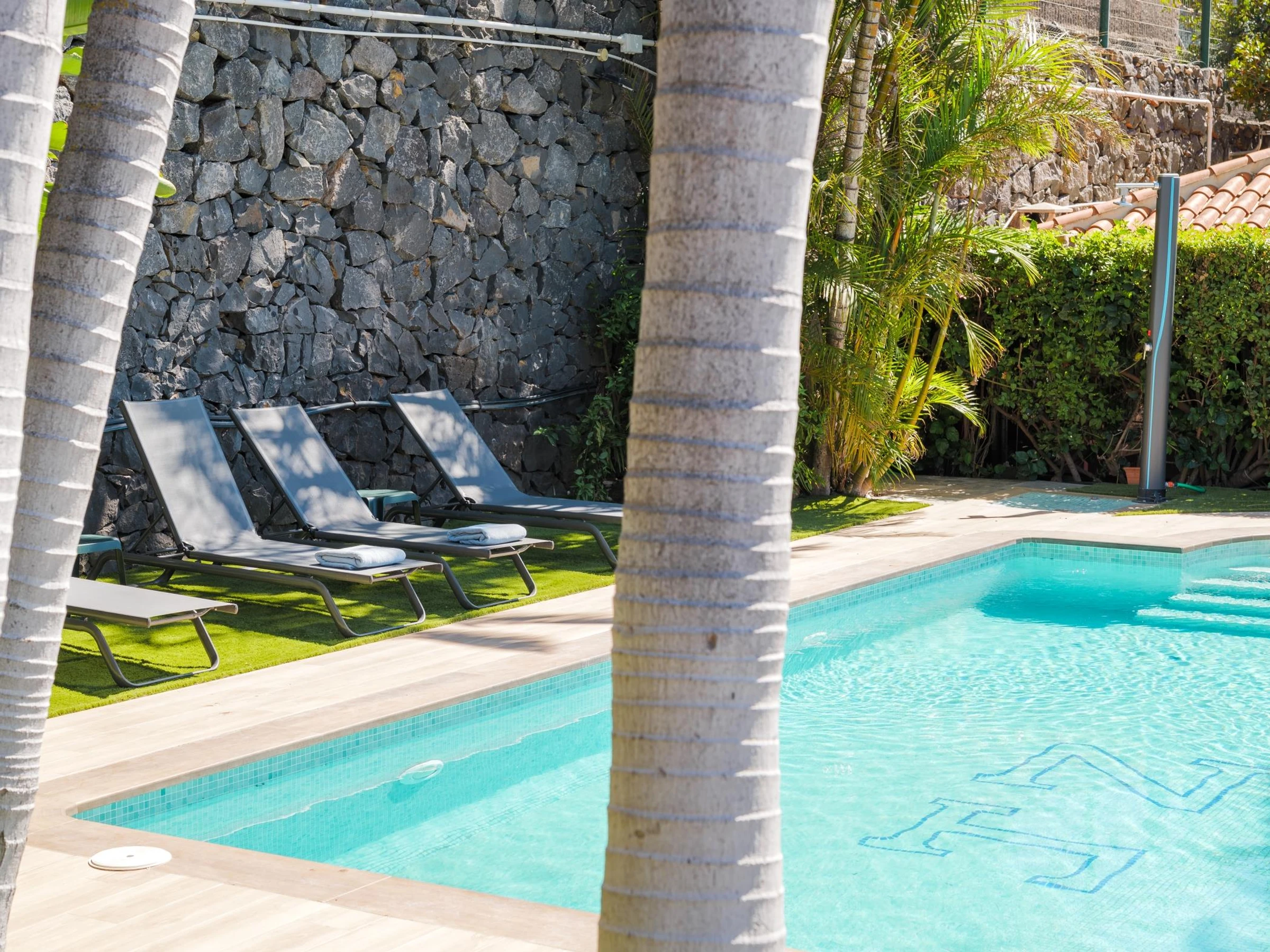 Lorsque vous souhaitez faire une pause après avoir barboté dans la piscine, allongez-vous sur l'une des chaises longues ou détendez-vous dans le coin salon ombragé.