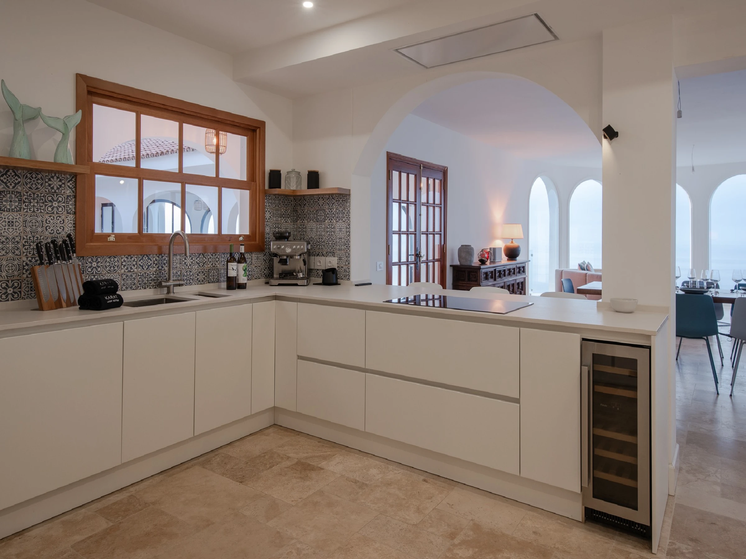 La cuisine, est équipée avec réfrigérateur, four, congélateur, lave-vaisselle, cafetière, grille pain et bouilloire.