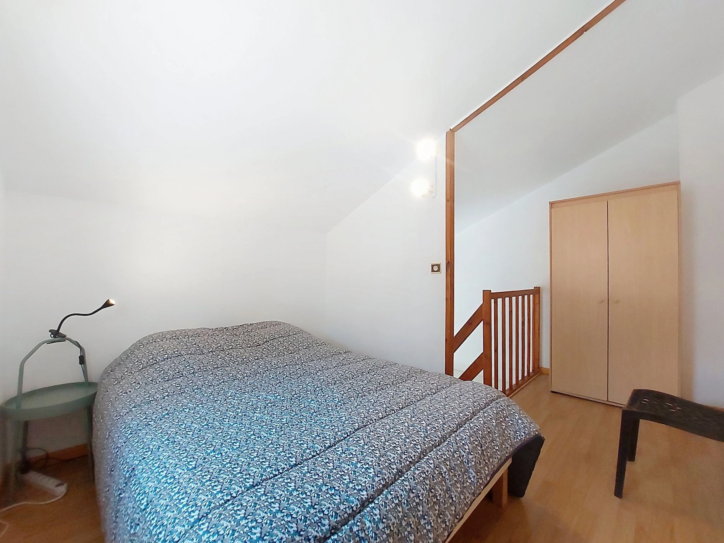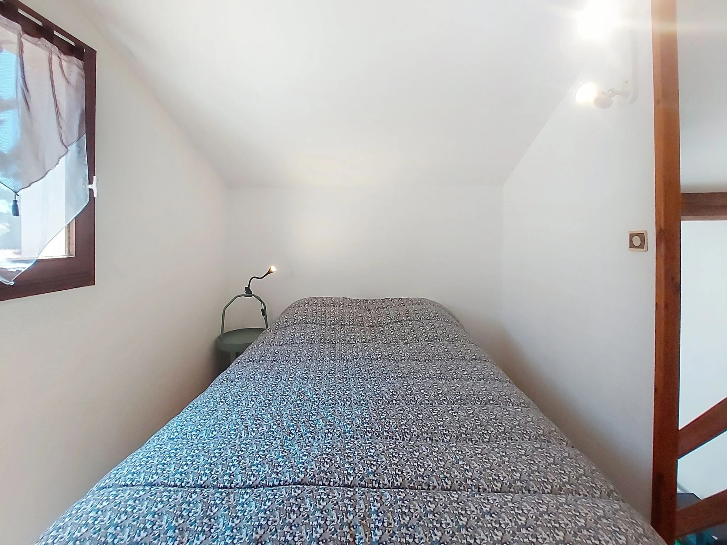 Maison mitoyenne 2 pièces 35 m2 sur 2 niveaux. Séjour/salle à manger avec TV (écran plat). 1 chambre avec 2 lits (80 cm, longueur 190 cm). Coin cuisine (2 plaques de cuisson, mini-four, bouilloire électrique, micro-ondes, cafetière électrique). Bain/WC. Pas de chauffage. À l'étage supérieur: galerie avec 1 grand-lit (1 x 140 cm, longueur 190 cm). Terrasse 35 m2, situation sud. Meubles de terrasse. A disposition: Internet (Connexion WIFI, en sus). Place de parking No 165. Veuillez noter: logement côté rue. Maximum 1 animal/ chien autorisé. Détecteur de fumée. Au lieu d'une chambre fermée, des espaces de couchage sont situés dans une zone ouverte (galerie, alcôve...).