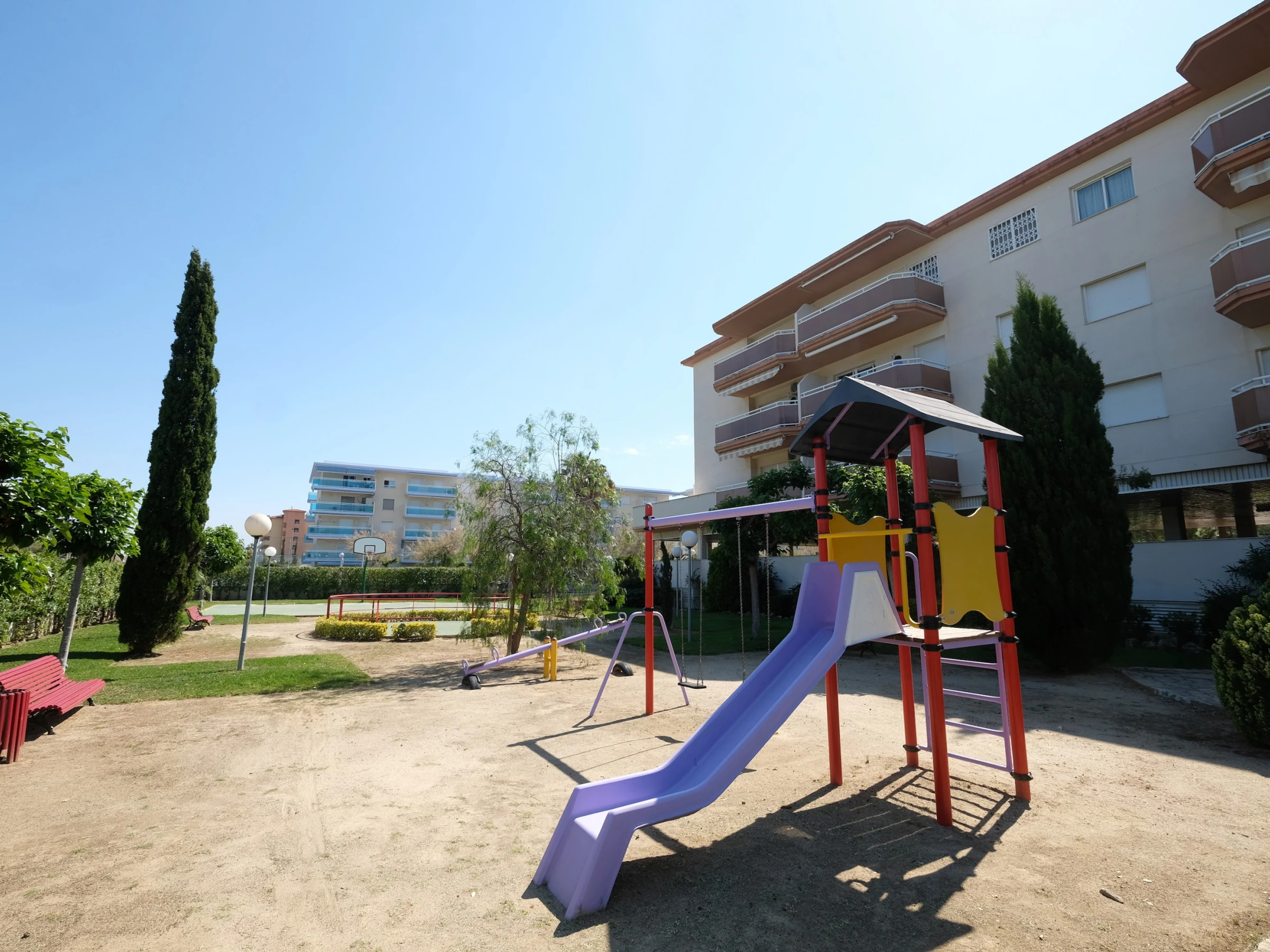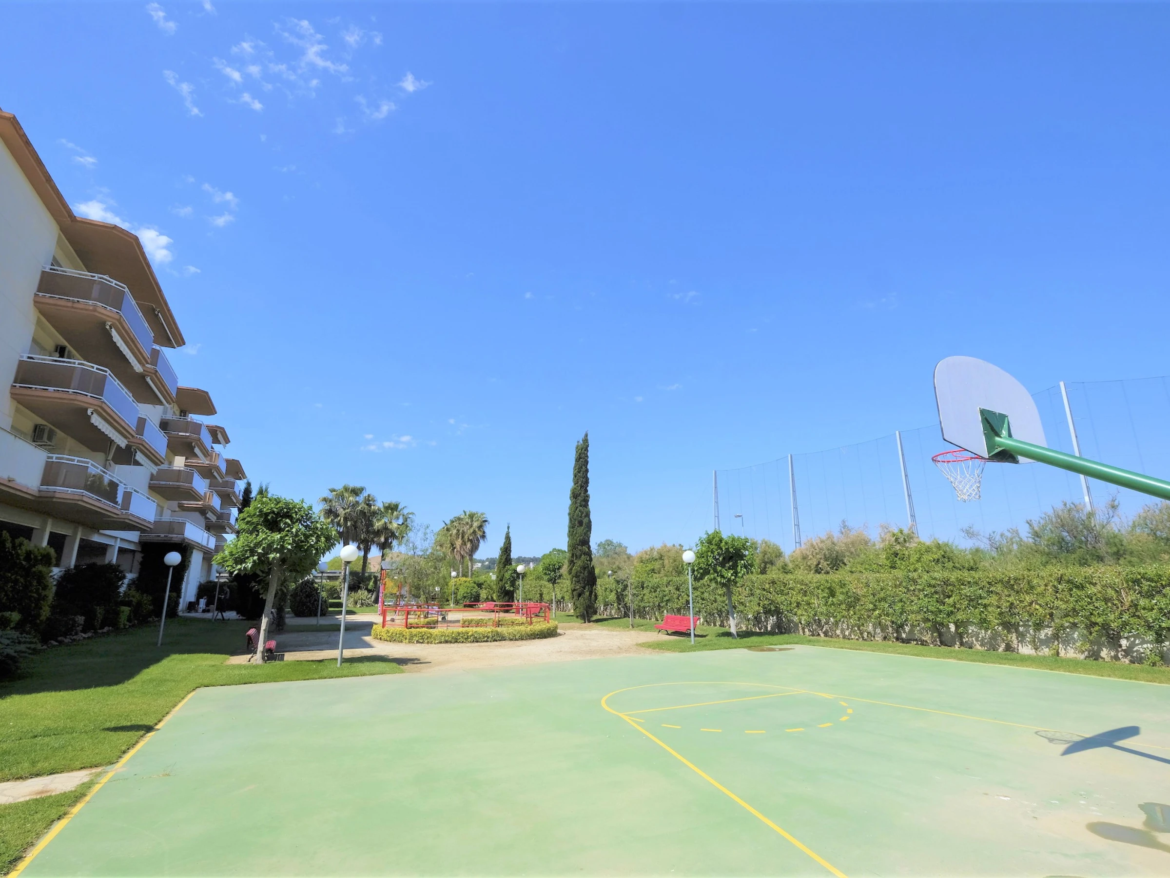 Dispose d'une grande zone communautaire avec jardin, piscine, terrain de basket et aire de jeux pour enfants. C'est parfait pour des vacances avec des enfants.