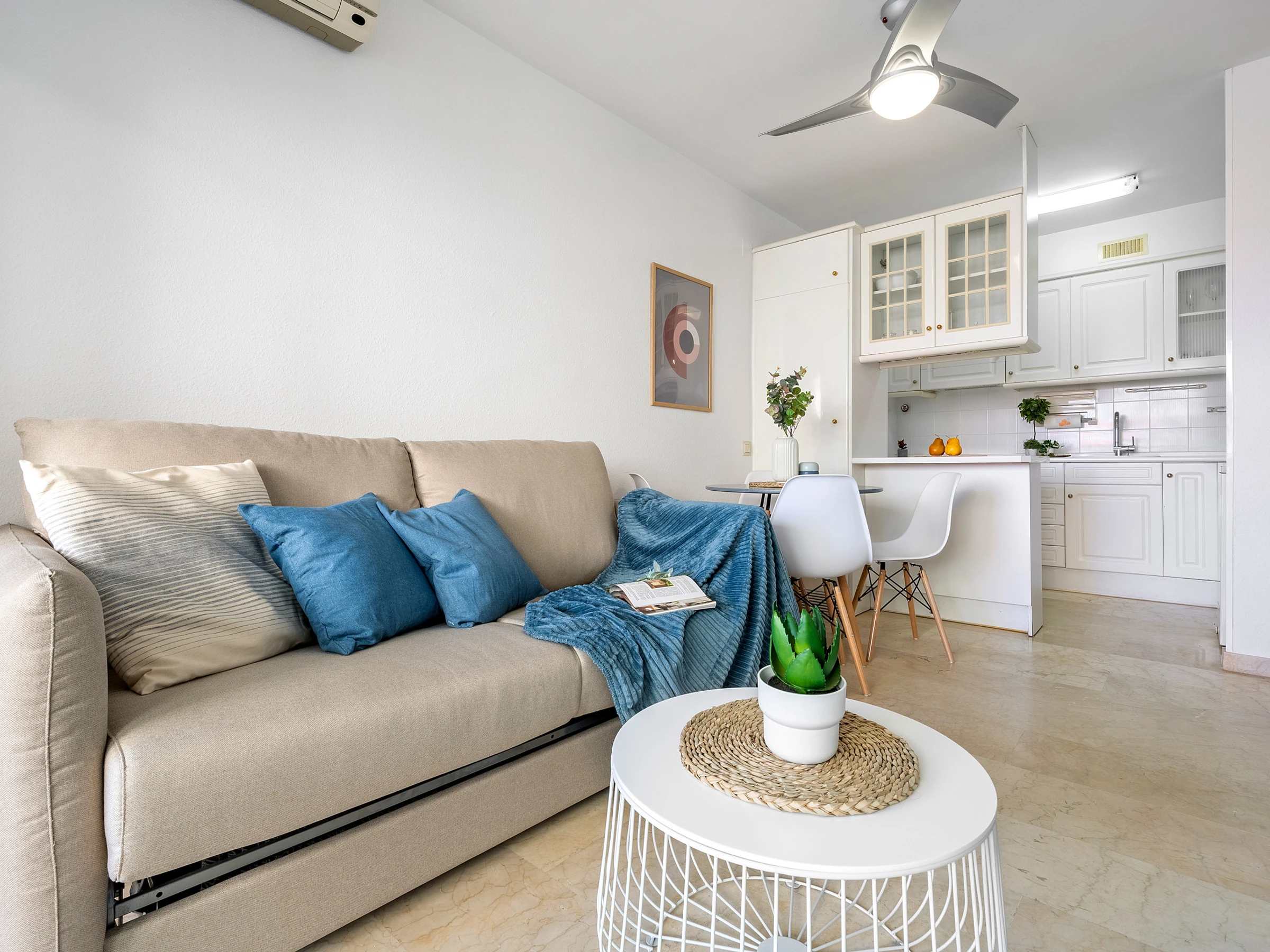 Dispose d'une chambre avec un lit double et un canapé-lit double dans le salon, avec une capacité d'accueil jusqu'à 4 personnes. Il comprend une salle de bain avec baignoire et un salon-salle à manger lumineux avec accès à la terrasse meublée, parfaite pour se détendre et profiter du climat méditerranéen.