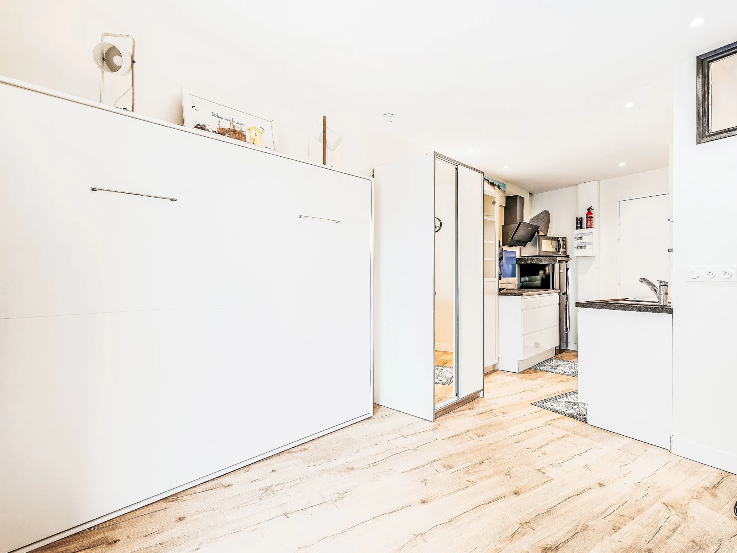 "AZUR ET MER" studio 23 m2. Aménagement confortable et agréable: séjour/chambre à coucher avec 1 grand-lit (160 cm, longueur 190 cm), TV (écran plat). Cuisine (four, 2 plaques à induction, grille-pain, bouilloire électrique, congélateur, cafetière électrique). Douche/WC. Chauffage électrique. A disposition: Internet (Connexion WIFI, en sus). Veuillez noter: logement non-fumeur. Détecteur de fumée. Annonce d'un particulier (art 155, IV du CGI).