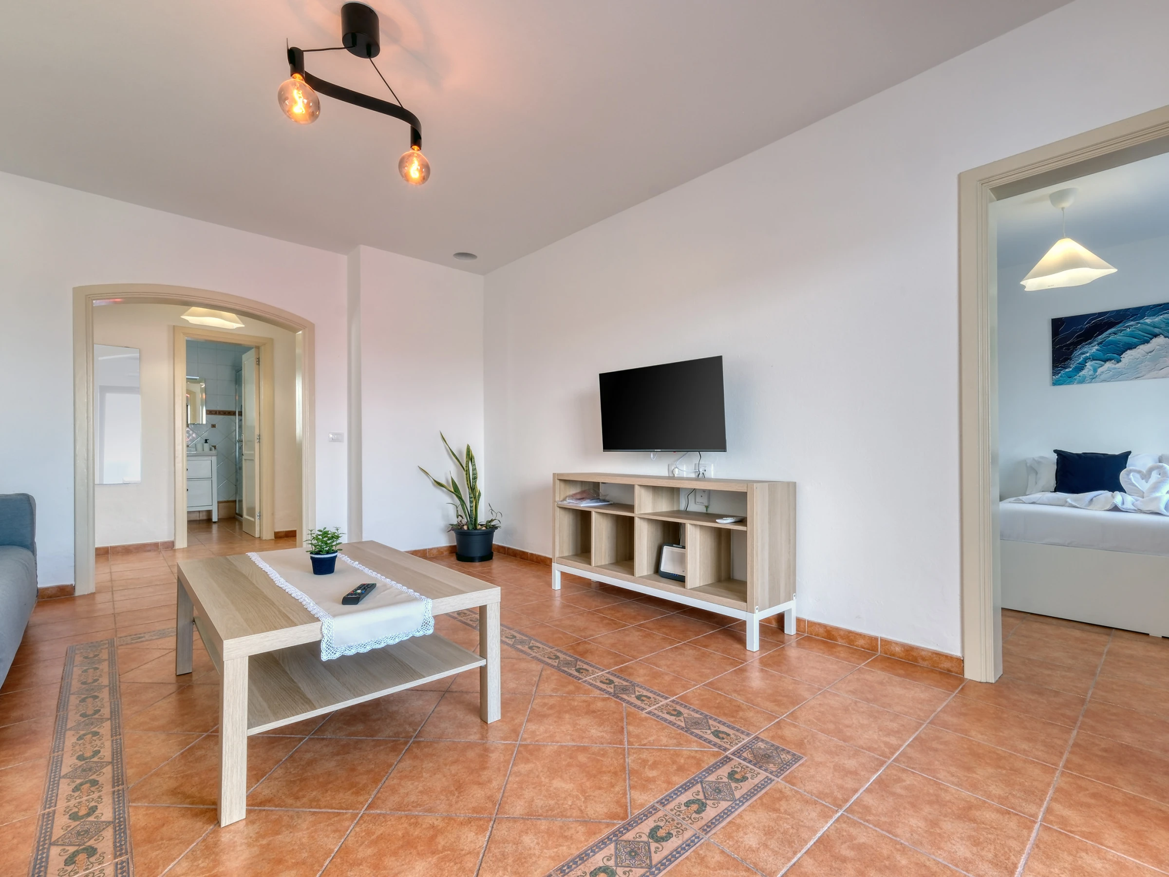 En entrant dans le logement, nous trouvons un salon accueillant équipé d'un canapé confortable, d'un téléviseur et d'une connexion wifi gratuite, créant un espace parfait pour se détendre et profiter de moments de loisirs après une journée d'aventures sur l'île.