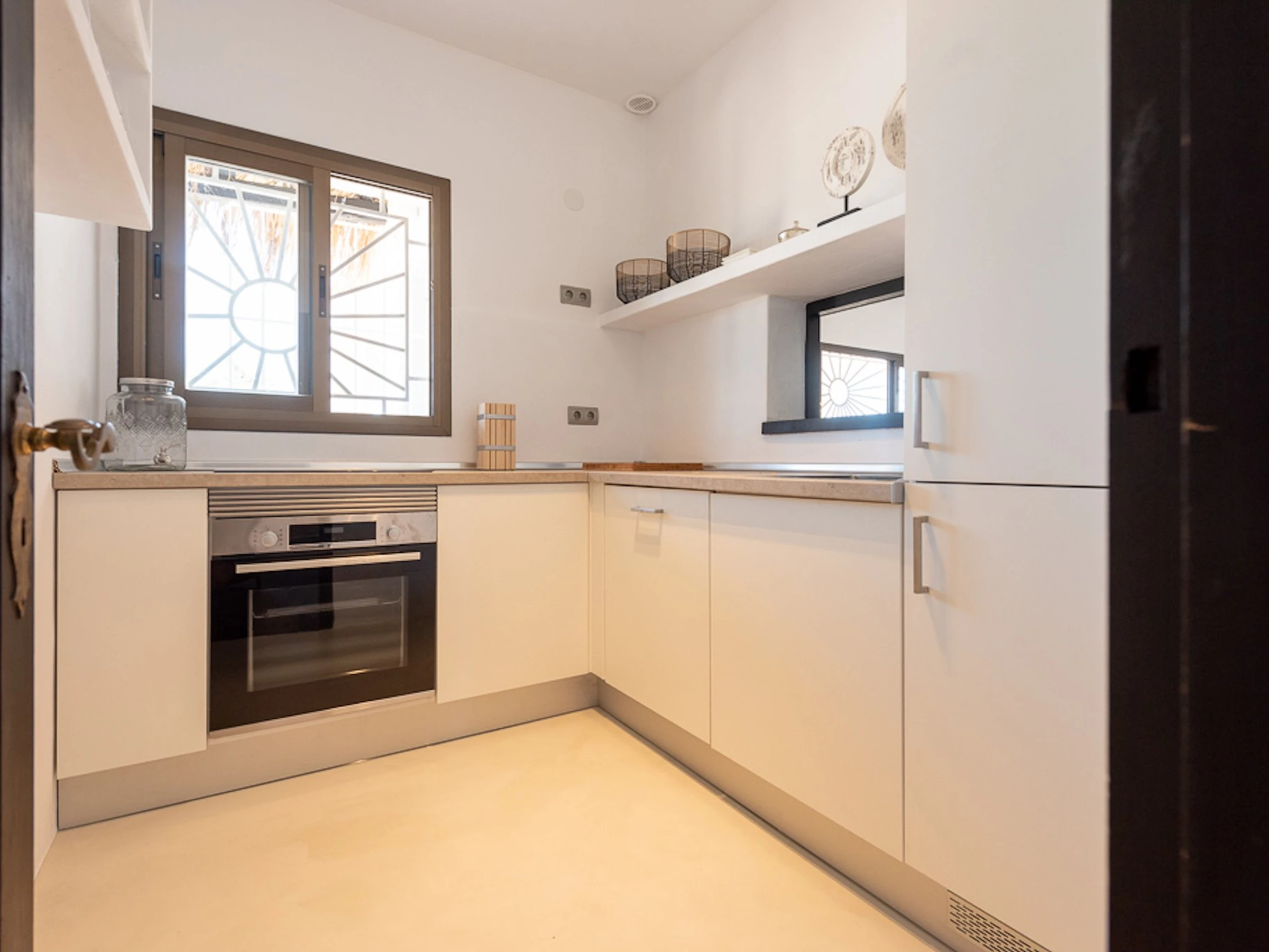 La cuisine, est équipée avec réfrigérateur, micro-ondes, four, lave-vaisselle et cafetière.