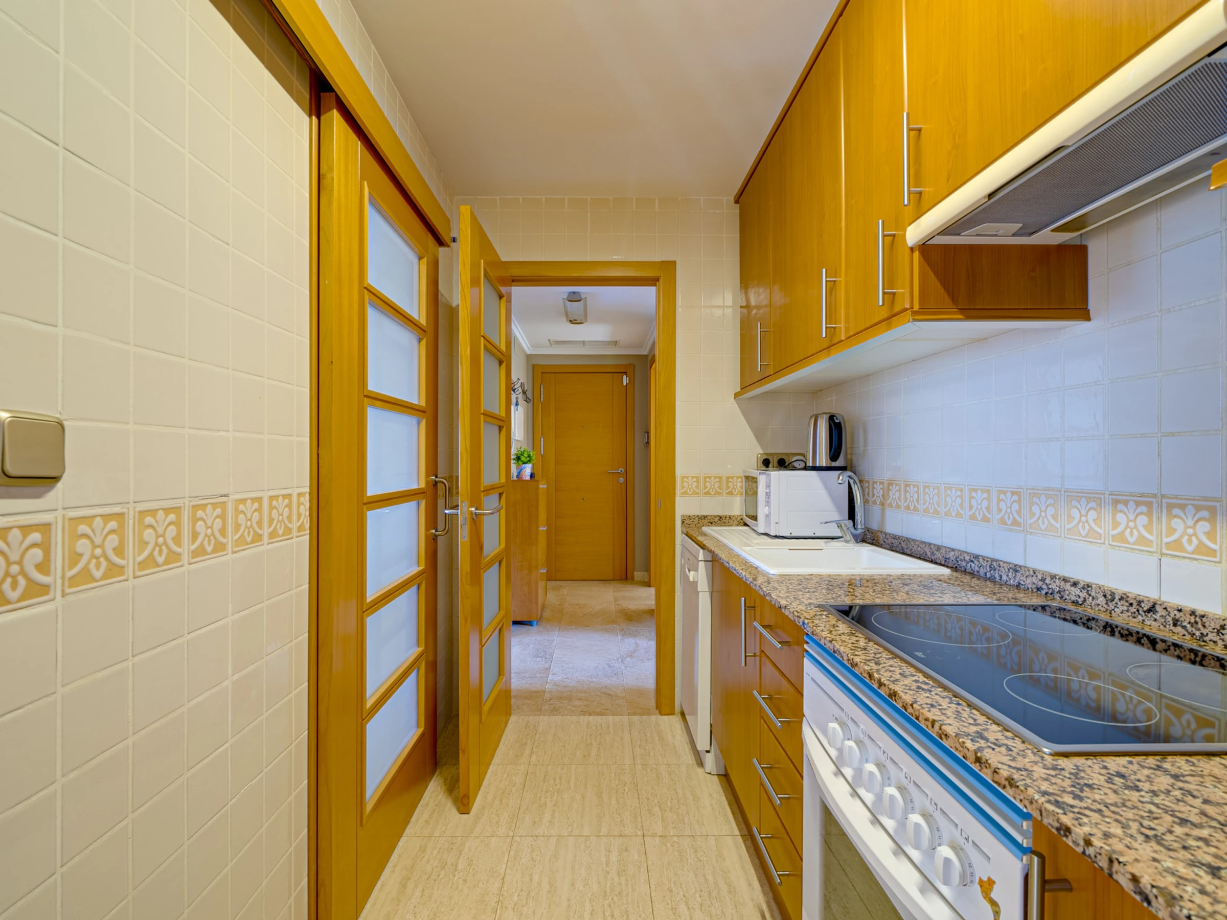 La cuisine indépendante, à vitrocéramique, est équipée avec réfrigérateur, micro-ondes, four, congélateur, lave-vaisselle, vaisselle/couverts, ustensiles/cuisine, cafetière et bouilloire.