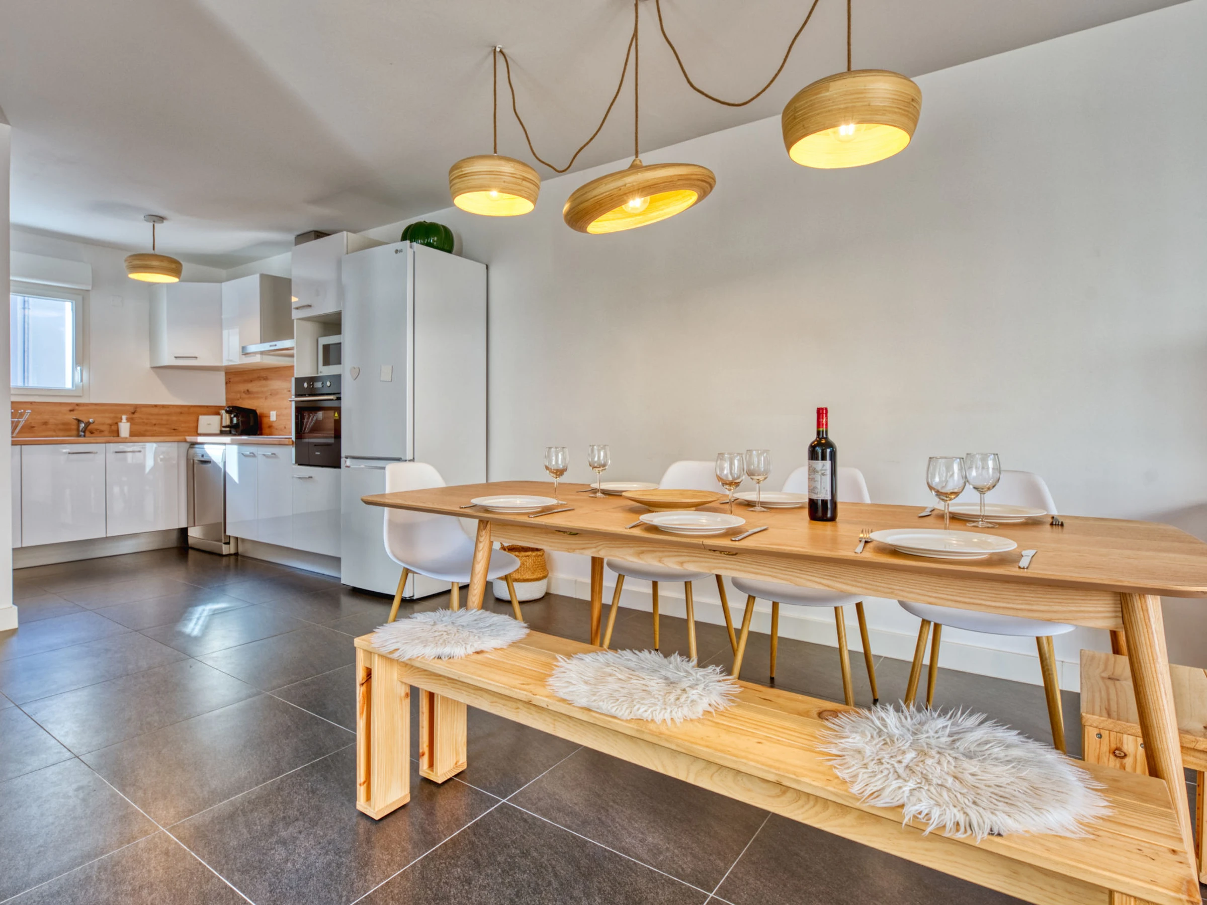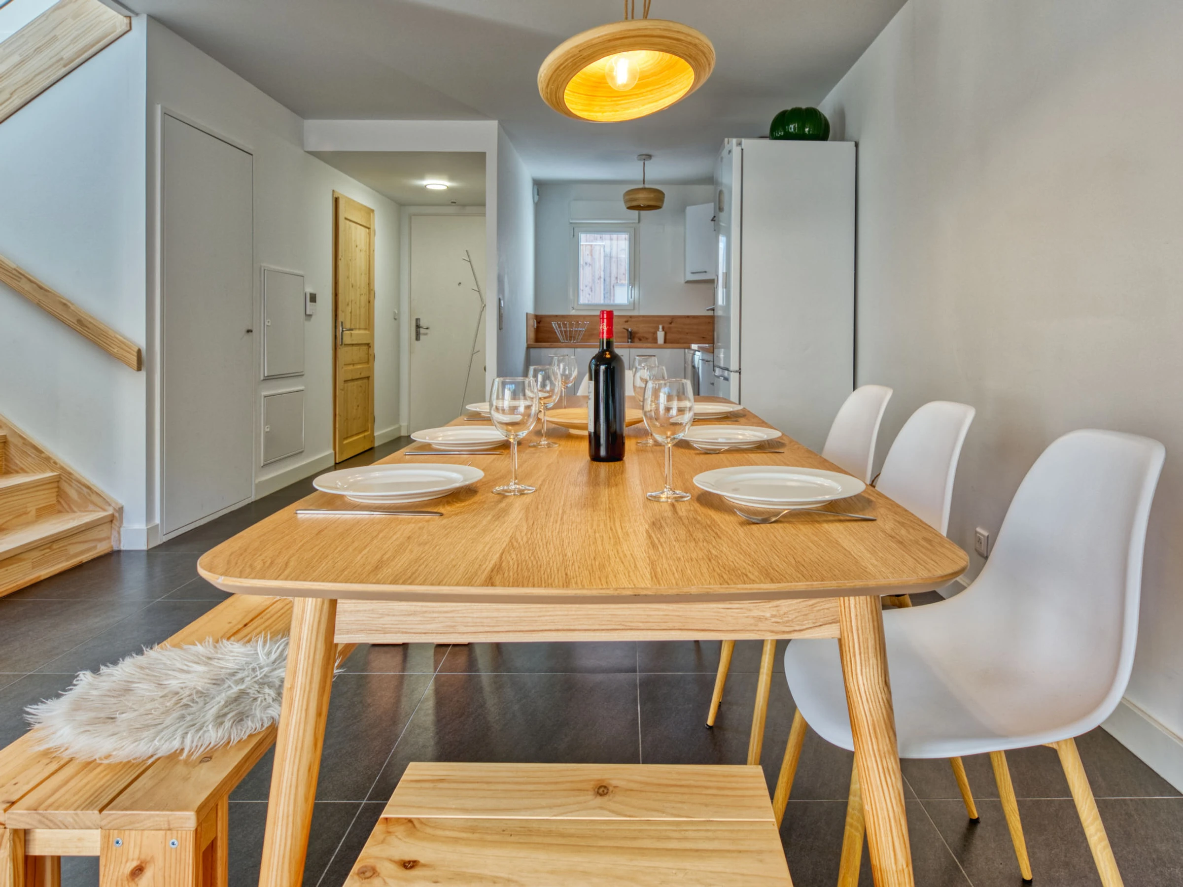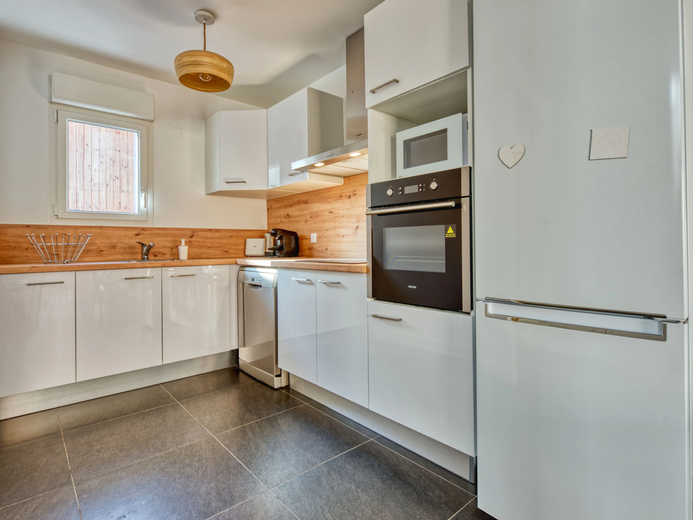 Maison jumelée 4 pièces 82 m2 sur 2 niveaux. Aménagement moderne: séjour/salle à manger avec TV (écran plat), DVD et air-conditionné. Sortie sur la terrasse, orientée nord. Cuisine ouverte (four, lave-vaisselle, 4 plaques à induction, grille-pain, bouilloire électrique, micro-ondes, cafetière électrique, Capsules pour machine à café (Tassimo) (NON INCLUSES)). Douche/WC. À l'étage supérieur: 1 chambre avec 1 grand-lit (160 cm, longueur 190 cm). 1 chambre avec 1 grand-lit (140 cm, longueur 190 cm). 1 chambre avec 1 x 1 lits superposés (90 cm, longueur 190 cm), 1 lit double (140 cm, longueur 190 cm). Douche, WC séparé. Terrasse 10 m2, situation nord, jardinet 70 m2, situation nord et situation est. Meubles de terrasse. A disposition: lave-linge, sèche-linge. Place de parking (2 Voitures). Veuillez noter: logement non-fumeur. Détecteur de fumée. Annonce d'un particulier (art 155, IV du CGI).