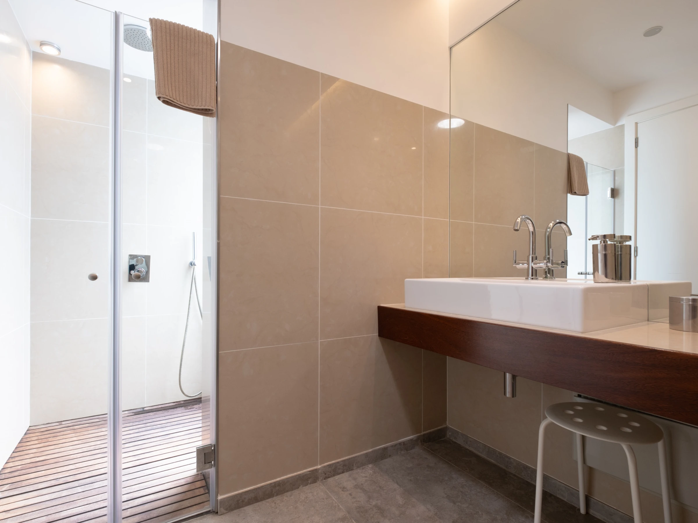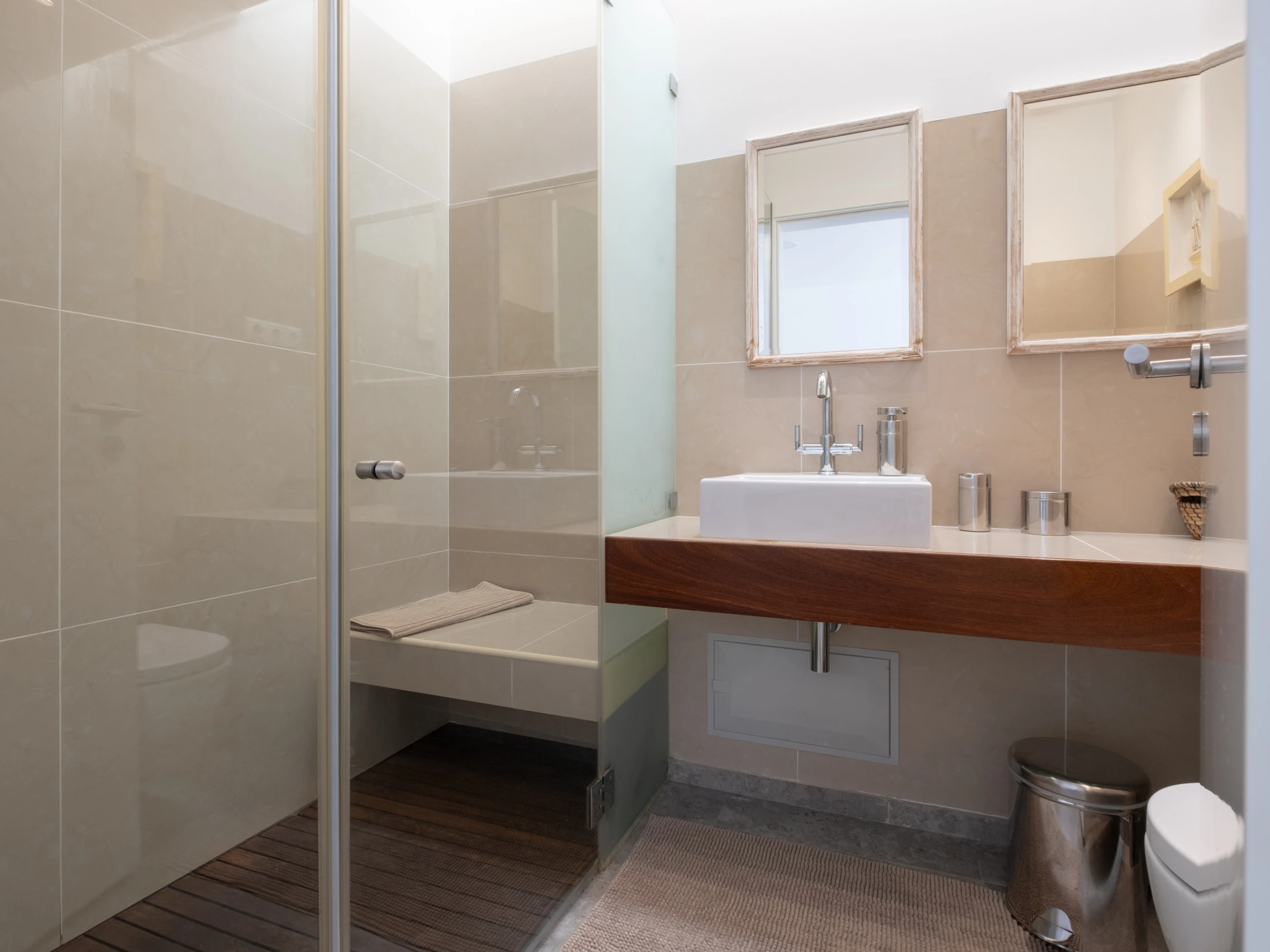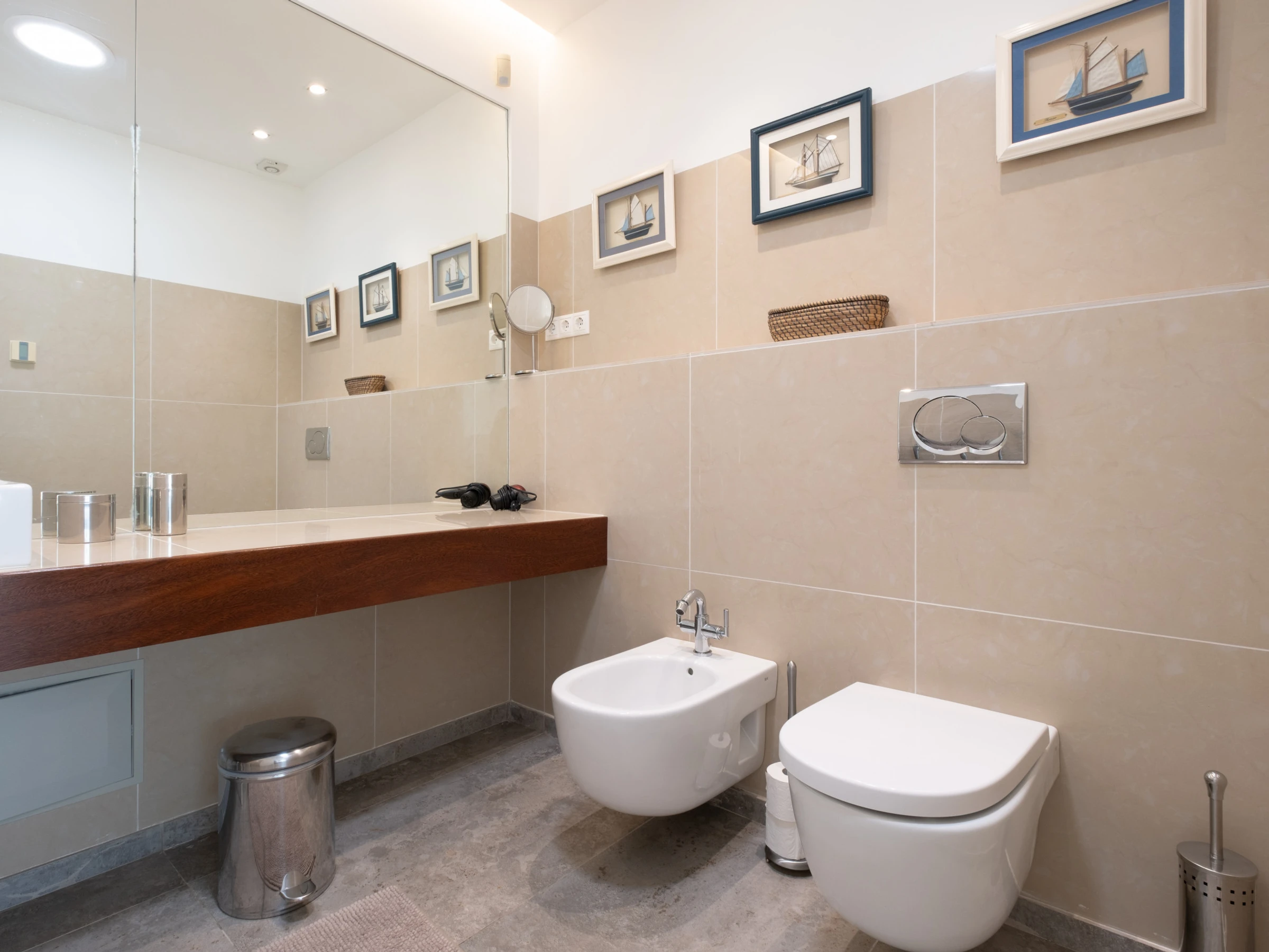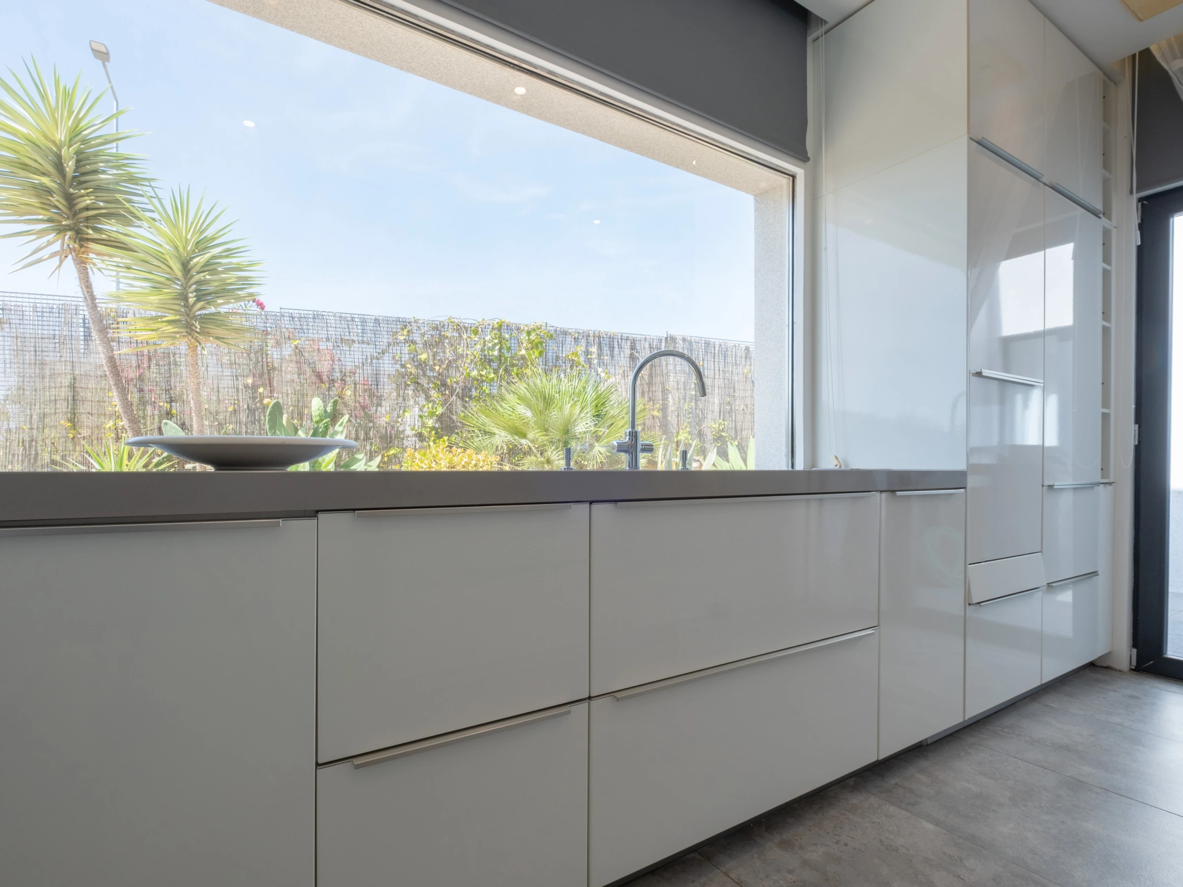 Logement de 170 m² joli et moderne, avec vue sur la mer et le jardin.