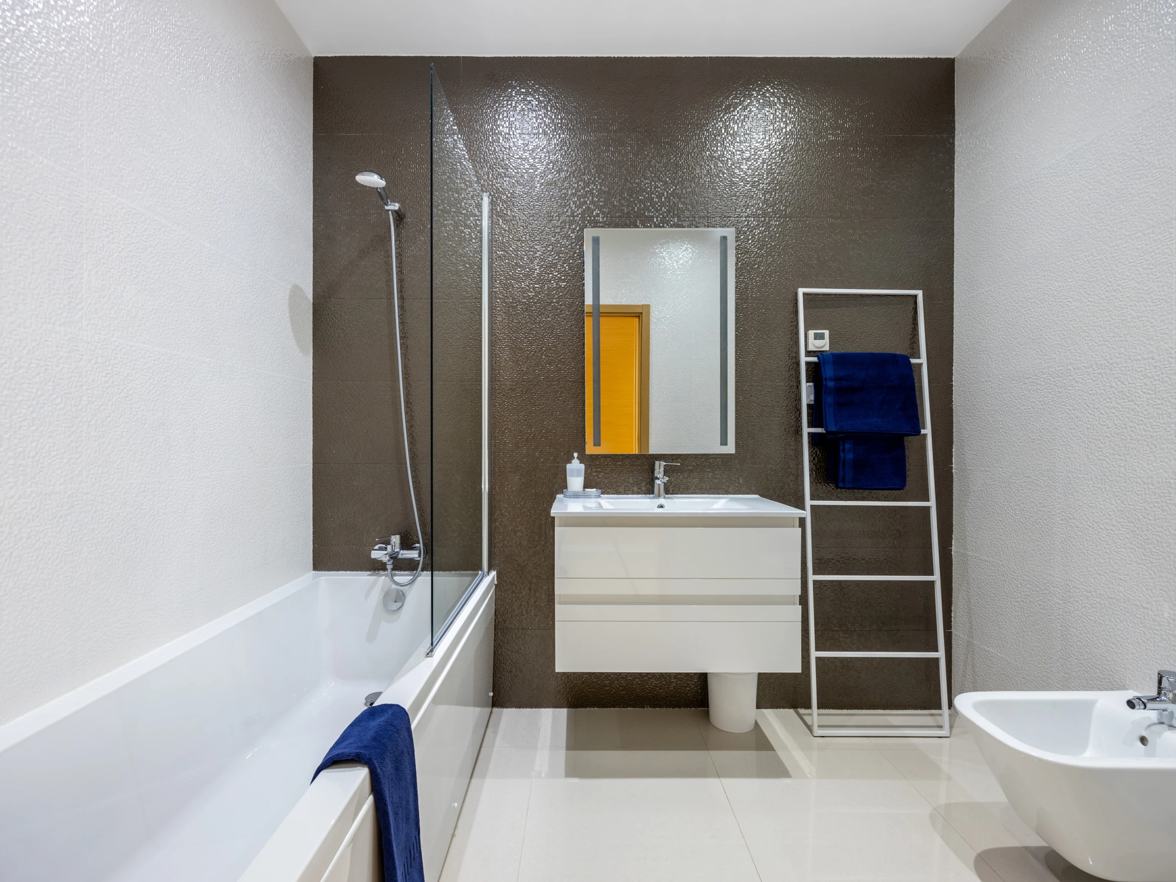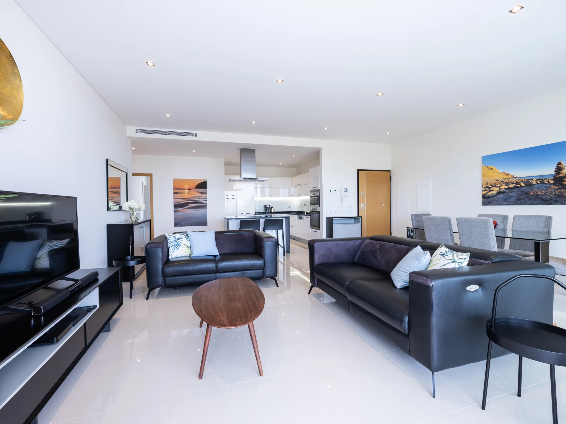 Logement de 120 m² meublé avec goût et moderne, avec vue sur la mer et le jardin.