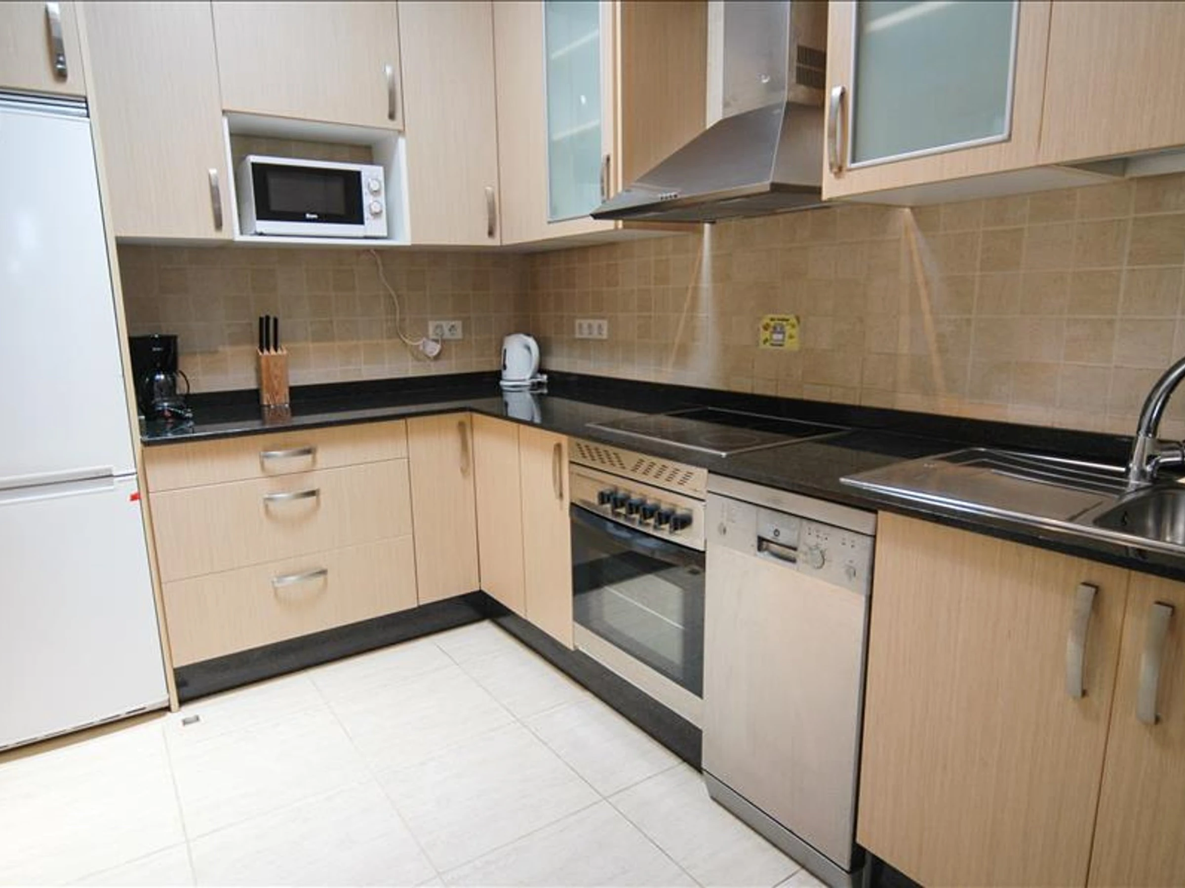La cuisine, est équipée avec réfrigérateur, four, congélateur, lave-vaisselle et cafetière.