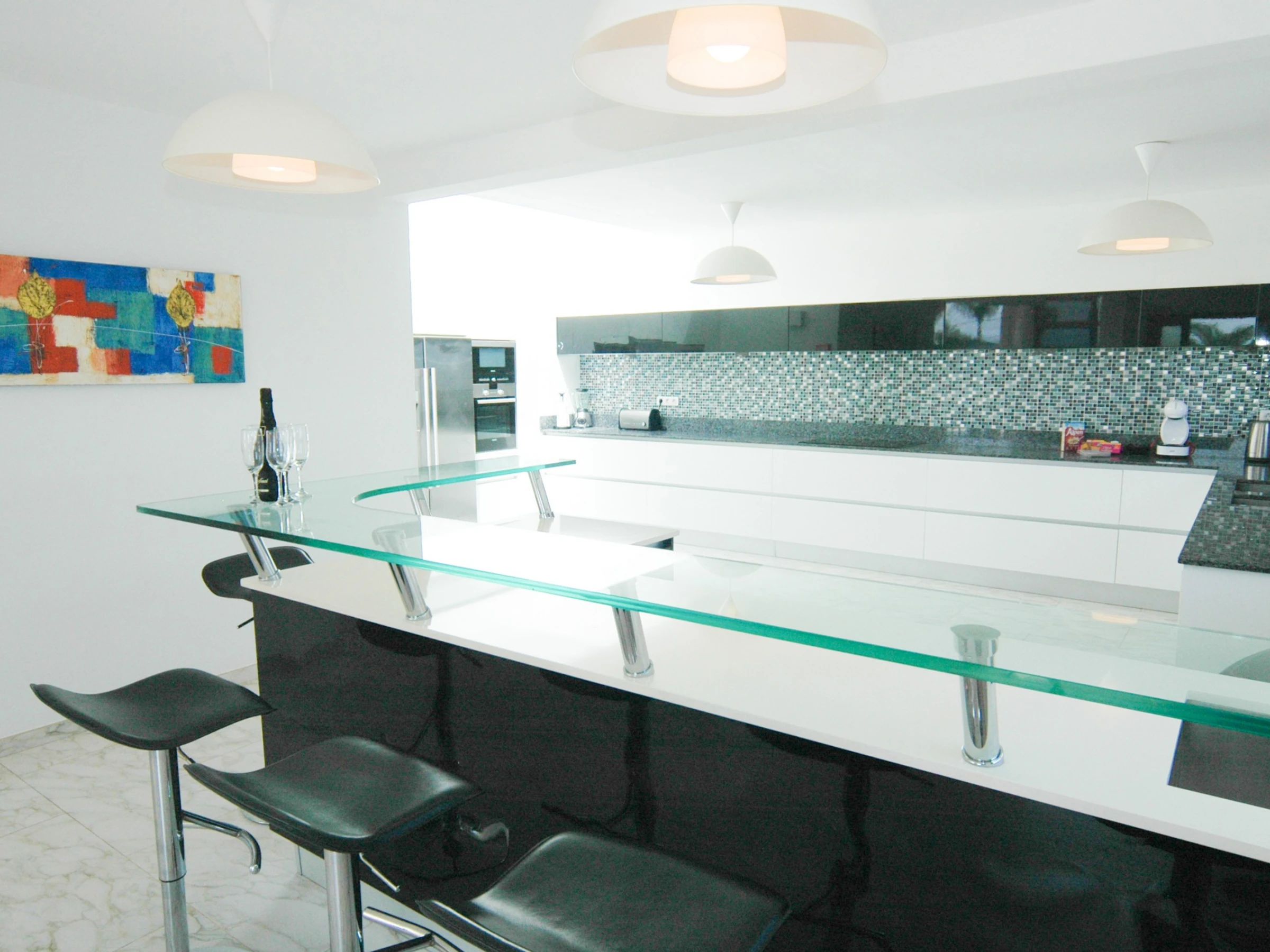 La cuisine, est équipée avec réfrigérateur, micro-ondes, four, lave-vaisselle, cafetière et grille pain.