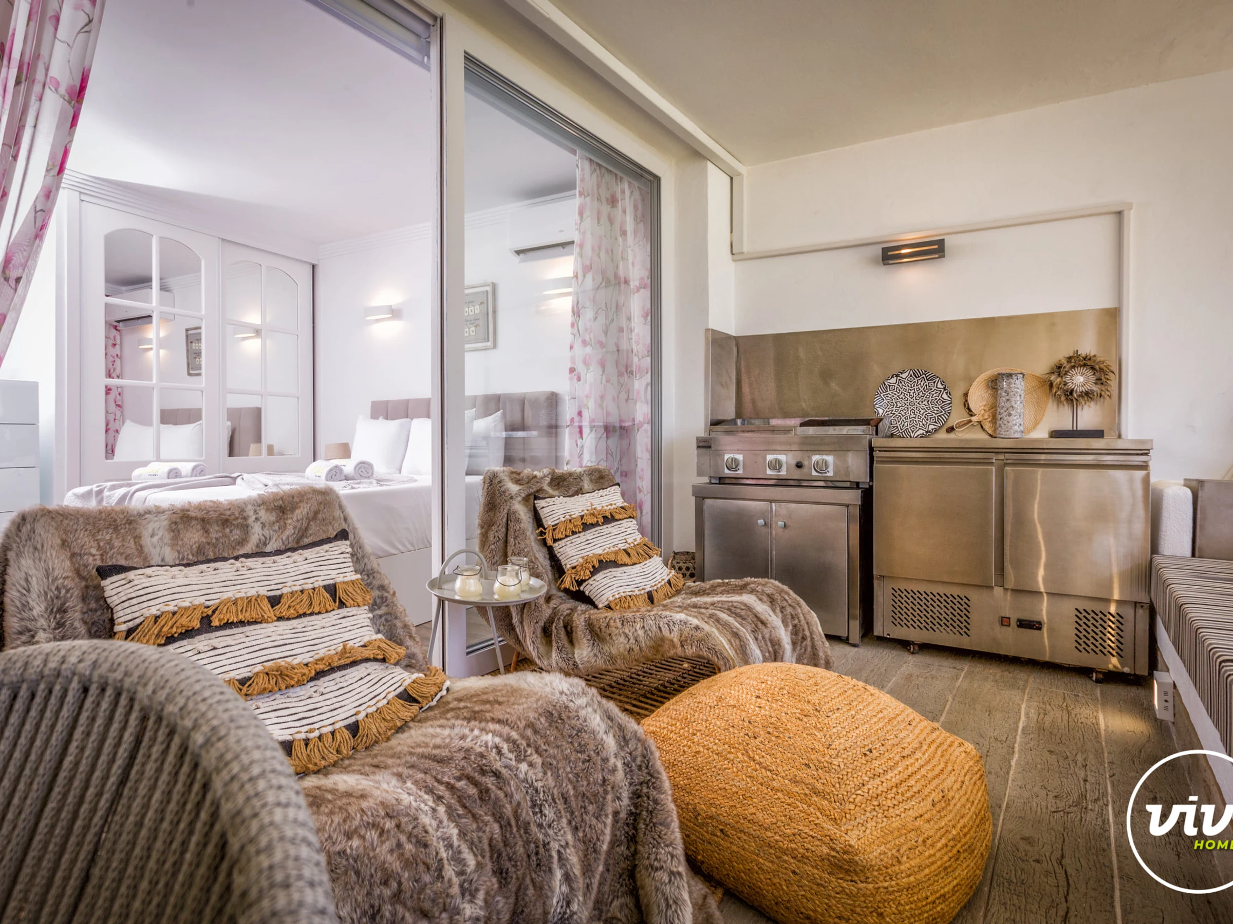 Logement de 80 m² coquet et totalement équipé, avec vue sur la mer et le jardin.