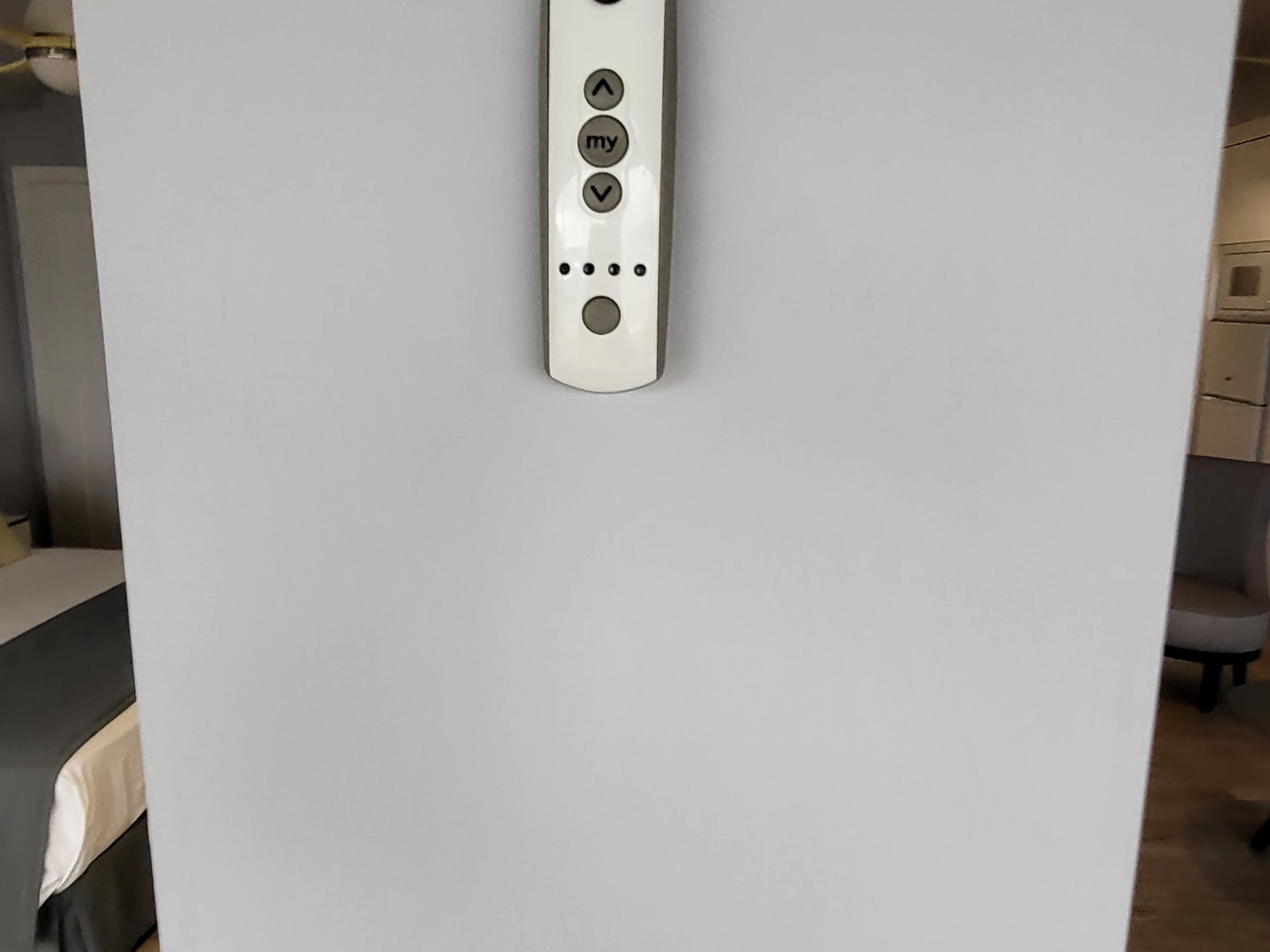 La fenêtre est équipée de rideaux opaques et d'un store électrique, avec télécommande, pour régler l'intensité de la lumière naturelle des journées ensoleillées des îles Canaries.