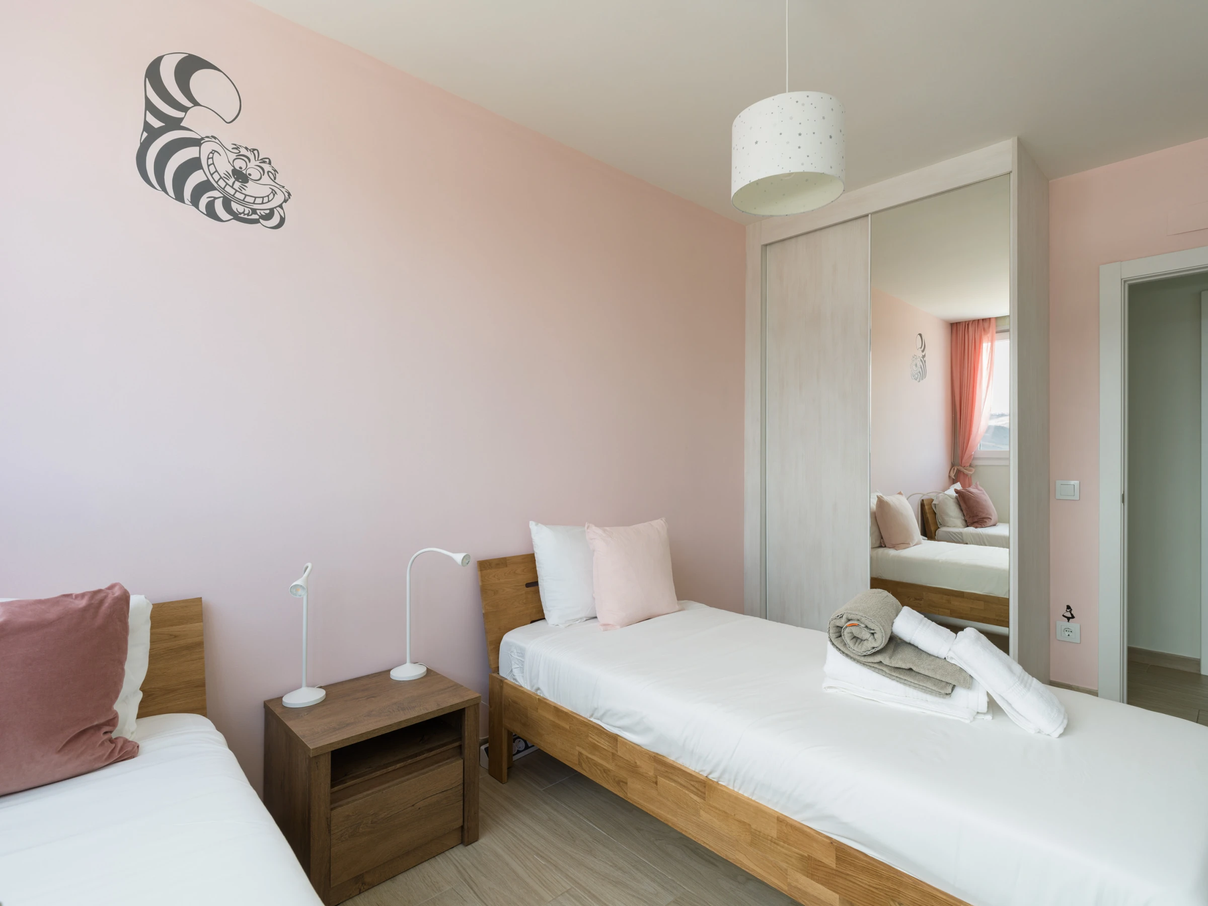 Le logement dispose de 3 chambres pouvant accueillir jusqu'à 6 personnes, réparties avec 1 lit double et 4 lits individuels. Il comprend 2 salles de bains complètes avec douche, idéales pour les familles ou les groupes qui apprécient l'intimité et le confort.