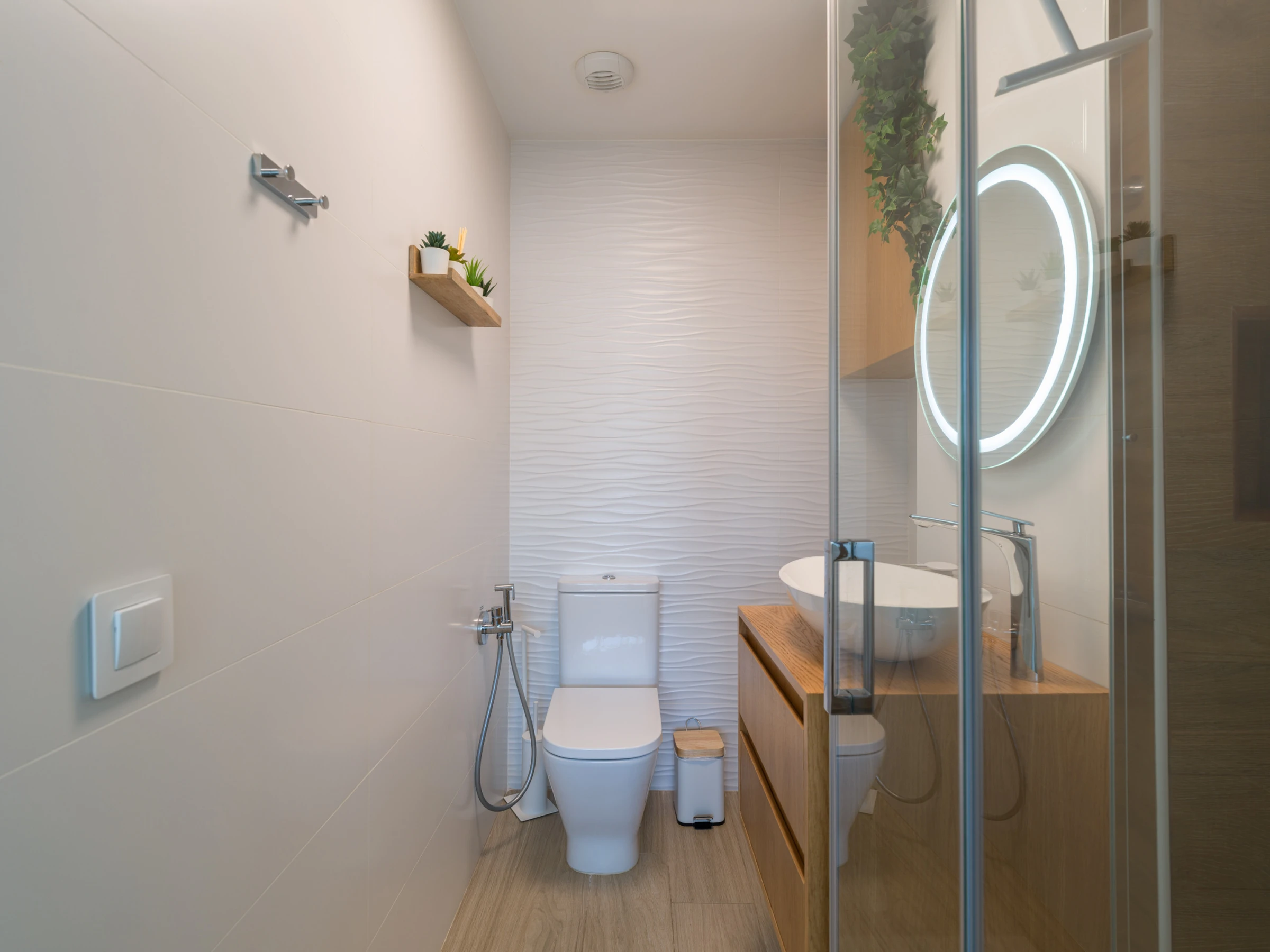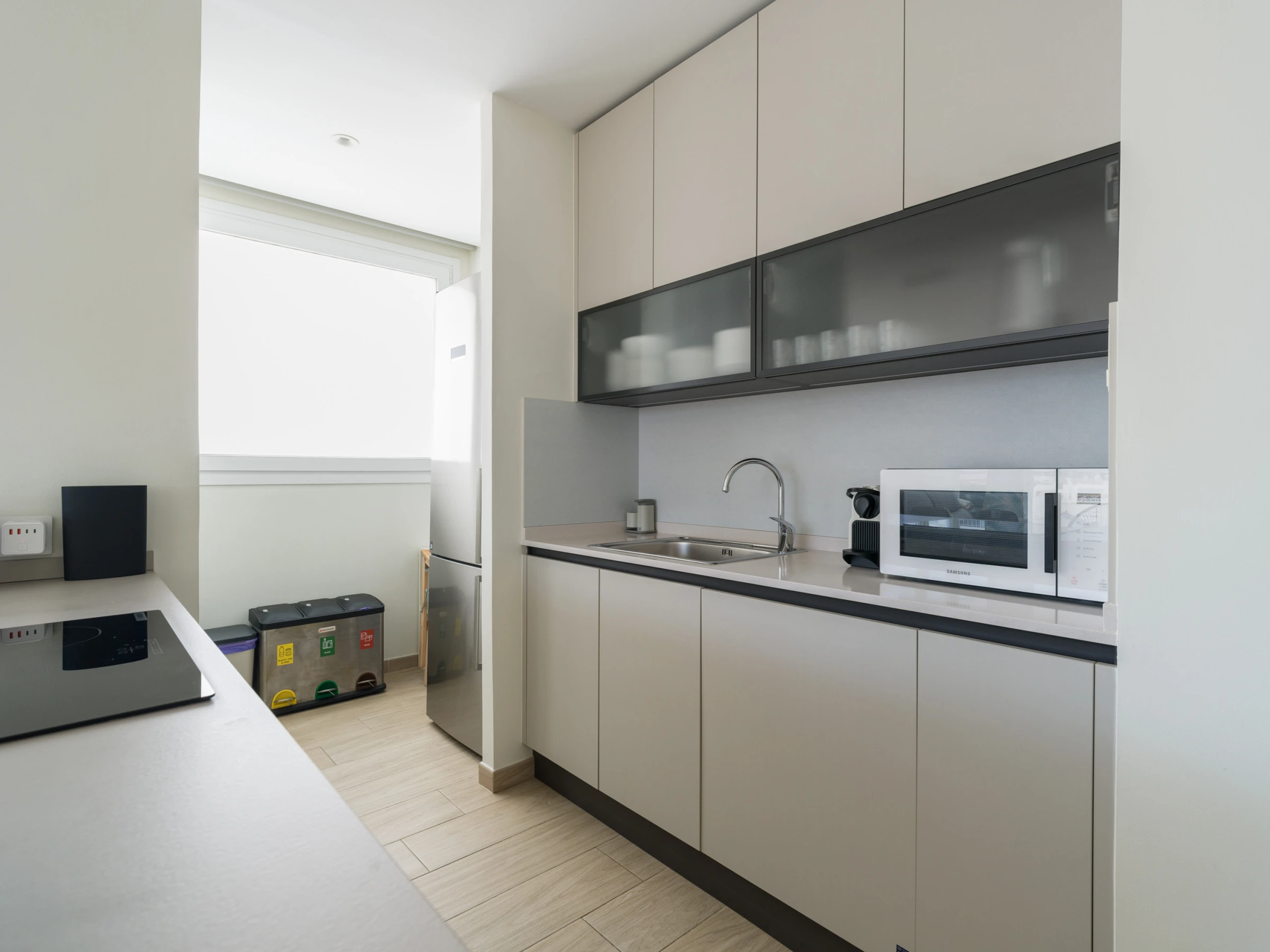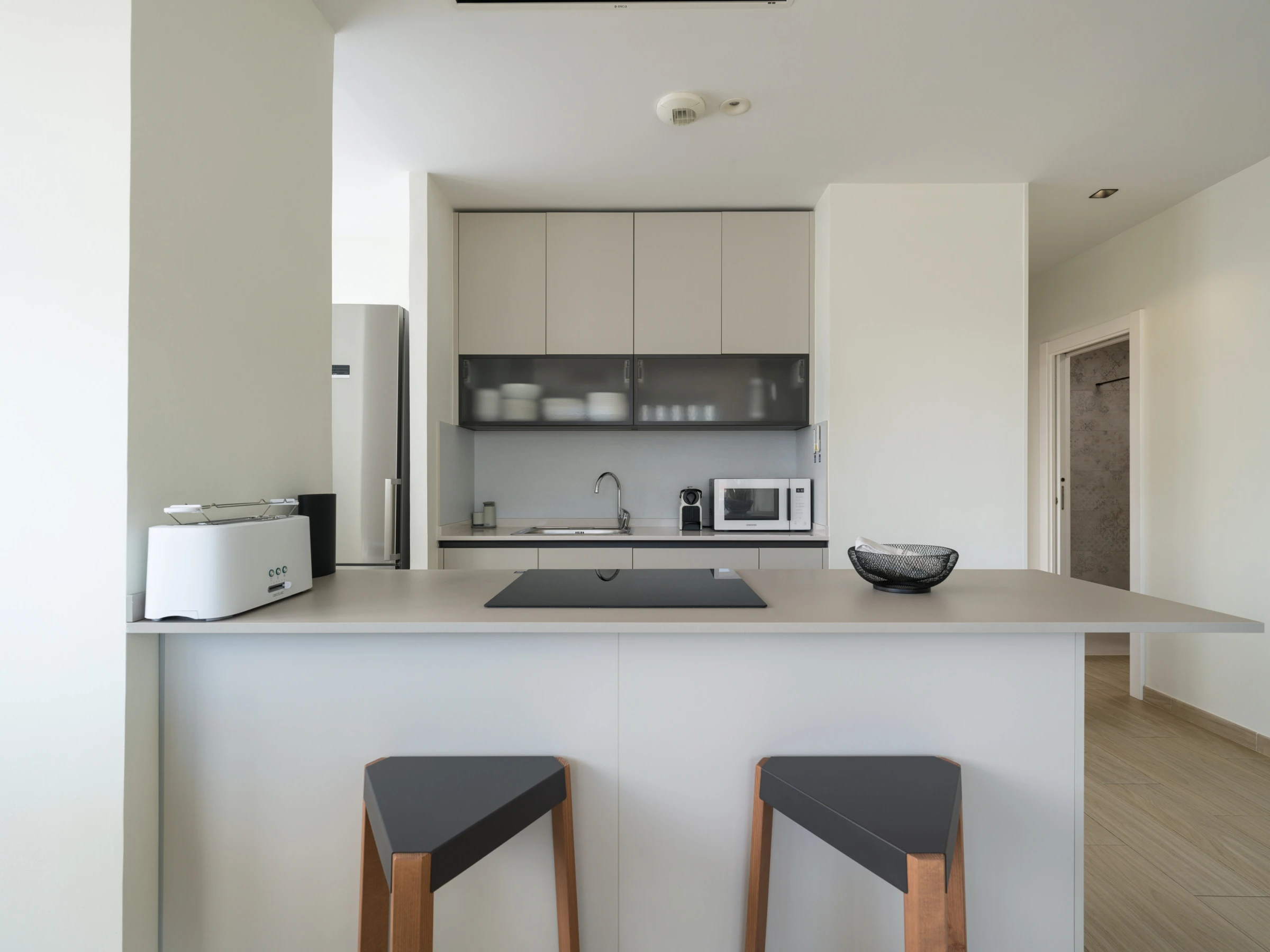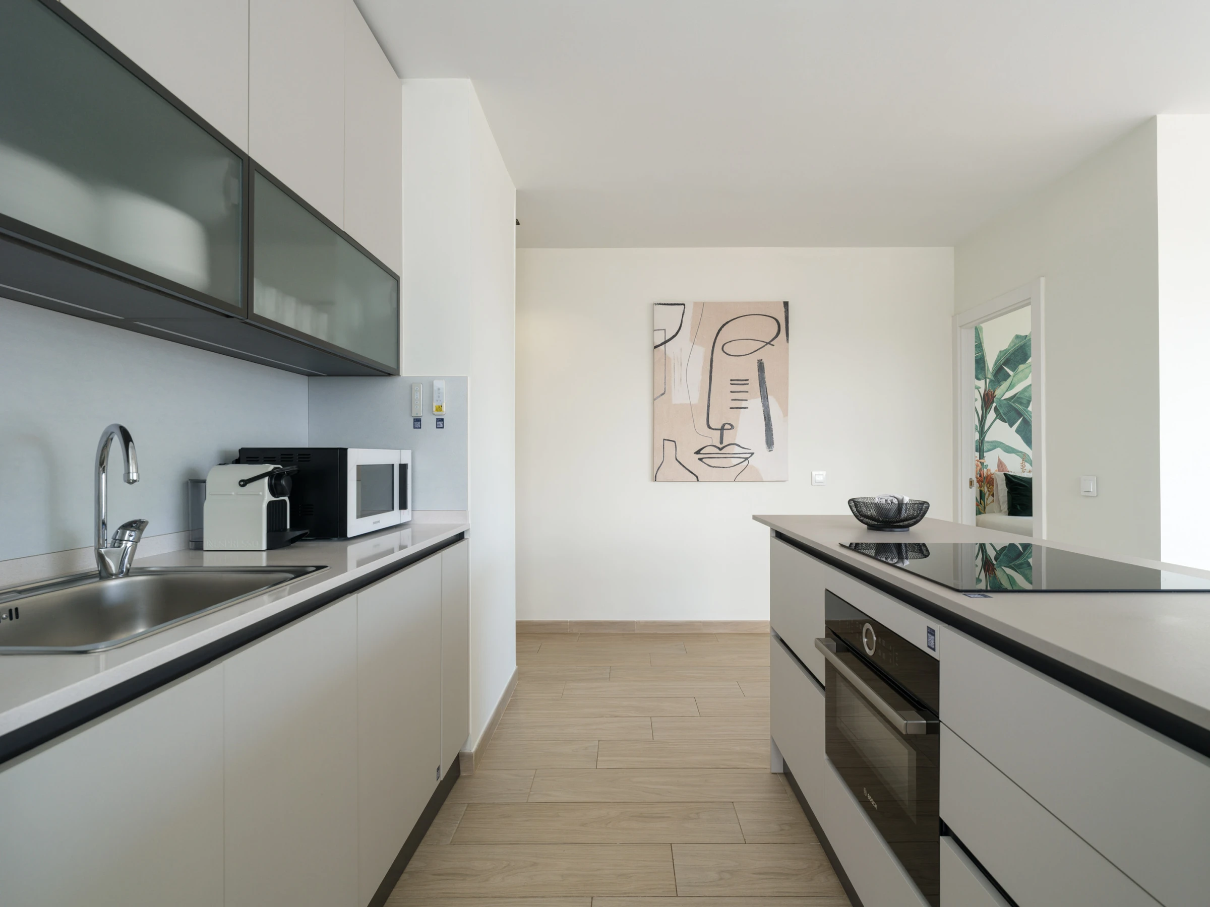 Parmi ses caractéristiques, on peut noter un balcon avec vue sur la mer et la ville, un salon avec canapé, une zone de repas, une télévision HD, une connexion WiFi, un bureau de travail et une zone de repassage. Le logement est décoré avec goût et dispose de détails tels que des porte-manteaux, des placards intégrés et de la literie de qualité.