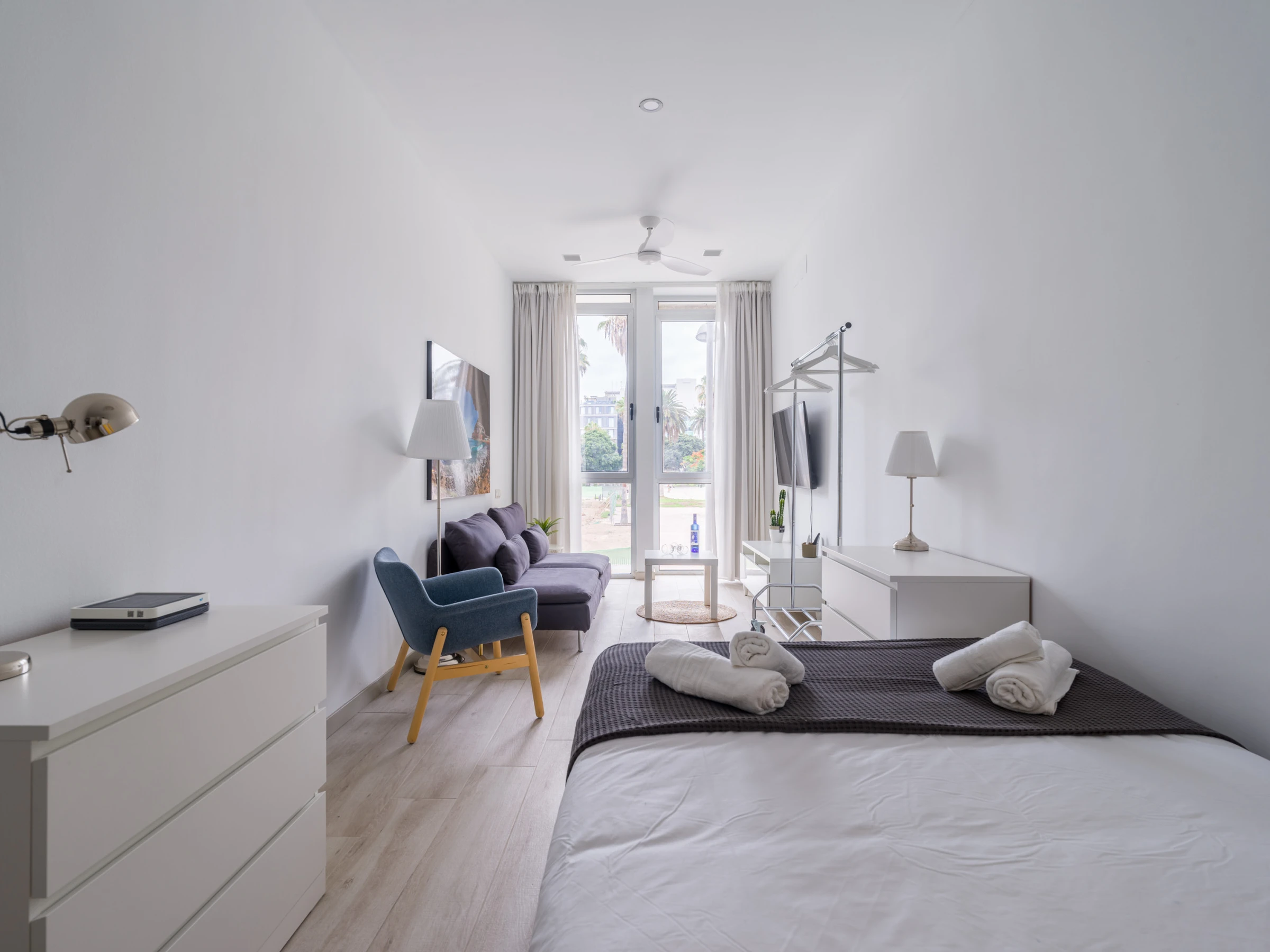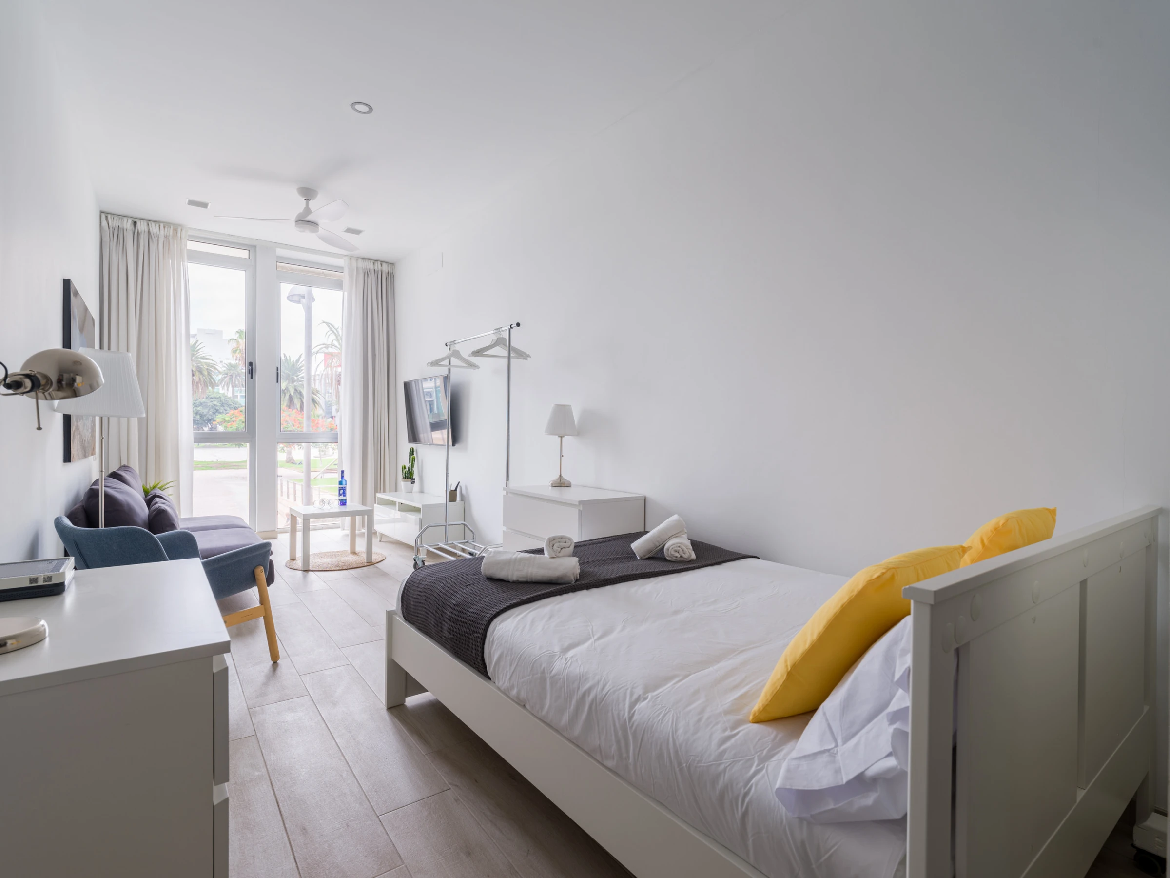 Le logement situé dans le parc de Santa Catalina et à seulement 500 mètres de la plage de Las Canteras a 35 mètres carrés et dispose d'un lave-linge, d'un fer à repasser, d'un micro-ondes, de vaisselle et de couverts complets, ainsi que d'une télévision intelligente et d'une connexion Wi-Fi.