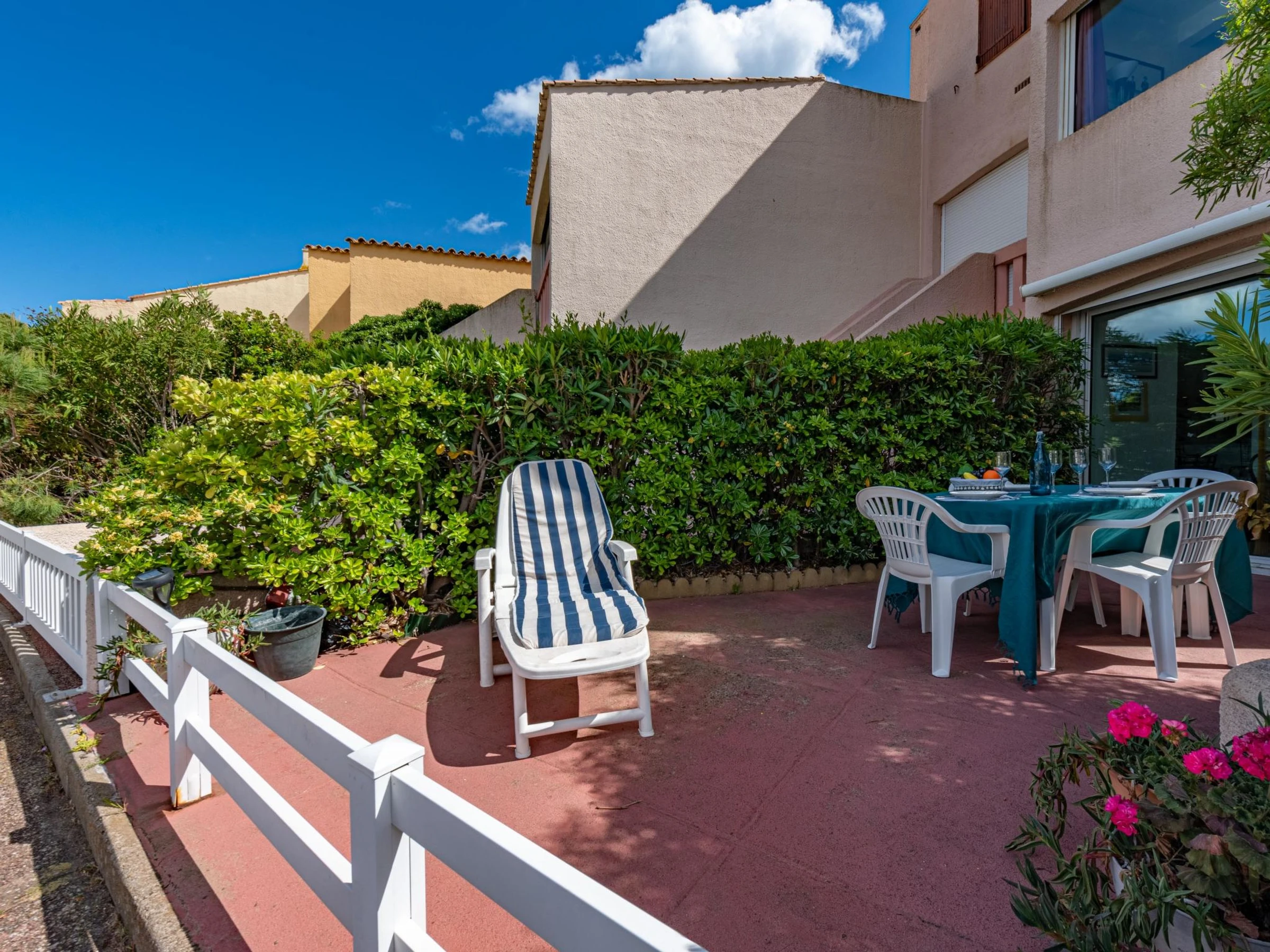 Résidence "Nautica", de 2 étages. Dans le quartier de la Coudalère, à 3 km de la mer, à 50 m du lac, à 3 km de la plage, à 2 m de la lagune. En commun: étang naturel, 7 piscines (10 x 5 m, profondeur 50 - 180 cm, disponibilité saisonnière: [hidden] - [hidden] Place de parking près de la maison. Magasins 100 m, magasin d'alimentation 300 m, supermarché 5 km, restaurant, bar 400 m, boulangerie 100 m, café 400 m, location de bicyclettes 1 km, arrêt de bus "Nautica" 400 m, gare ferroviaire "Perpignan" 20 km, plage de sable "la grande plage" 3 km, centre de plongée 3.5 km, plage naturiste 10 km. Port plaisance 3.5 km, ecole de surf 5 km, ecole de voile 400 m, tennis 500 m, golf miniature 700 m, centre équestre 12 km, piste cyclable 5 km. Jeux pour enfants 1 km. Attractions à proximité: Aqualand Port Leucate 7 km, Réserve Africaine de Sigean 41 km, Parcours Aventure 7 km, téléski nautique site des dosses 7 km, Spot de windsurf 50 m, Cinéma 5 km. Les lacs connus sont facilement accessibles: Lac de Villeneuve de La Raho 28 km. Région de randonnées: Sentier du guetteur 8 km, La forteresse de salses 15 km, Sentier du littoral Collioure 40 km. Veuillez noter: voiture recommandée, sans ascenseur. Animation en saison. Dans le cadre des mesures de restriction d’eau liées à la sécheresse dans certains de nos départements, merci de noter que la piscine de la location pourra être fermée par arrêté préfectoral.Surnommée Venise moderne, avec son petit port, composée de plusieurs immeubles d'1 ou 2 étages, de maisons mitoyennes et de 6 piscines , au bord de l'étang de Leucate.