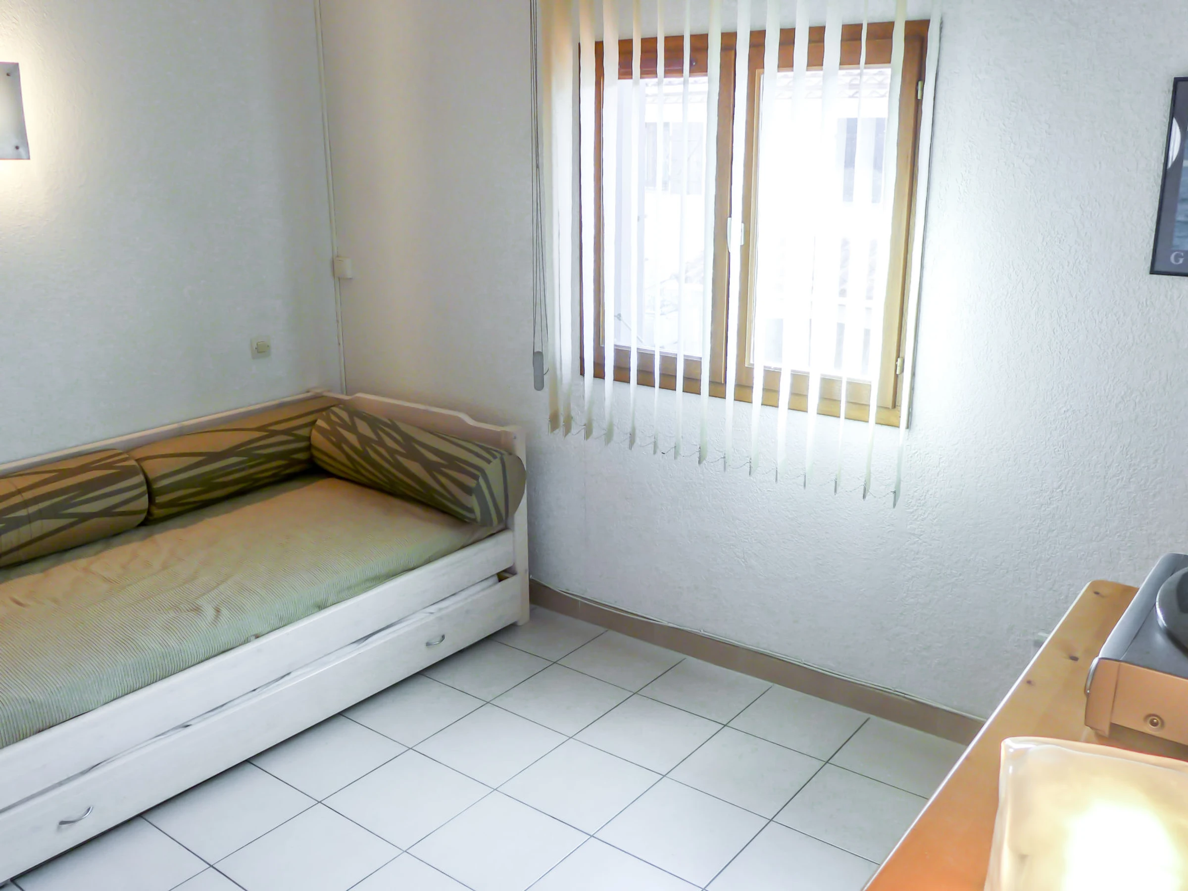 Maison 3 pièces 50 m2. Séjour/salle à manger. Sortie sur la terrasse. 1 chambre avec 1 grand-lit (1 x 140 cm, longueur 190 cm). Sortie sur la terrasse. Coin cuisine (mini-four, lave-vaisselle, 4 plaques vitrocéramiques, micro-ondes, cafetière électrique). Douche, WC séparé. Pas de chauffage. À l'étage supérieur: galerie avec TV et écran plat. 1 chambre avec 1 lit gigogne (2 pers. 2 x 80 cm, longueur 190 cm). Meubles de terrasse. A disposition: lave-linge. Internet (Connexion WIFI, en sus). Place de parking près de la maison. Veuillez noter: détecteur de fumée. Au lieu d'une chambre fermée, des espaces de couchage sont situés dans une zone ouverte (galerie, alcôve...).