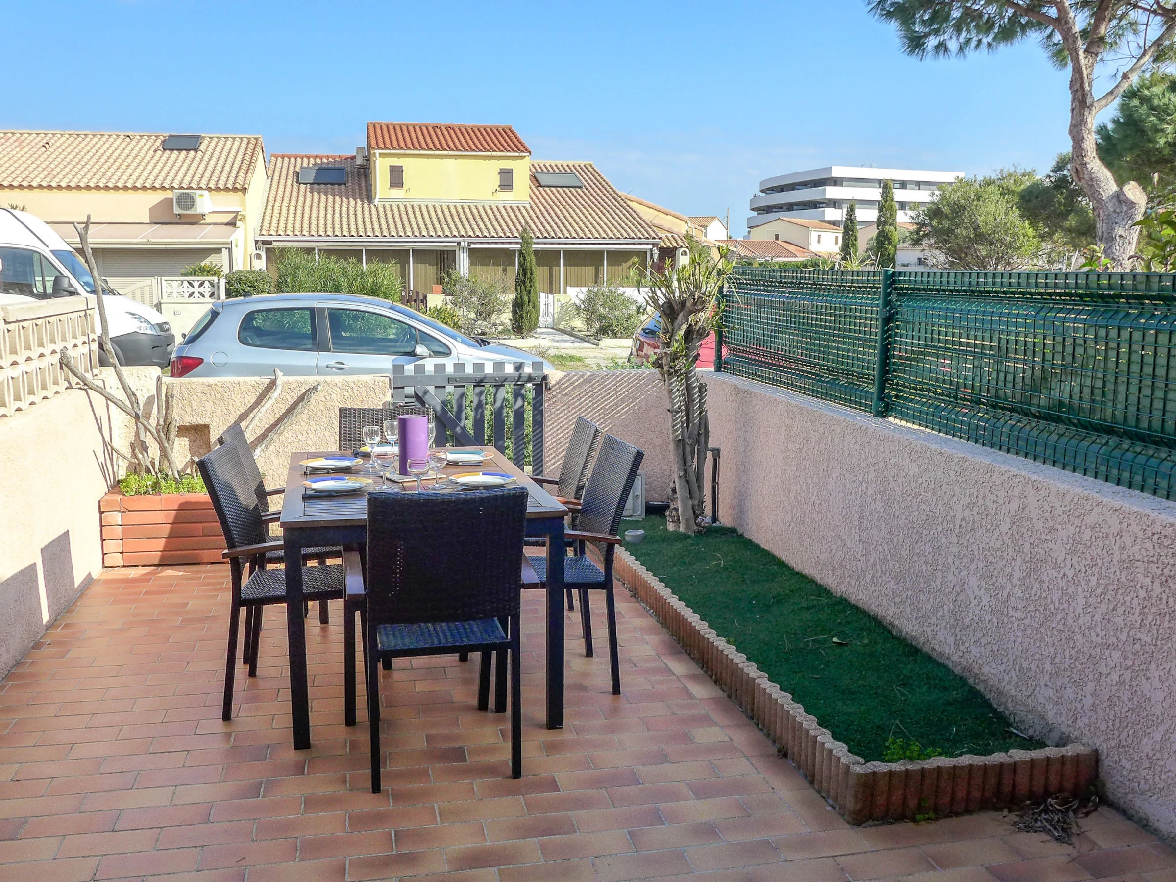 Résidence "Hameau des Tamarins". Dans le quartier de village, à 250 m de la mer, à 200 m de la plage. Place de parking près de la maison. Magasin d'alimentation 200 m, supermarché 500 m, restaurant, bar, boulangerie 300 m, arrêt de bus "Le Port" 400 m, gare ferroviaire "Perpignan" 20 km. Port plaisance 500 m. Attractions à proximité: Aqualand Port Leucate 7 km, Réserve Africaine de Sigean 40 km, site des dosses 7 km, parcours aventure 8 km, cinema 7 km. Les lacs connus sont facilement accessibles: Lac de Villeneuve de la Raho 34 km, Etang de Leucate ou salses 11 km. Région de randonnées: Sentier du guetteur 8 km, la forteresse de salses 15 km, Sentier du littoral Collioure 40 km.