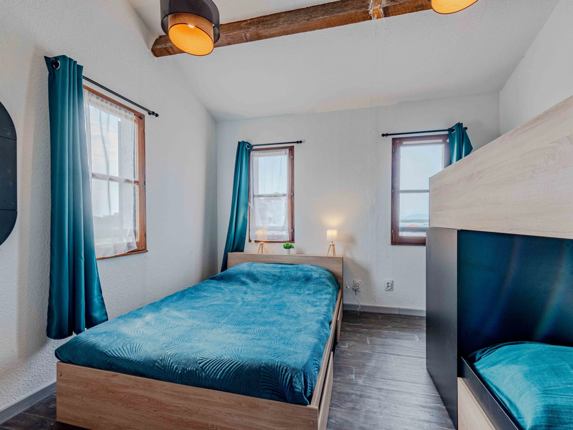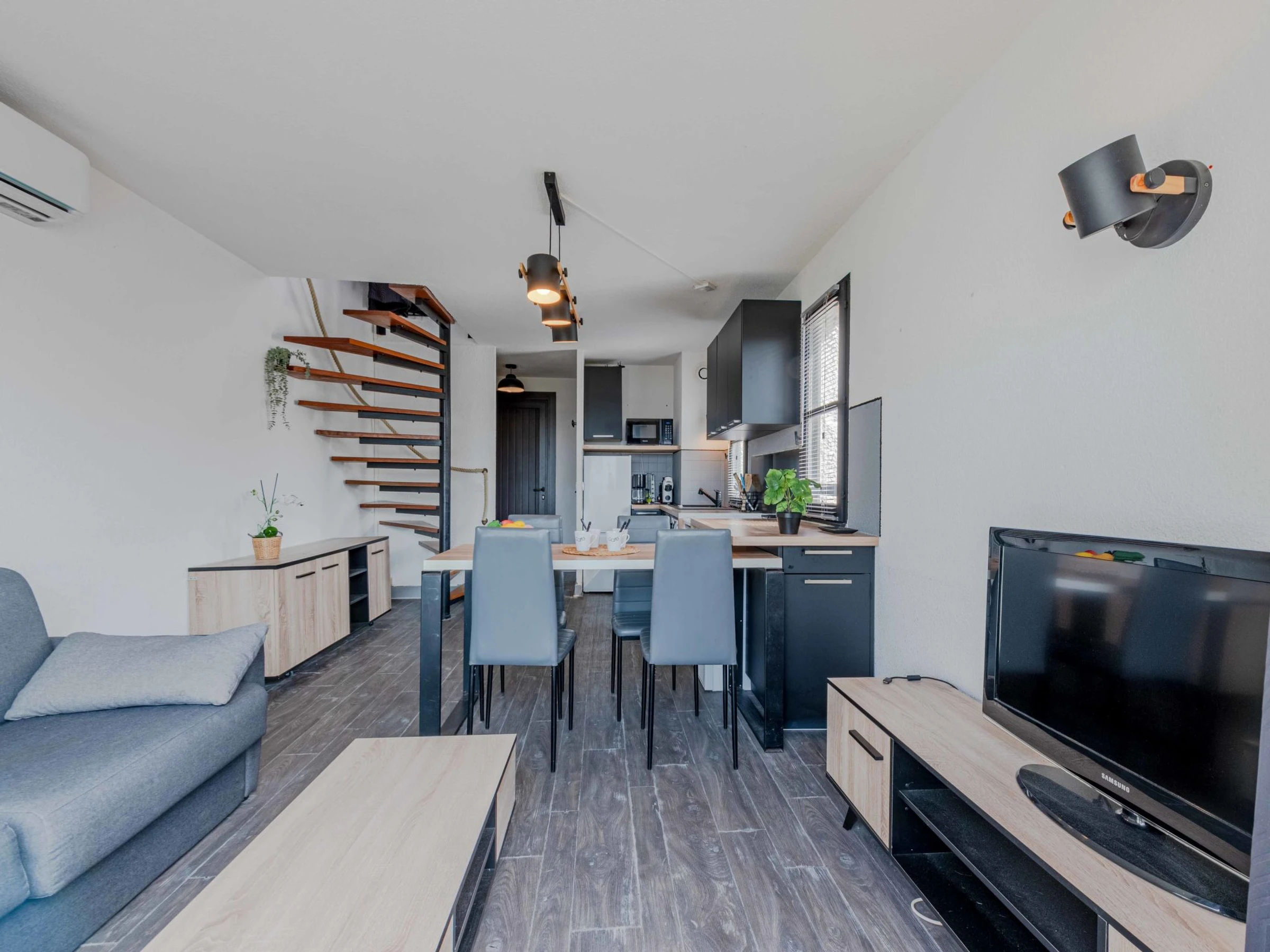 Apt 2 pièces 38 m2 au 1er étage, situation sud-ouest. Séjour/salle à manger avec TV (écran plat). Sortie sur la terrasse. Cuisine ouverte (mini-four, lave-vaisselle, 4 plaques vitrocéramiques, micro-ondes, cafetière électrique). Salle de bains, WC séparé. Air-conditionné. À l'étage supérieur: 1 chambre avec 1 x 2 lits superposés (90 cm, longueur 190 cm), 1 grand-lit (1 x 140 cm, longueur 190 cm). Terrasse 7 m2. Meubles de terrasse. Vue sur le lac. A disposition: lave-linge, sèche-linge. Internet (Connexion WIFI, en sus). Veuillez noter: maximum 1 animal/ chien autorisé. Détecteur de fumée. Annonce d'un particulier  (art 155, IV du CGI).