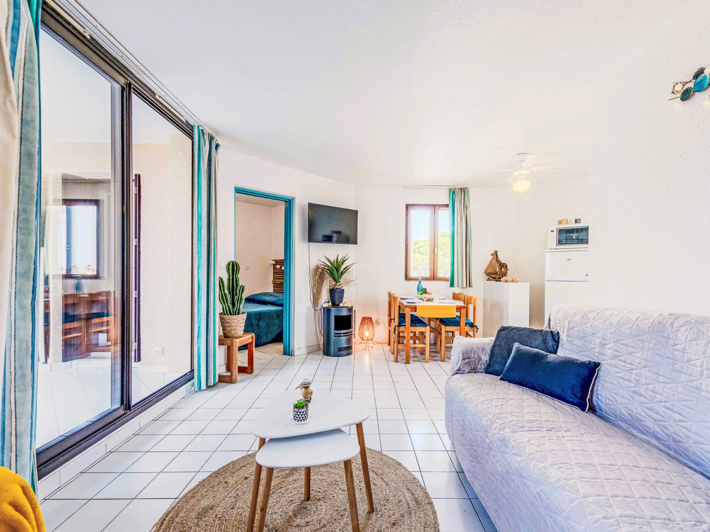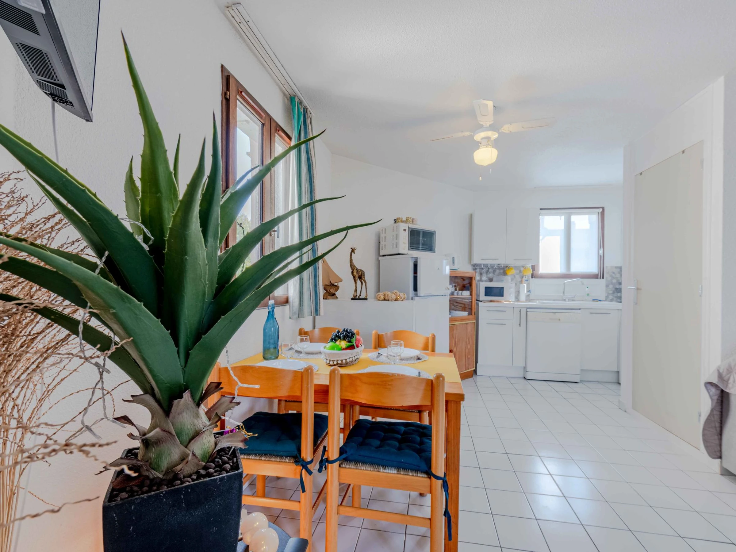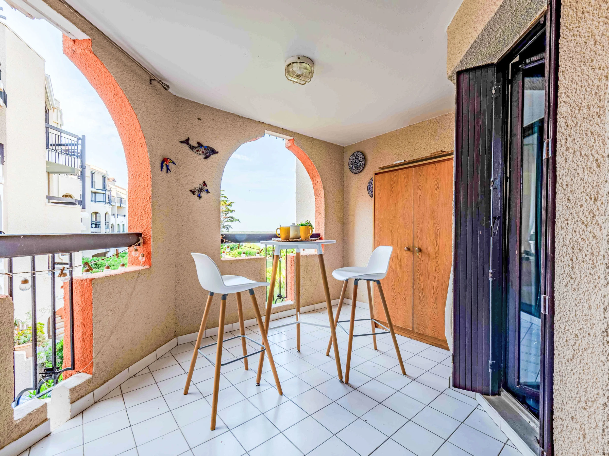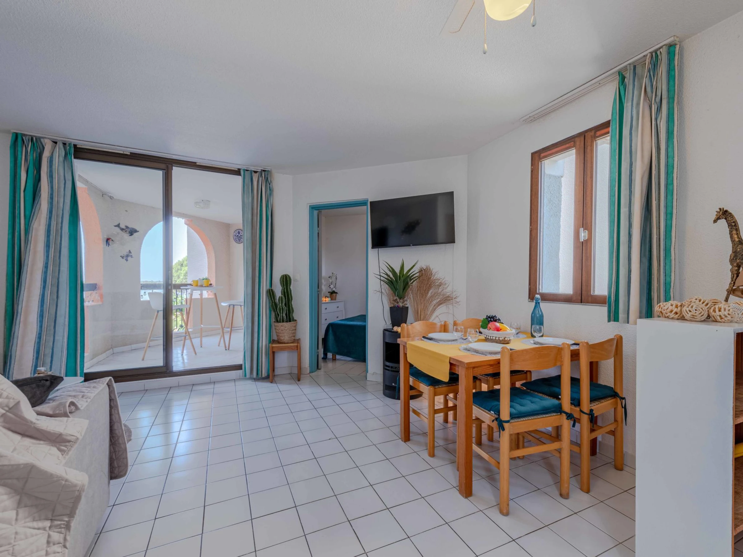La Coudalère à 5 km de Barcarès centre: Résidence "Dominica", de 3 étages. À 2.5 km de la mer, à 50 m du lac, à 2.5 km de la plage. En commun: jardin propice à la détente, 2 piscines chauffée (10 x 15 m, disponibilité saisonnière: [hidden] - [hidden] Bassin pour les enfants, tennis (en sus), basket (en sus), espace de jeux pour les enfants (toboggan), parking public. Magasins, magasin d'alimentation 400 m, supermarché 6 km, restaurant, bar, boulangerie, café 400 m, arrêt de bus "La coudalère" 1 km, gare ferroviaire "Perpignan" 22 km, plage de sable 2.5 km. Ecole de voile 400 m, golf miniature 1.3 km, centre équestre 12 km. Attractions à proximité: Réserve Africaine de Sigean 41 km, Aqualand Port Leucate 7 km, parcours aventure 7 km, cinéma 5 km, Téleski nautique site des dosses 5 km, Spot de windsurf 400 m. Les lacs connus sont facilement accessibles: Lac de villeneuve de la Raho 34 km. Région de randonnées: Sentier du guetteur 8 km, la forteresse de salses 15 km, Sentier du littoral Collioure 40 km. Veuillez noter: voiture recommandée, sans ascenseur. Animation en saison. La remise des clés a lieu à l’agence Barcares 3 km. "L´appartement se trouve dans une zone de circulation limitée". La photo ne montre qu’un exemple de location de vacances. D’autres appartements sont également proposés à la location dans cette maison de vacances. Dans le cadre des mesures de restriction d’eau liées à la sécheresse dans certains de nos départements, merci de noter que la piscine de la location pourra être fermée par arrêté préfectoral.
