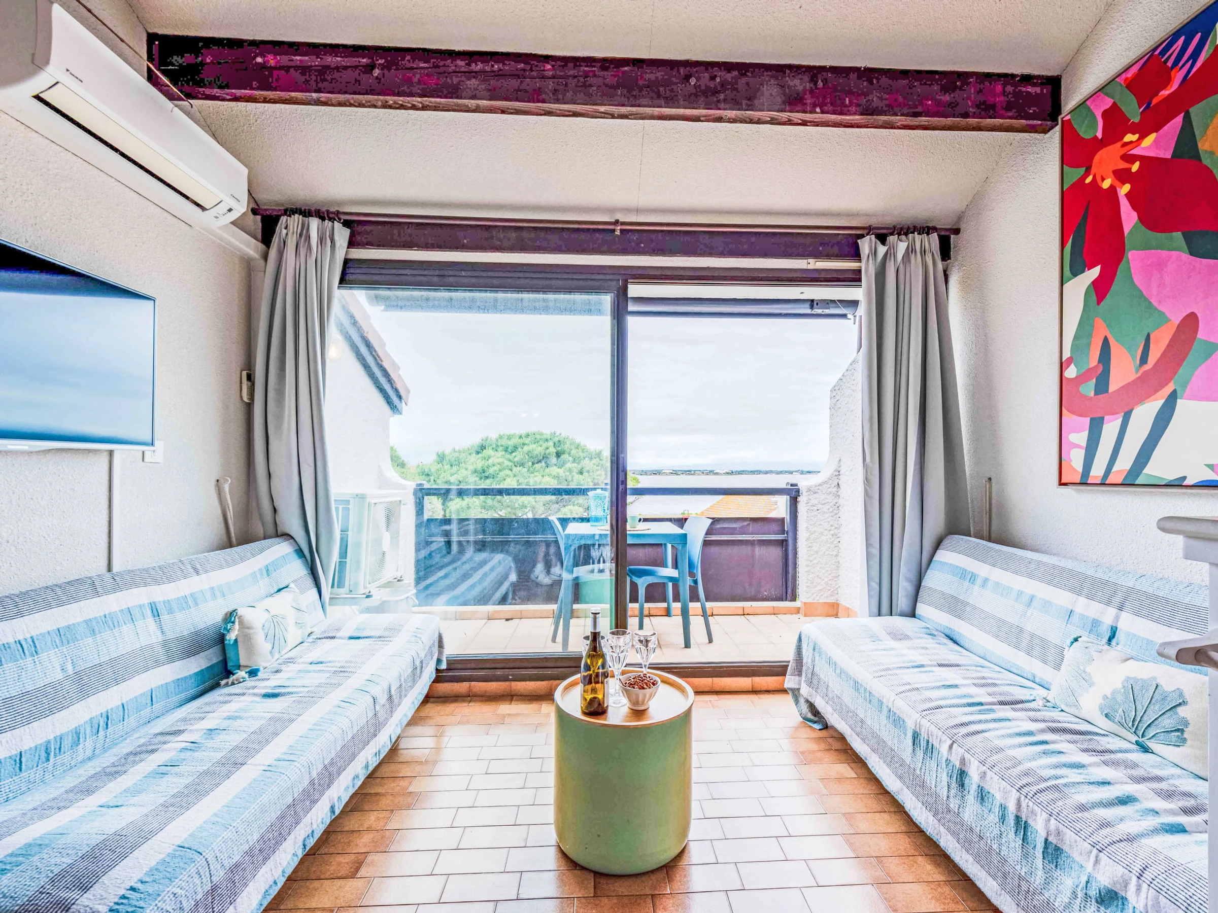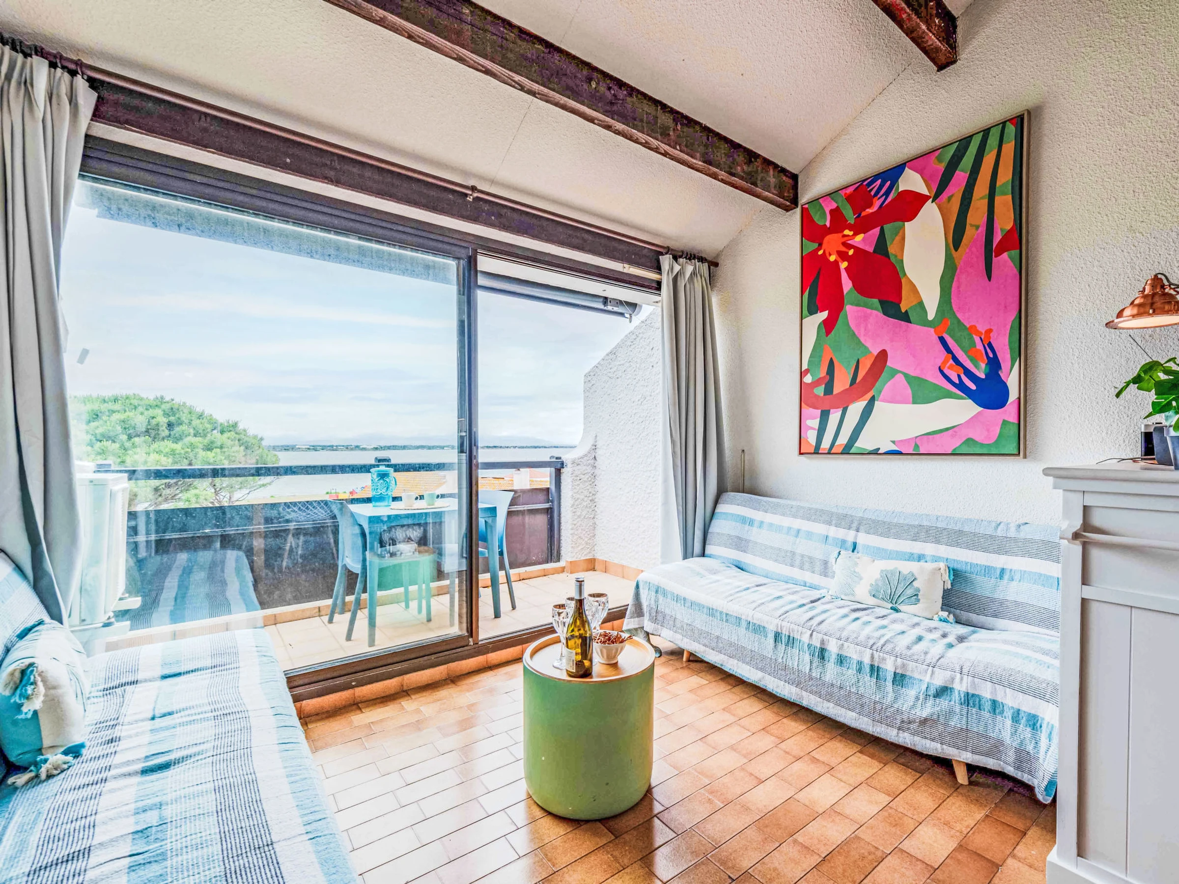 Coudalère à 5 km de Barcarès centre: Résidence "Antigua", de 2 étages. À 2.5 km de la mer, à 50 m du lac, à 2.5 km de la plage. En commun: jardin propice à la détente, 2 piscines chauffée (10 x 15 m, disponibilité saisonnière: [hidden] - [hidden] Bassin pour les enfants, tennis (en sus), basket, terrain de pétanque (en sus), espace de jeux pour les enfants (toboggan), parking public. Magasins, magasin d'alimentation 400 m, supermarché 6 km, restaurant, bar, boulangerie, café, location de bicyclettes 400 m, arrêt de bus "La coudalère" 1 km, gare ferroviaire "Perpignan" 22 km, plage de sable 2.5 km. Ecole de voile 400 m, golf miniature 1.3 km, centre équestre 12 km. Attractions à proximité: Réserve Africaine de Sigean 41 km, Aqualand Port Leucate 7 km, parcours aventure 7 km, cinéma 5 km, Téleski nautique site des dosses 5 km, Spot de windsurf 400 m. Les lacs connus sont facilement accessibles: Lac de villeneuve de la Raho 34 km. Région de randonnées: Sentier du guetteur 8 km, la forteresse de salses 15 km, Sentier du littoral Collioure 40 km. Veuillez noter: voiture recommandée, sans ascenseur. Animation en saison. La photo ne montre qu’un exemple de location de vacances. D’autres appartements sont également proposés à la location dans cette maison de vacances. Dans le cadre des mesures de restriction d’eau liées à la sécheresse dans certains de nos départements, merci de noter que la piscine de la location pourra être fermée par arrêté préfectoral. Ensemble de résidences dotées de 3 piscines chauffées dont 1 bassin pour enfants, 1 bassin de 10m/15m et un bassin de 25m/15m (ouverture du 15. 04 au 15.10) gratuit et de 5 cours de tennis payant.