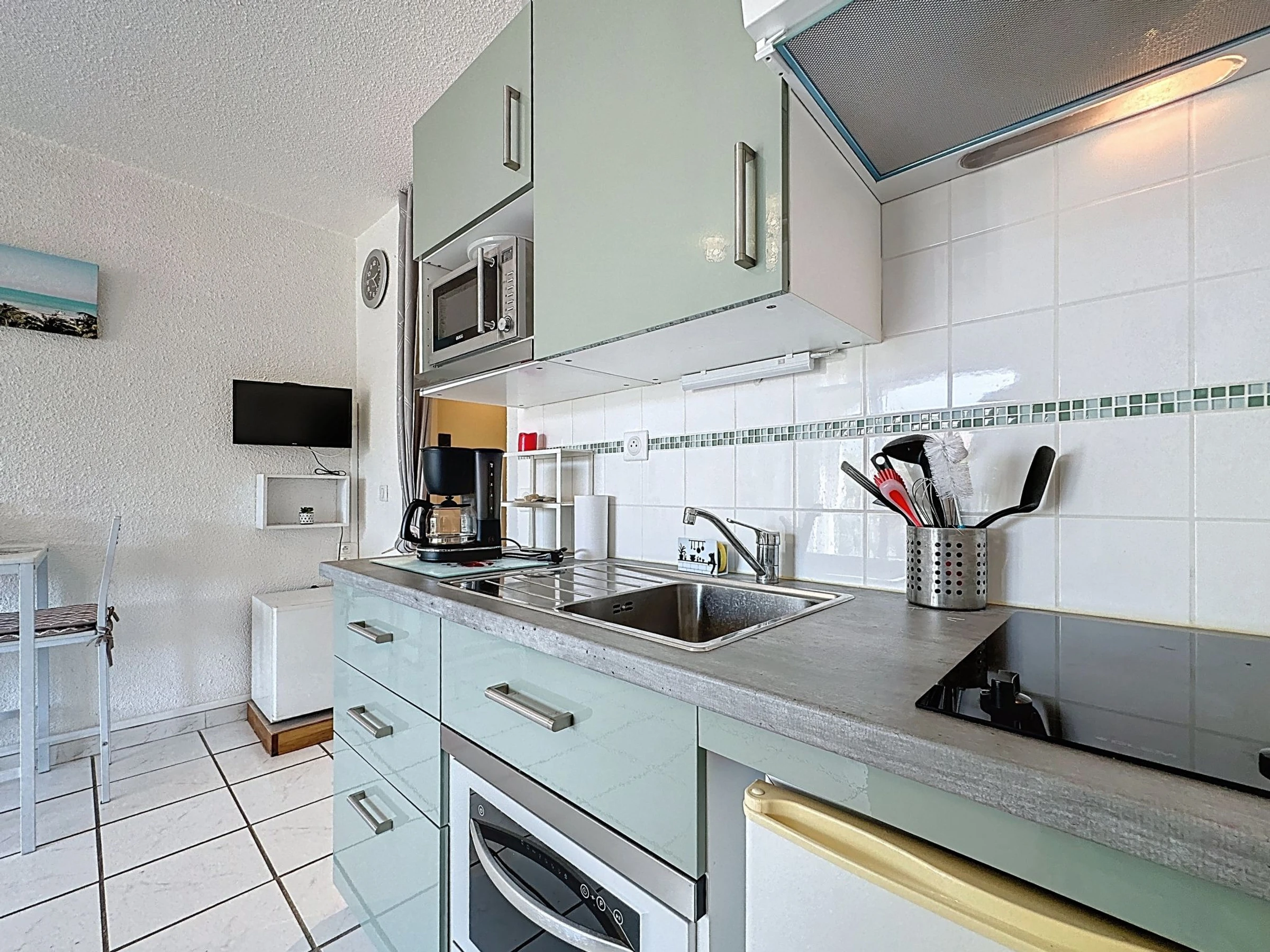 Résidence "Coudalère/Guadeloupe", de 2 étages. À 2.5 km de la mer, à 50 m du lac, à 2.5 km de la plage. En commun: jardin propice à la détente, 2 piscines chauffée (10 x 15 m, disponibilité saisonnière: [hidden] - [hidden] Bassin pour les enfants, tennis (en sus), basket, terrain de pétanque (en sus), espace de jeux pour les enfants (toboggan), parking public. Magasins, magasin d'alimentation 100 m, supermarché 6 km, restaurant, bar, boulangerie, café, location de bicyclettes 100 m, arrêt de bus "La Coudalère" 1 km, gare ferroviaire "Perpignan" 22 km, plage de sable 2.5 km. Ecole de voile 150 m, tennis couvert 1.3 km, golf miniature 1.3 km, centre équestre 12 km. Attractions à proximité: Réserve Africaine de Sigean 41 km, Aqualand Port Leucate 7 km, parcours aventure 7 km, cinéma 5 km, Téleski nautique site des dosses 5 km, Spot de windsurf 50 m. Les lacs connus sont facilement accessibles: Lac de villeneuve de la Raho 34 km. Région de randonnées: Sentier du guetteur 8 km, la forteresse de salses 15 km, Sentier du littoral Collioure 40 km. Veuillez noter: voiture recommandée, sans ascenseur. Animation en saison. La photo ne montre qu’un exemple de location de vacances. D’autres appartements sont également proposés à la location dans cette maison de vacances. Dans le cadre des mesures de restriction d’eau liées à la sécheresse dans certains de nos départements, merci de noter que la piscine de la location pourra être fermée par arrêté préfectoral.