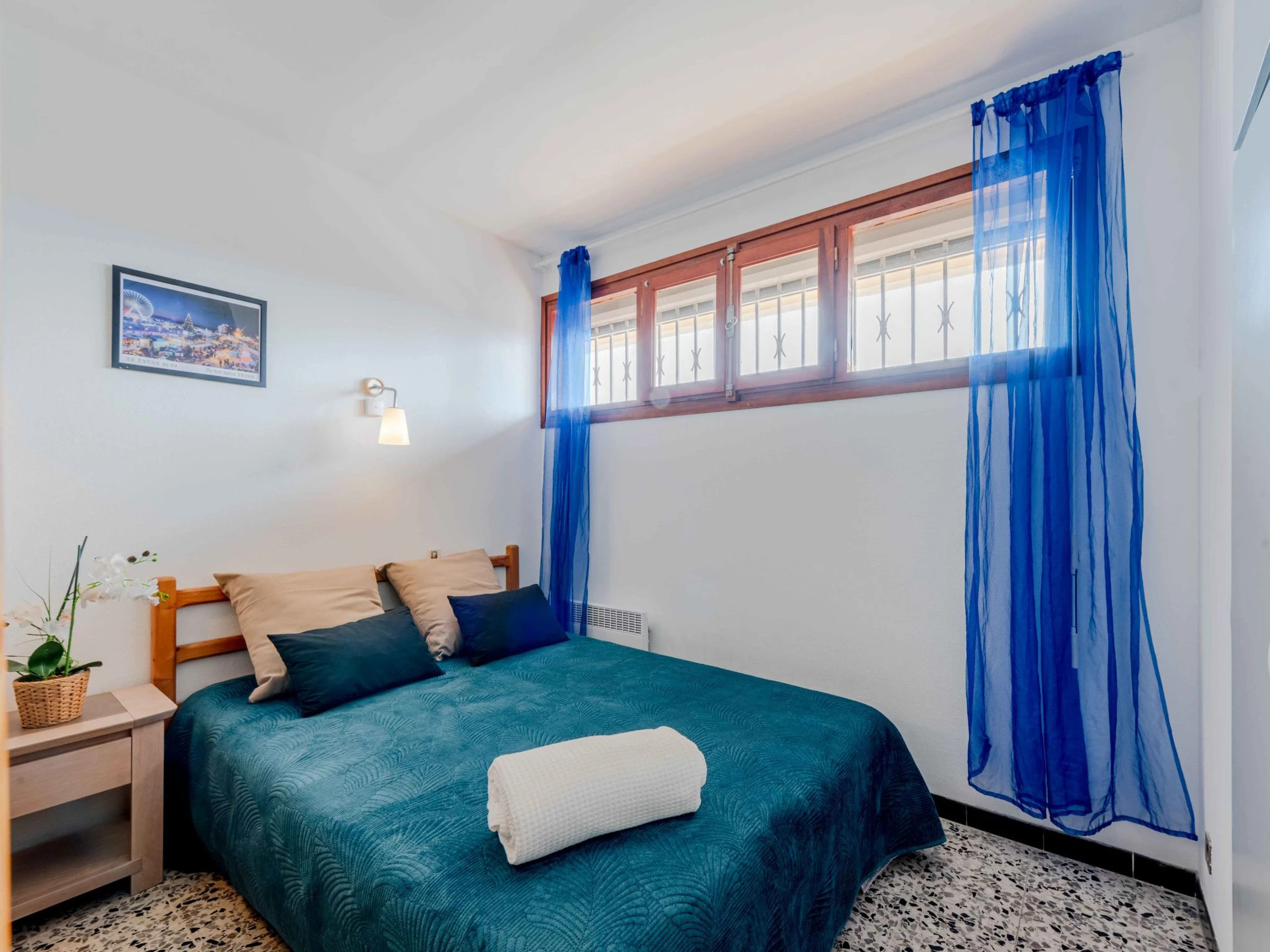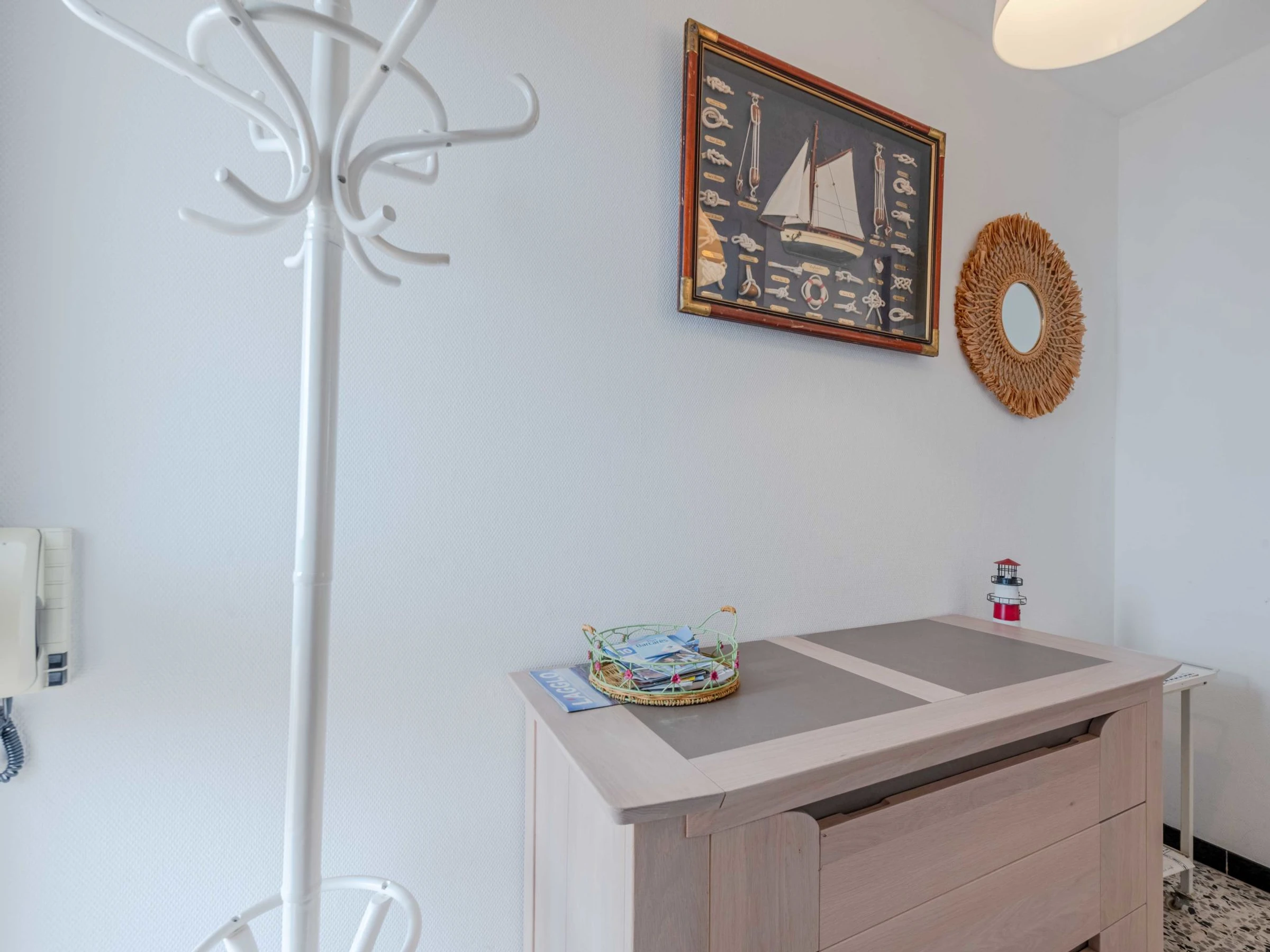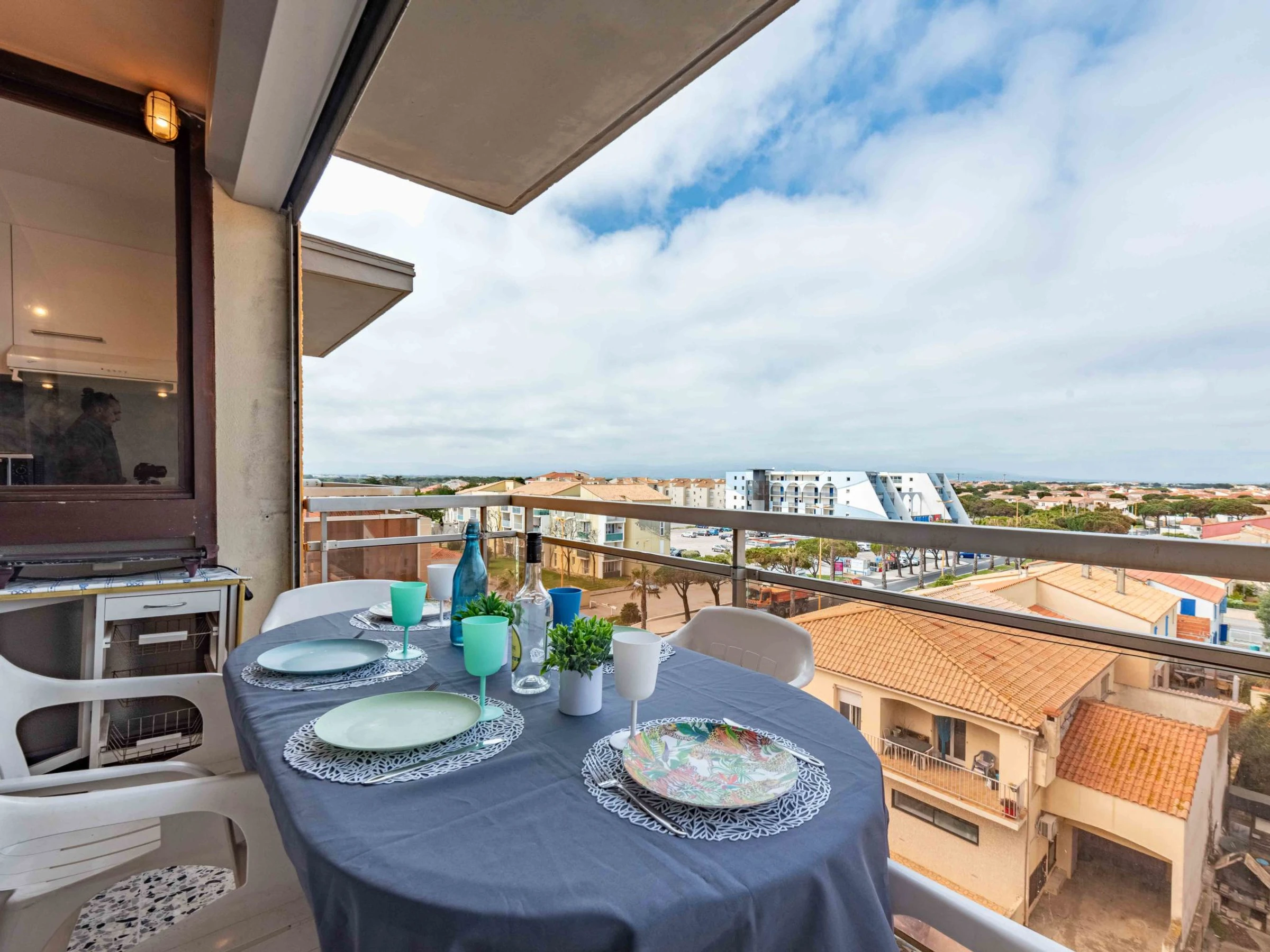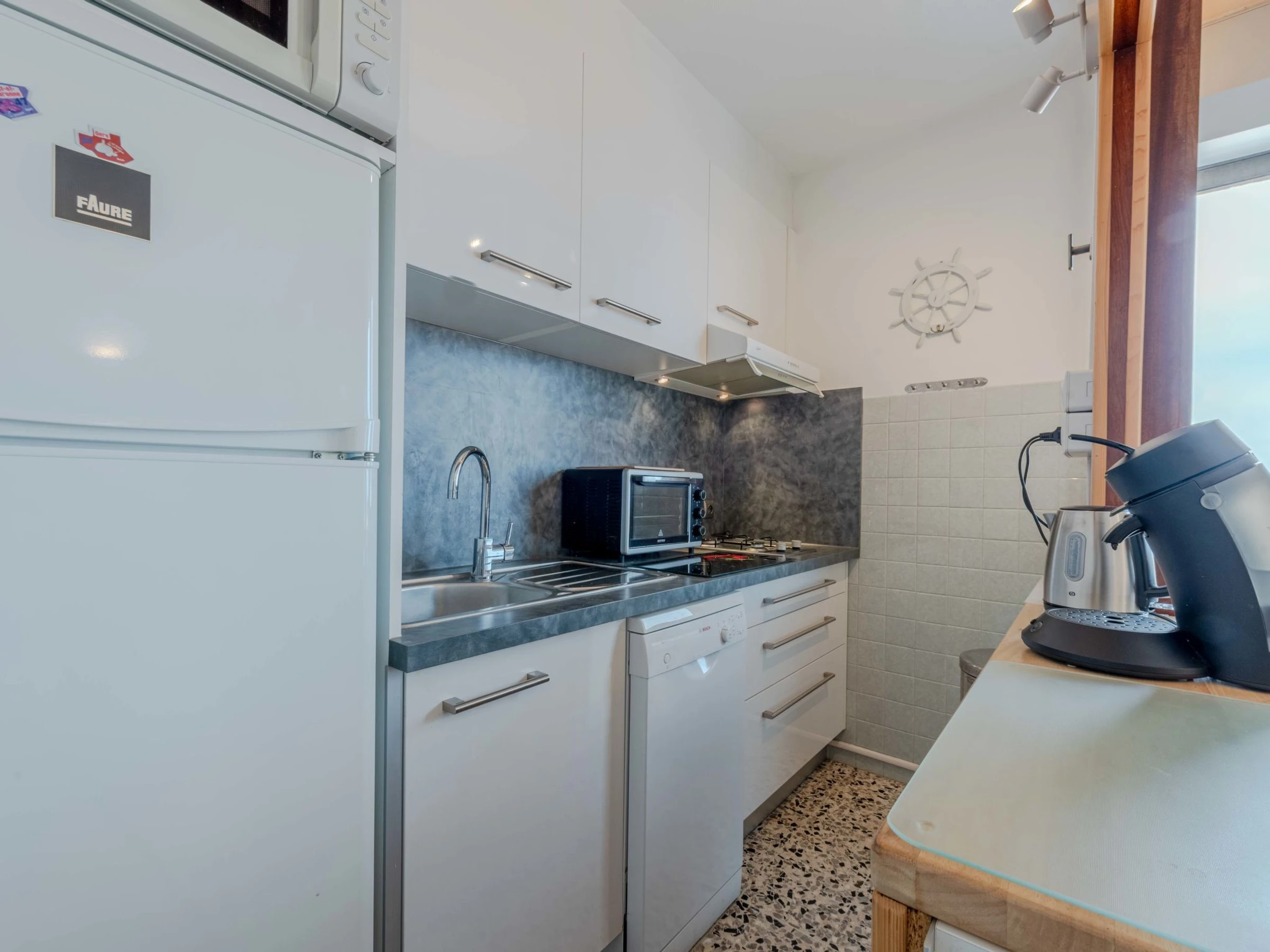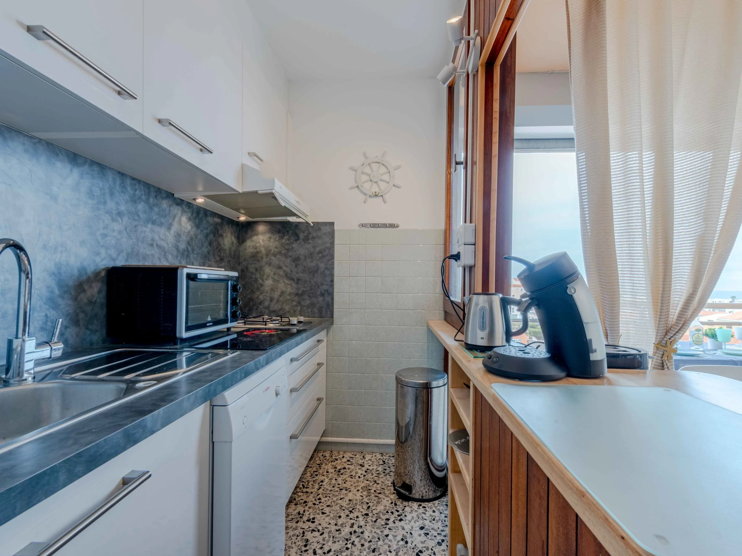 Apt 2 pièces 40 m2 au 5ème étage, situation nord. Séjour/salle à manger avec 1 divan-lit double (1 x [hidden] cm, longueur [hidden] cm), TV (écran plat), radiateur électrique. Sortie sur le balcon. 1 chambre avec 1 x 2 lits superposés (90 cm, longueur [hidden] cm), 1 grand-lit (1 x [hidden] cm, longueur [hidden] cm), radiateur électrique. Cuisine ouverte (2 plaques de cuisson, mini-four, four, lave-vaisselle, grille-pain, bouilloire électrique, micro-ondes, cafetière électrique). Douche/WC. Chauffage électrique. Mobilier de balcon. Vue latérale sur la mer et les montagnes. A disposition: lave-linge. Place de parking (cloturée). Veuillez noter: détecteur de fumée. Annonce d'un particulier (art [hidden], IV du CGI).