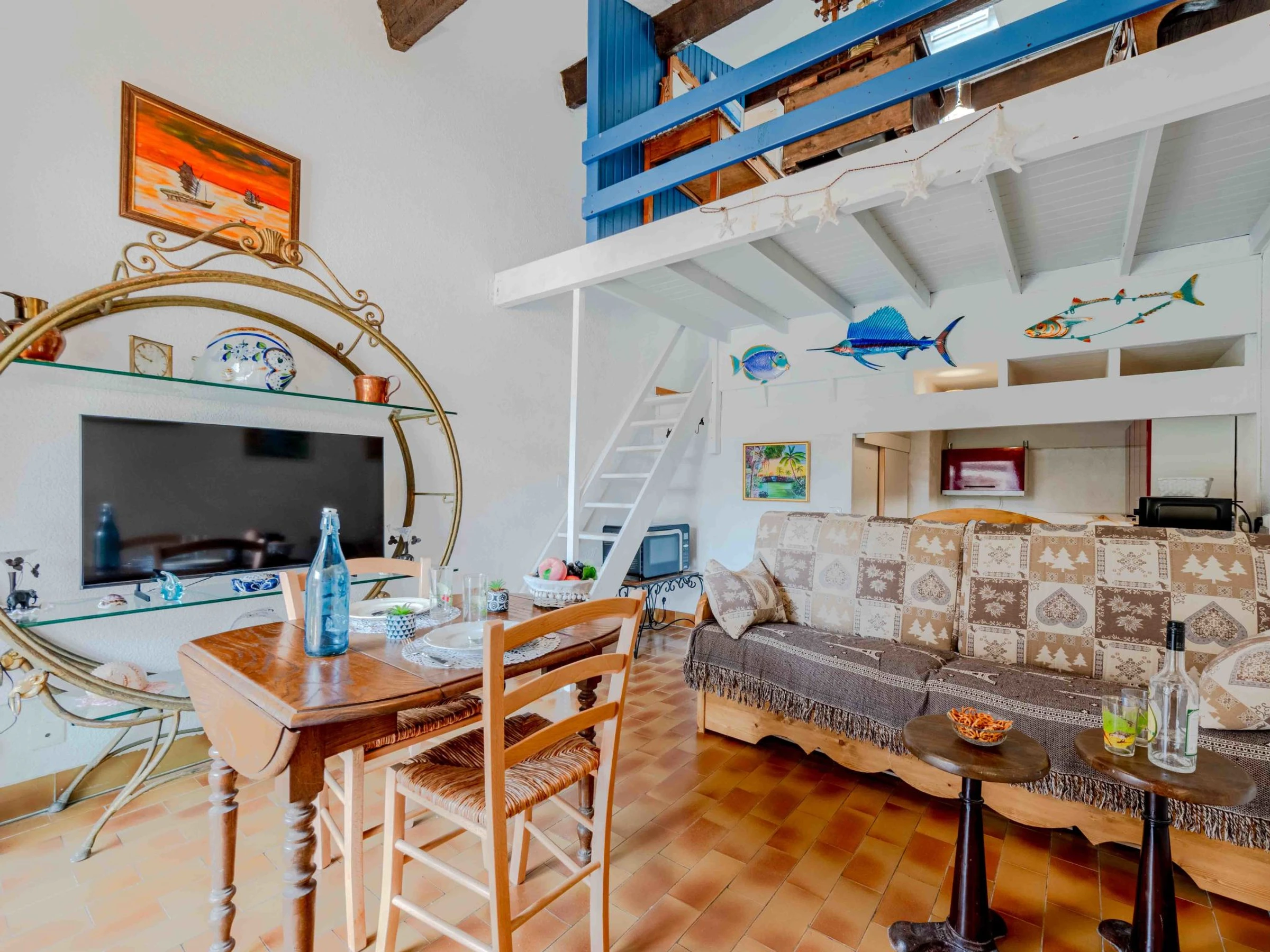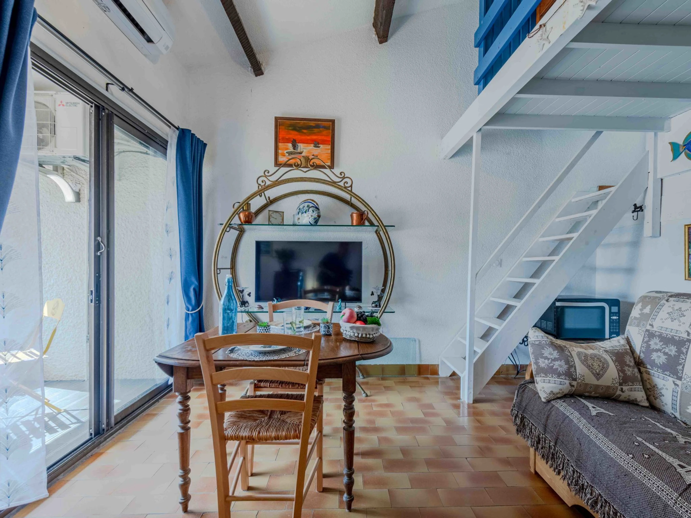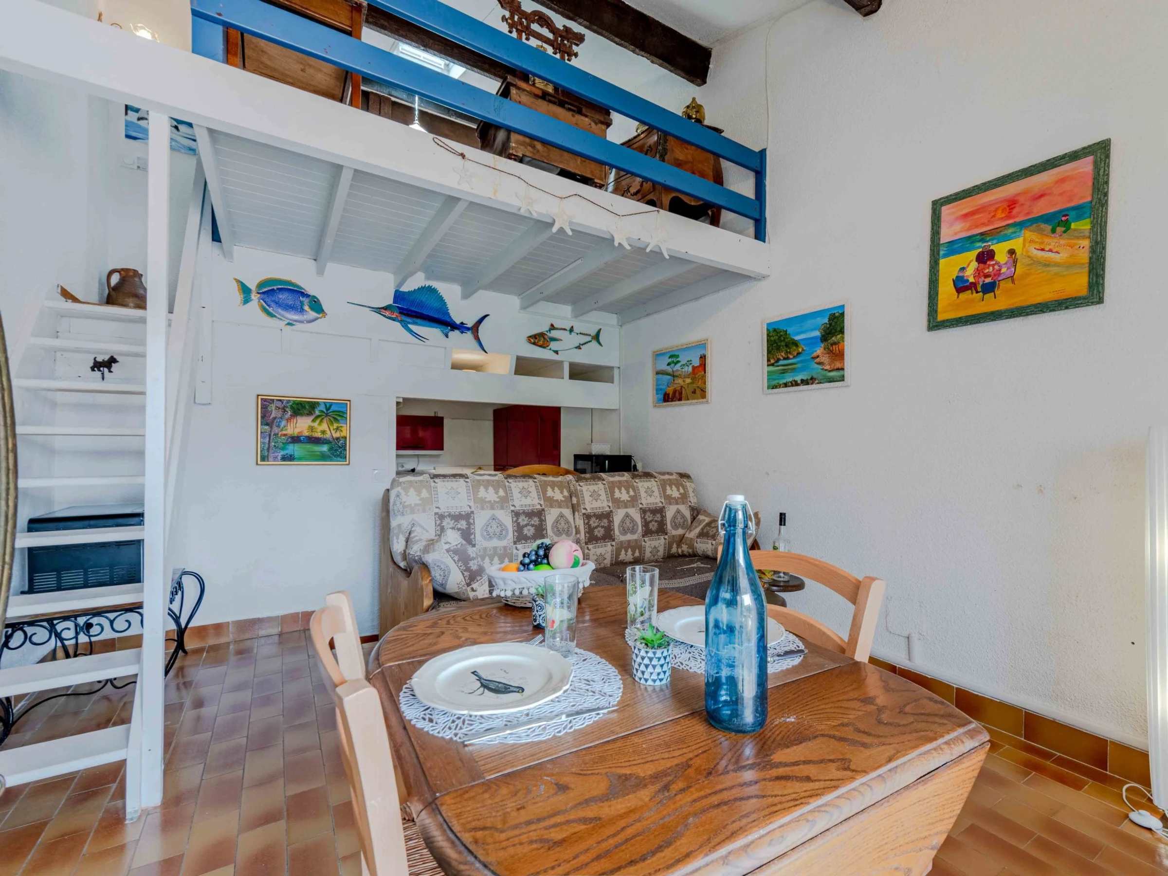 Maison mitoyenne studio 30 m2, au rez-de-chaussée, situation sud-ouest. Séjour/salle à manger avec TV (écran plat). Sortie sur la terrasse. Coin cuisine (lave-vaisselle, 4 plaques à induction, grille-pain, micro-ondes, congélateur, cafetière électrique) avec air-conditionné. Douche/WC. À l'étage supérieur: galerie mansardée avec 1 lit (90 cm, longueur 190 cm), 1 grand-lit (1 x 140 cm, longueur 190 cm). WC séparé. Terrasse 7 m2. Meubles de terrasse. A disposition: lave-linge. Internet (Connexion WIFI, en sus). Veuillez noter: maximum 1 animal/ chien autorisé. Détecteur de fumée. Annonce d'un particulier (art 155, IV du CGI).