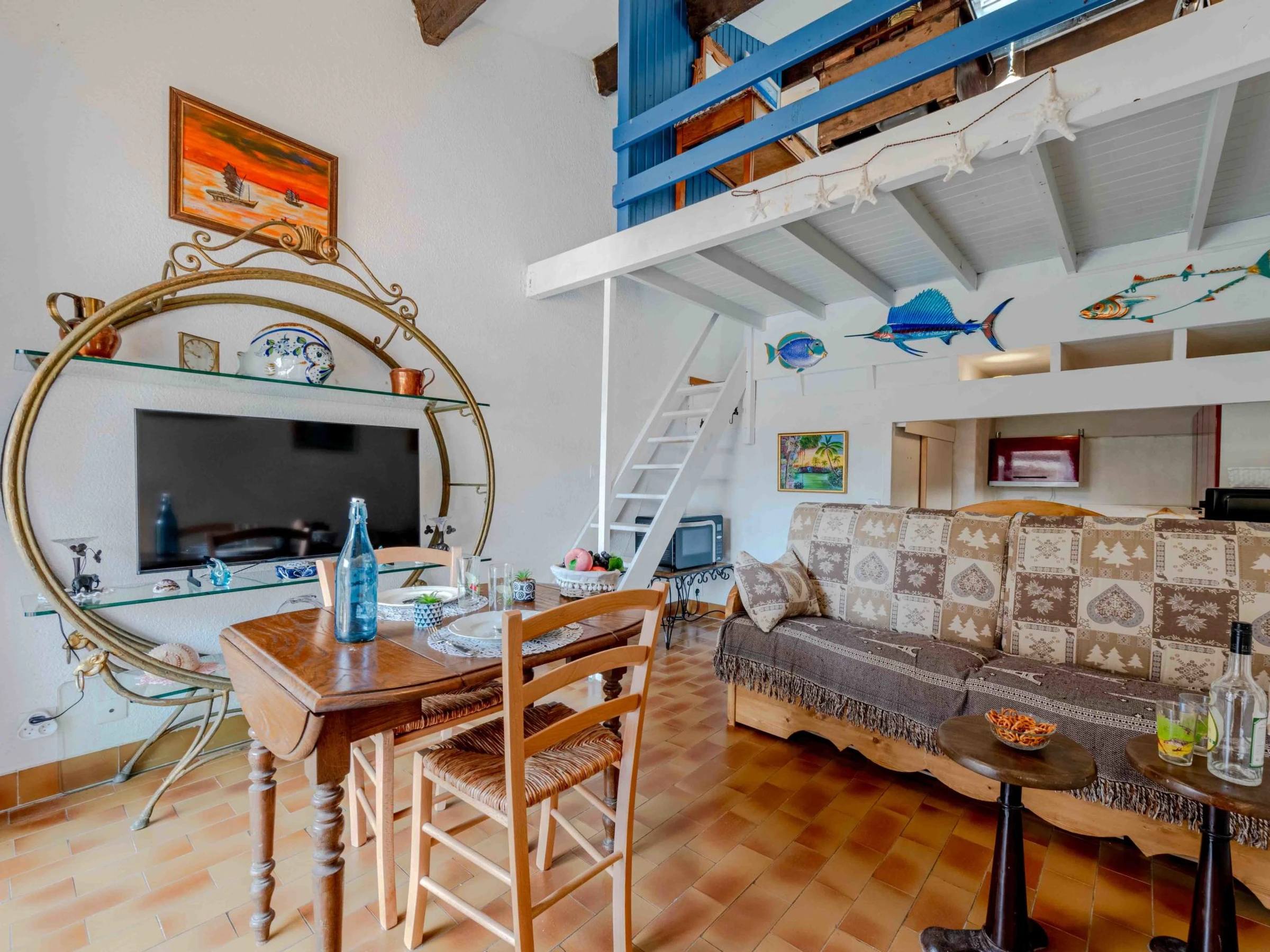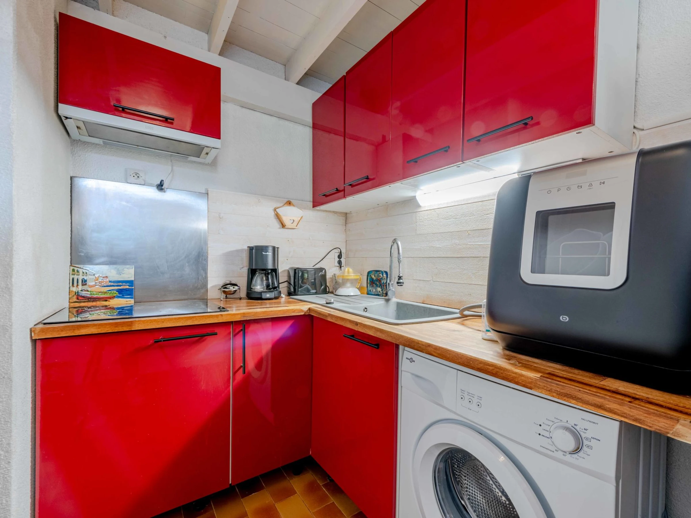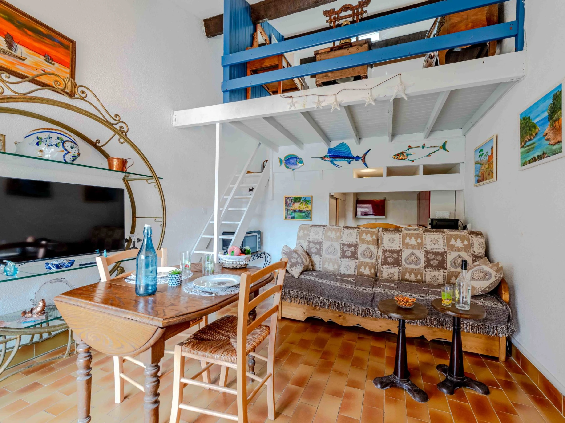 Maison mitoyenne studio 30 m2, au rez-de-chaussée, situation sud-ouest. Séjour/salle à manger avec TV (écran plat). Sortie sur la terrasse. Coin cuisine (lave-vaisselle, 4 plaques à induction, grille-pain, micro-ondes, congélateur, cafetière électrique) avec air-conditionné. Douche/WC. À l'étage supérieur: galerie mansardée avec 1 lit (90 cm, longueur 190 cm), 1 grand-lit (1 x 140 cm, longueur 190 cm). WC séparé. Terrasse 7 m2. Meubles de terrasse. A disposition: lave-linge. Internet (Connexion WIFI, en sus). Veuillez noter: maximum 1 animal/ chien autorisé. Détecteur de fumée. Annonce d'un particulier (art 155, IV du CGI).