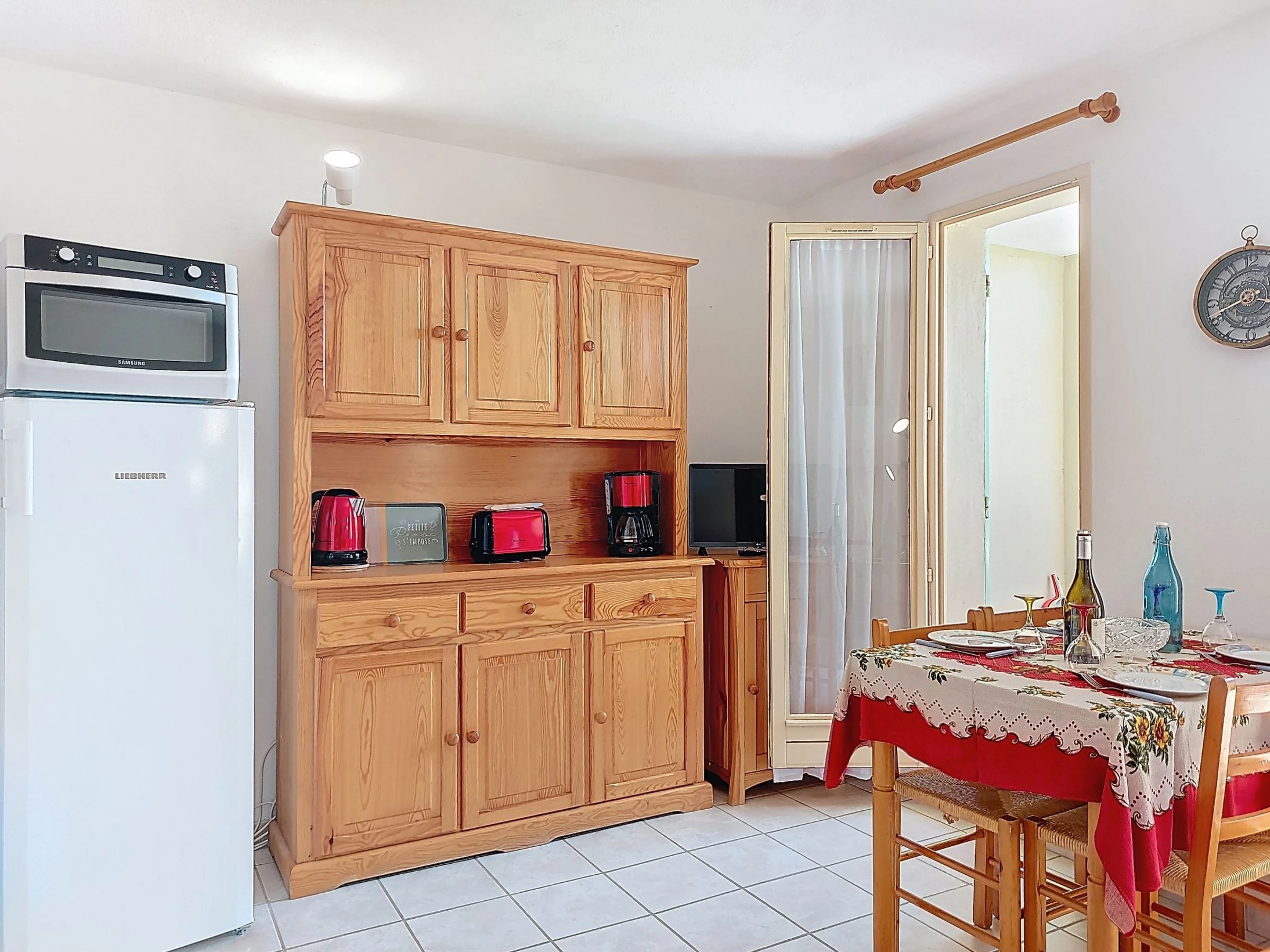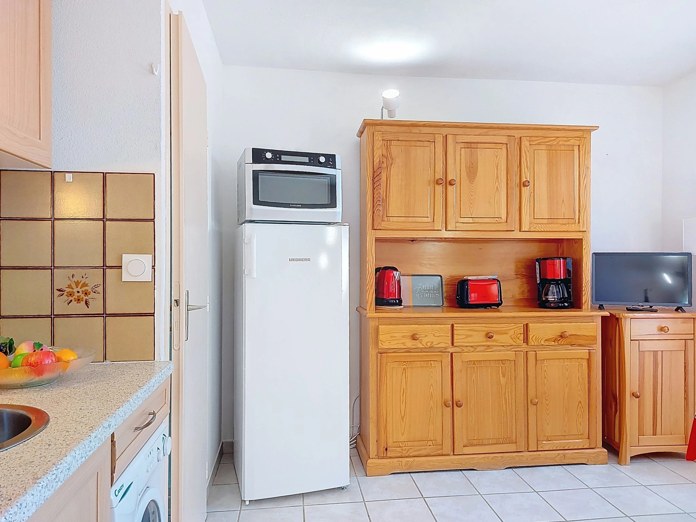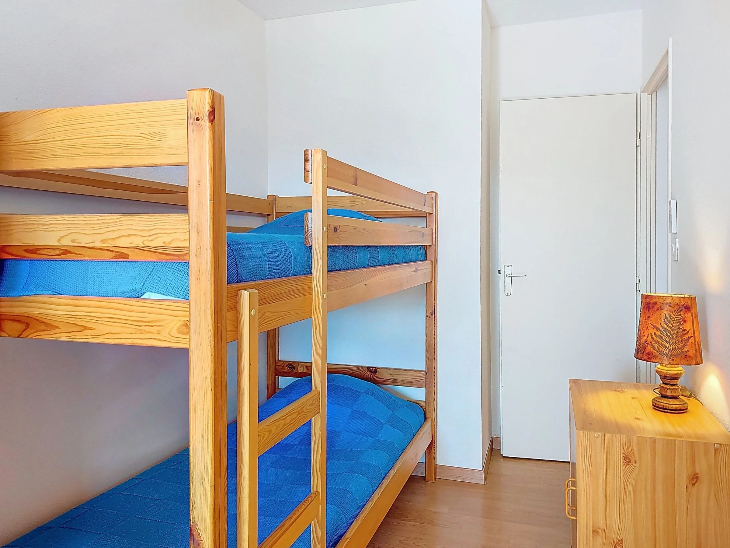 Maison mitoyenne 3 pièces 40 m2 sur 2 niveaux, au rez-de-chaussée, situation ouest. Séjour/salle à manger avec TV (écran plat). Sortie sur la terrasse. Cuisine/séjour (2 plaques vitrocéramiques, grille-pain, bouilloire électrique, cafetière électrique, combiné micro-ondes). Douche/WC. À l'étage supérieur: 1 chambre avec 1 grand-lit (1 x 140 cm, longueur 190 cm), air-conditionné. 1 chambre avec 1 x 2 lits superposés (80 cm, longueur 190 cm), air-conditionné. Sortie sur le balcon. Terrasse 15 m2. Meubles de terrasse. Vue sur le jardin. A disposition: lave-linge, sèche-cheveux. Internet (Connexion WIFI, en sus). Place de parking. Veuillez noter: détecteur de fumée. Annonce d'un particulier (art 155, IV du CGI).
