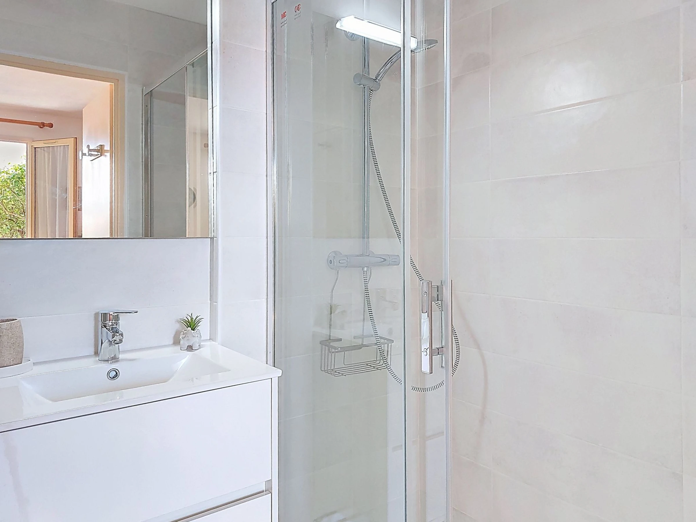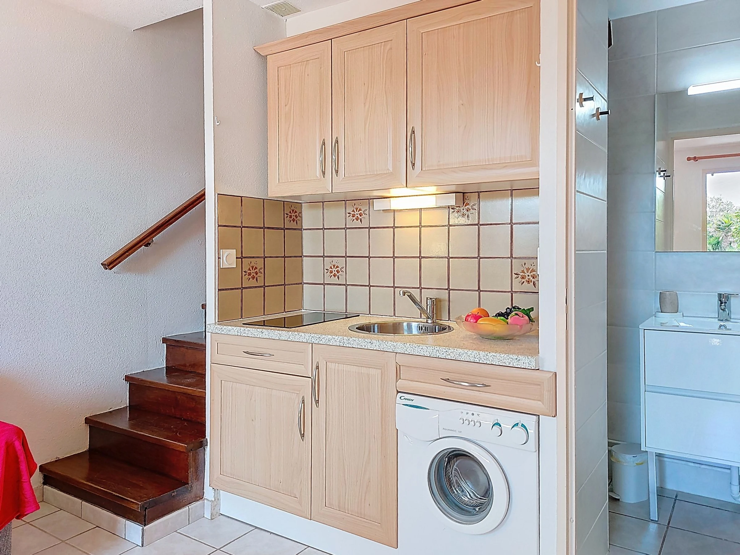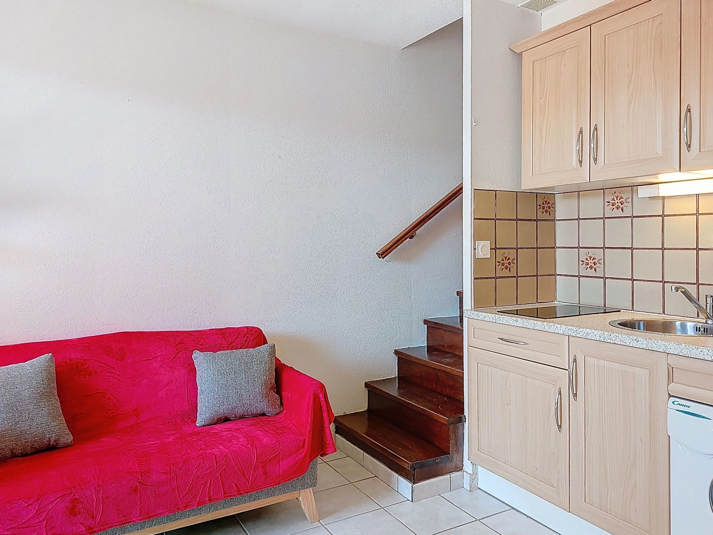 Maison mitoyenne 3 pièces 40 m2 sur 2 niveaux, au rez-de-chaussée, situation ouest. Séjour/salle à manger avec TV (écran plat). Sortie sur la terrasse. Cuisine/séjour (2 plaques vitrocéramiques, grille-pain, bouilloire électrique, cafetière électrique, combiné micro-ondes). Douche/WC. À l'étage supérieur: 1 chambre avec 1 grand-lit (1 x 140 cm, longueur 190 cm), air-conditionné. 1 chambre avec 1 x 2 lits superposés (80 cm, longueur 190 cm), air-conditionné. Sortie sur le balcon. Terrasse 15 m2. Meubles de terrasse. Vue sur le jardin. A disposition: lave-linge, sèche-cheveux. Internet (Connexion WIFI, en sus). Place de parking. Veuillez noter: détecteur de fumée. Annonce d'un particulier (art 155, IV du CGI).