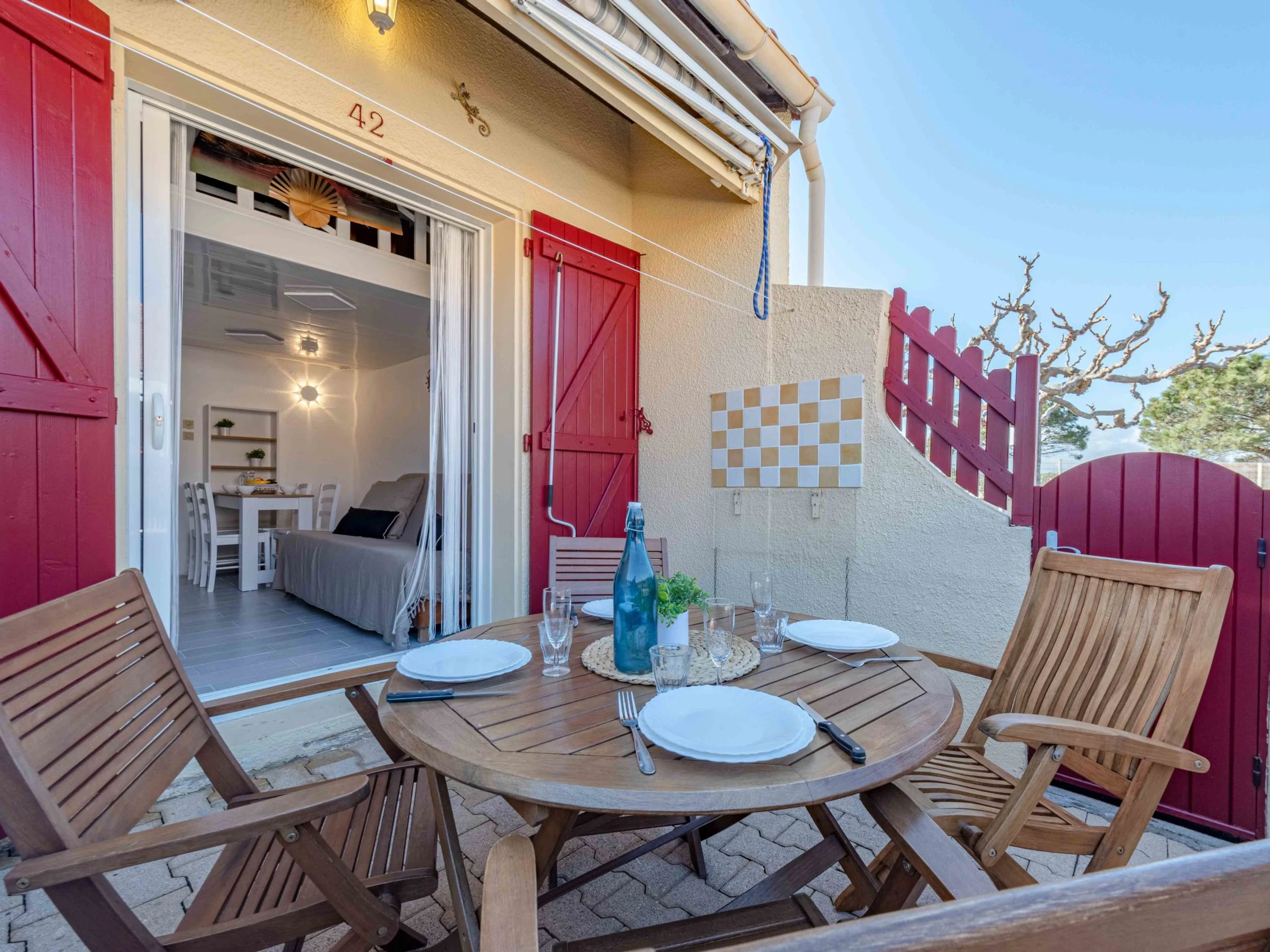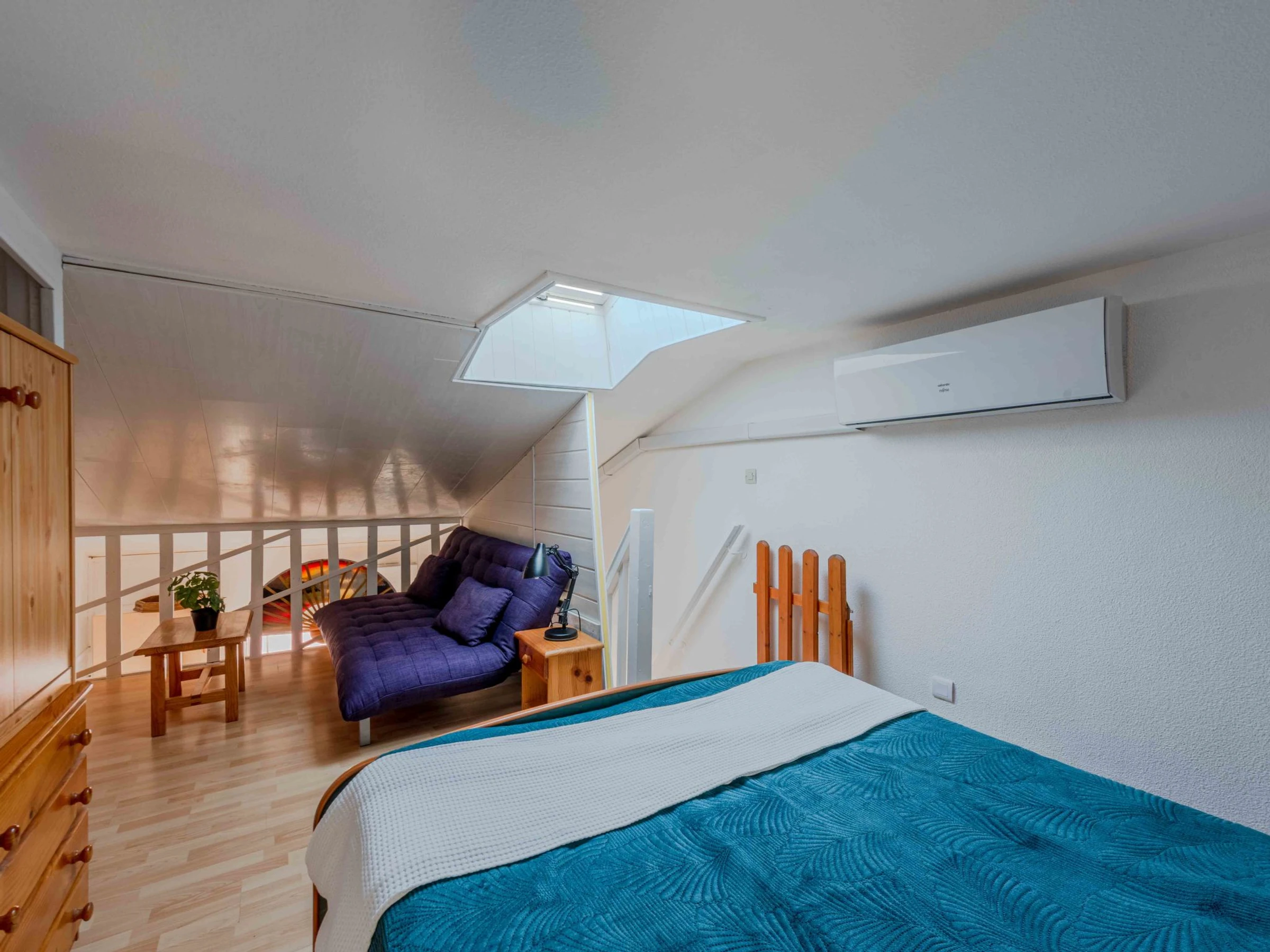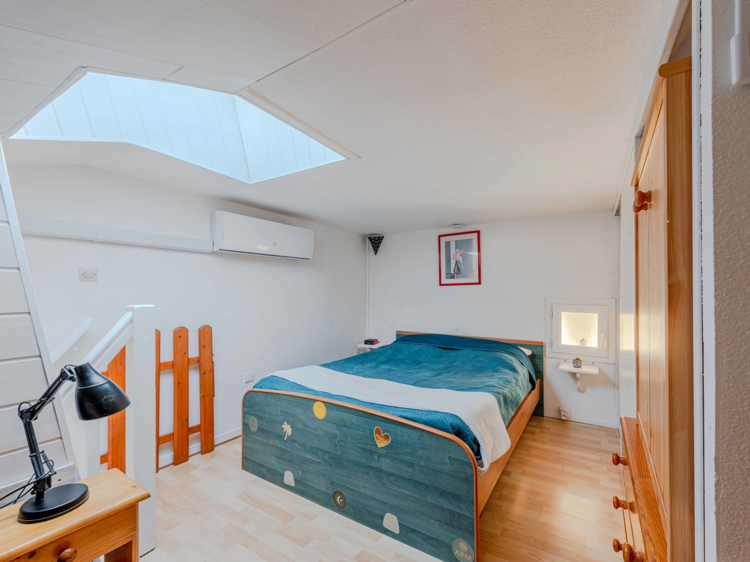 Studio 22 m2 sur 2 niveaux. Séjour/salle à manger avec 1 divan-lit double (1 x 140 cm, longueur 190 cm), TV (écran plat), air-conditionné. Sortie sur la terrasse. Cuisine ouverte (mini-four, lave-vaisselle, 3 plaques vitrocéramiques, grille-pain, bouilloire électrique, micro-ondes, cafetière électrique). Douche/WC. Chauffage, air-conditionné. À l'étage supérieur: galerie ouverte avec 1 grand-lit (1 x 140 cm, longueur 190 cm), air-conditionné. Terrasse 15 m2. Meubles de terrasse, barbecue électrique. A disposition: lave-linge, sèche-linge, fer à repasser. Internet (Connexion WIFI, en sus). Place de parking. Veuillez noter: détecteur de fumée. Au lieu d'une chambre fermée, des espaces de couchage sont situés dans une zone ouverte (galerie, alcôve...). Annonce d'un particulier (art 155, IV du CGI).
