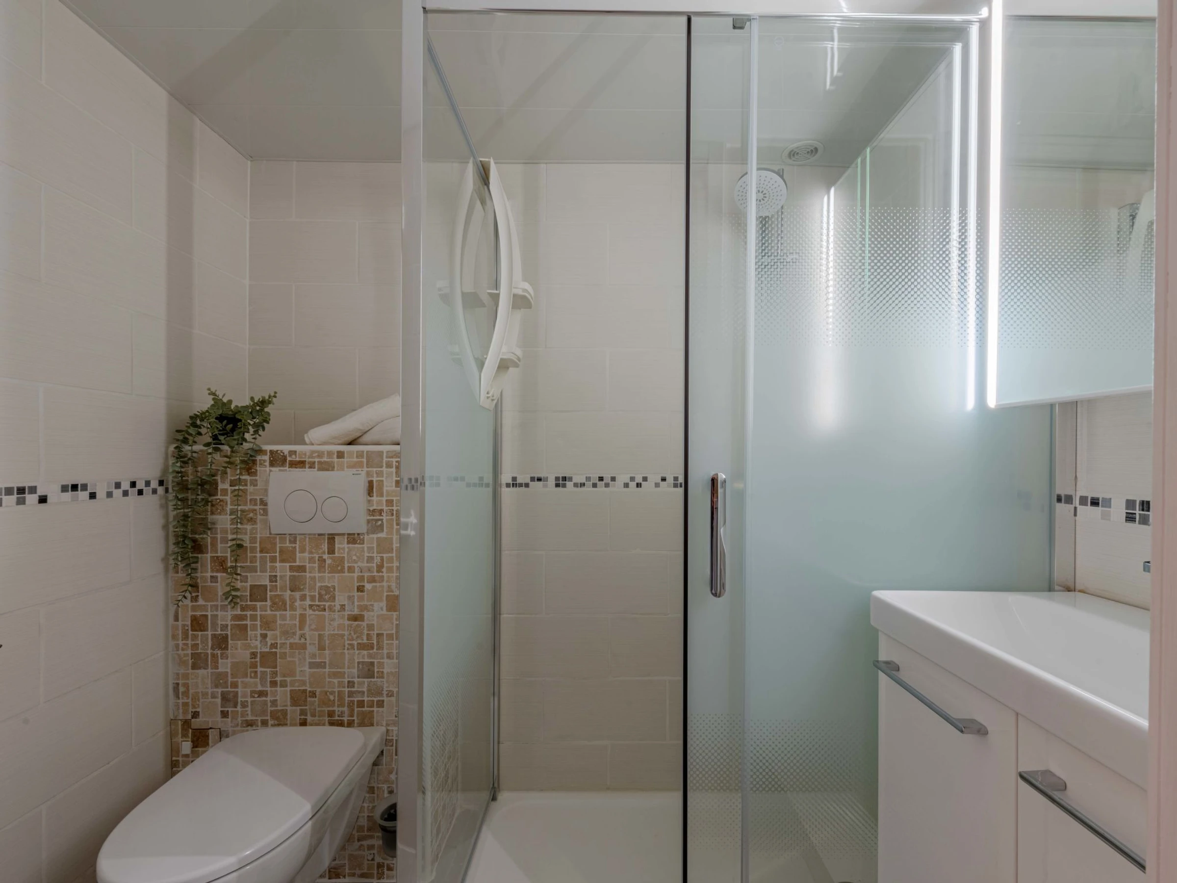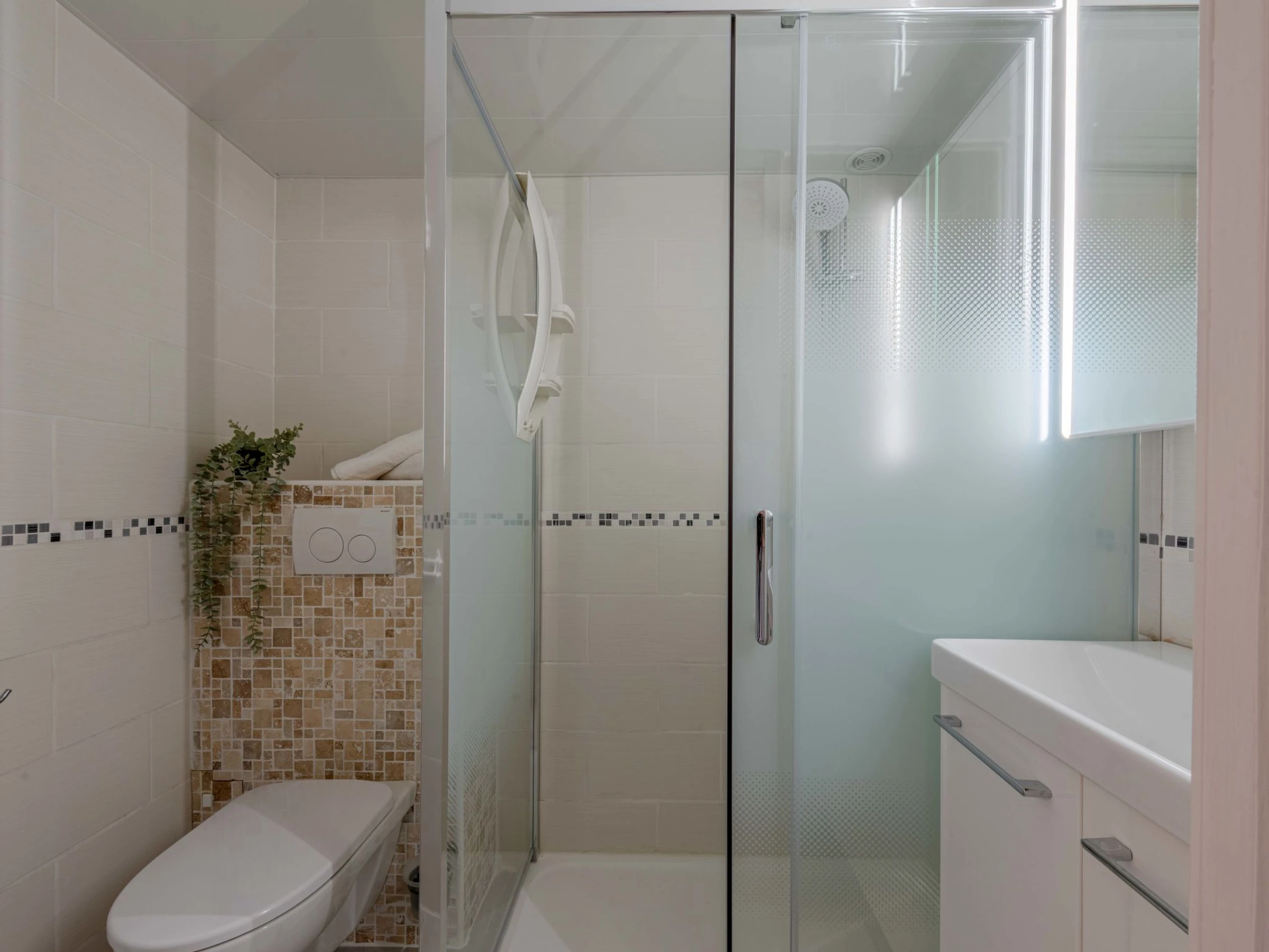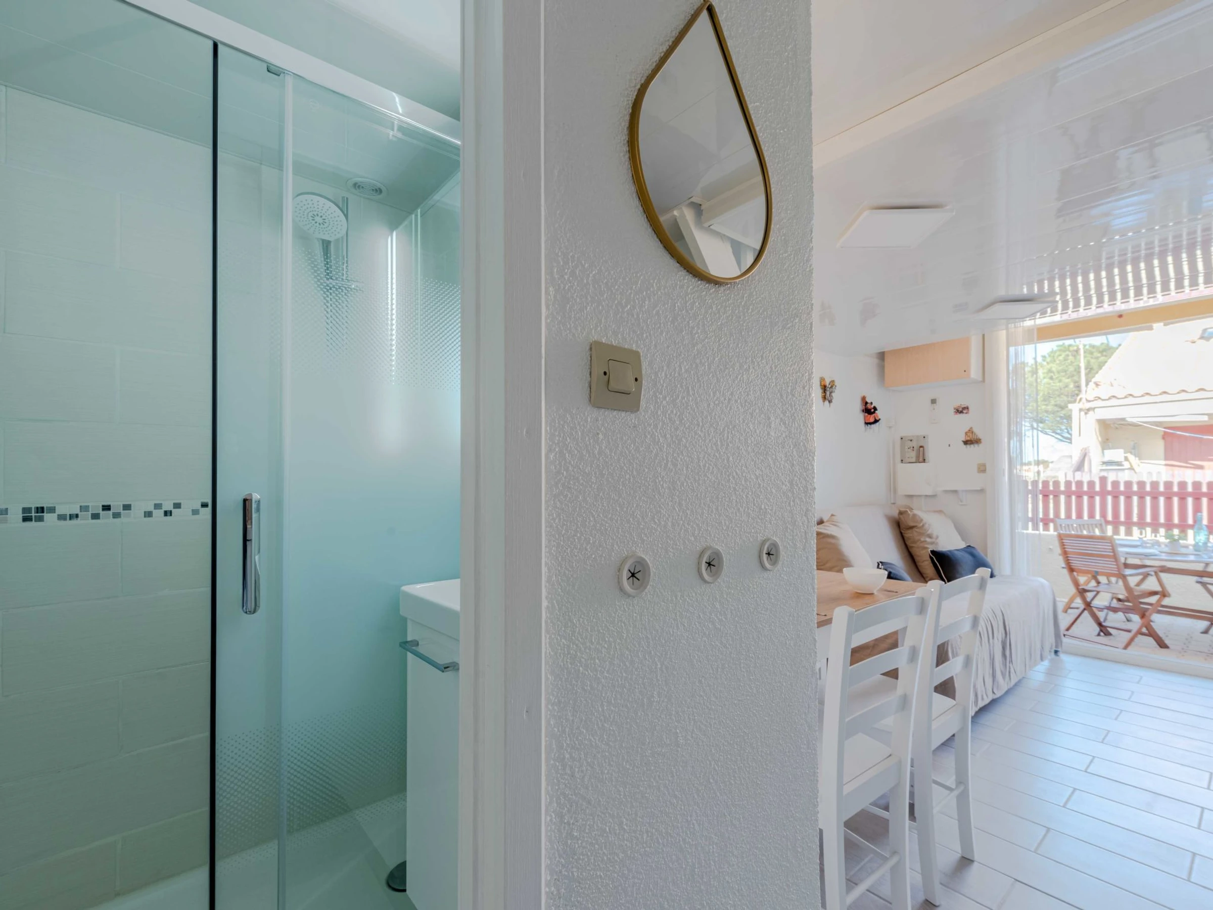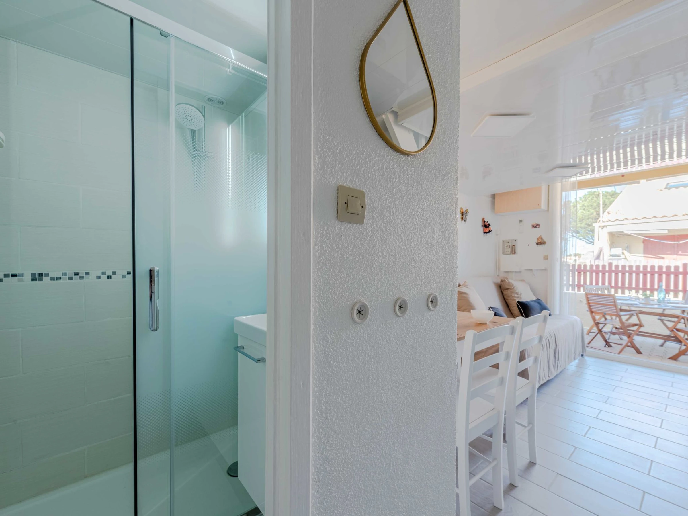 Studio 22 m2 sur 2 niveaux. Séjour/salle à manger avec 1 divan-lit double (1 x 140 cm, longueur 190 cm), TV (écran plat), air-conditionné. Sortie sur la terrasse. Cuisine ouverte (mini-four, lave-vaisselle, 3 plaques vitrocéramiques, grille-pain, bouilloire électrique, micro-ondes, cafetière électrique). Douche/WC. Chauffage, air-conditionné. À l'étage supérieur: galerie ouverte avec 1 grand-lit (1 x 140 cm, longueur 190 cm), air-conditionné. Terrasse 15 m2. Meubles de terrasse, barbecue électrique. A disposition: lave-linge, sèche-linge, fer à repasser. Internet (Connexion WIFI, en sus). Place de parking. Veuillez noter: détecteur de fumée. Au lieu d'une chambre fermée, des espaces de couchage sont situés dans une zone ouverte (galerie, alcôve...). Annonce d'un particulier (art 155, IV du CGI).