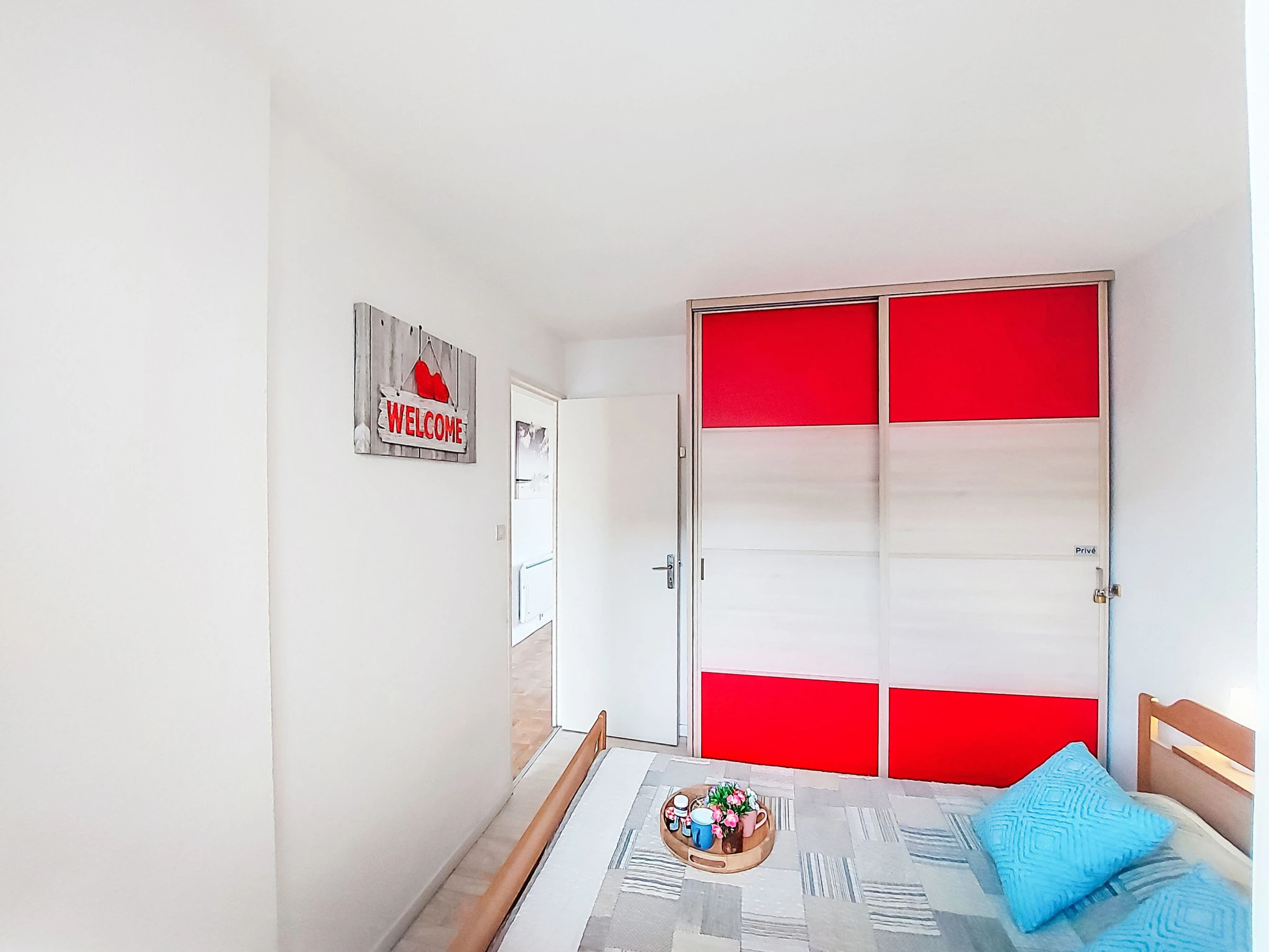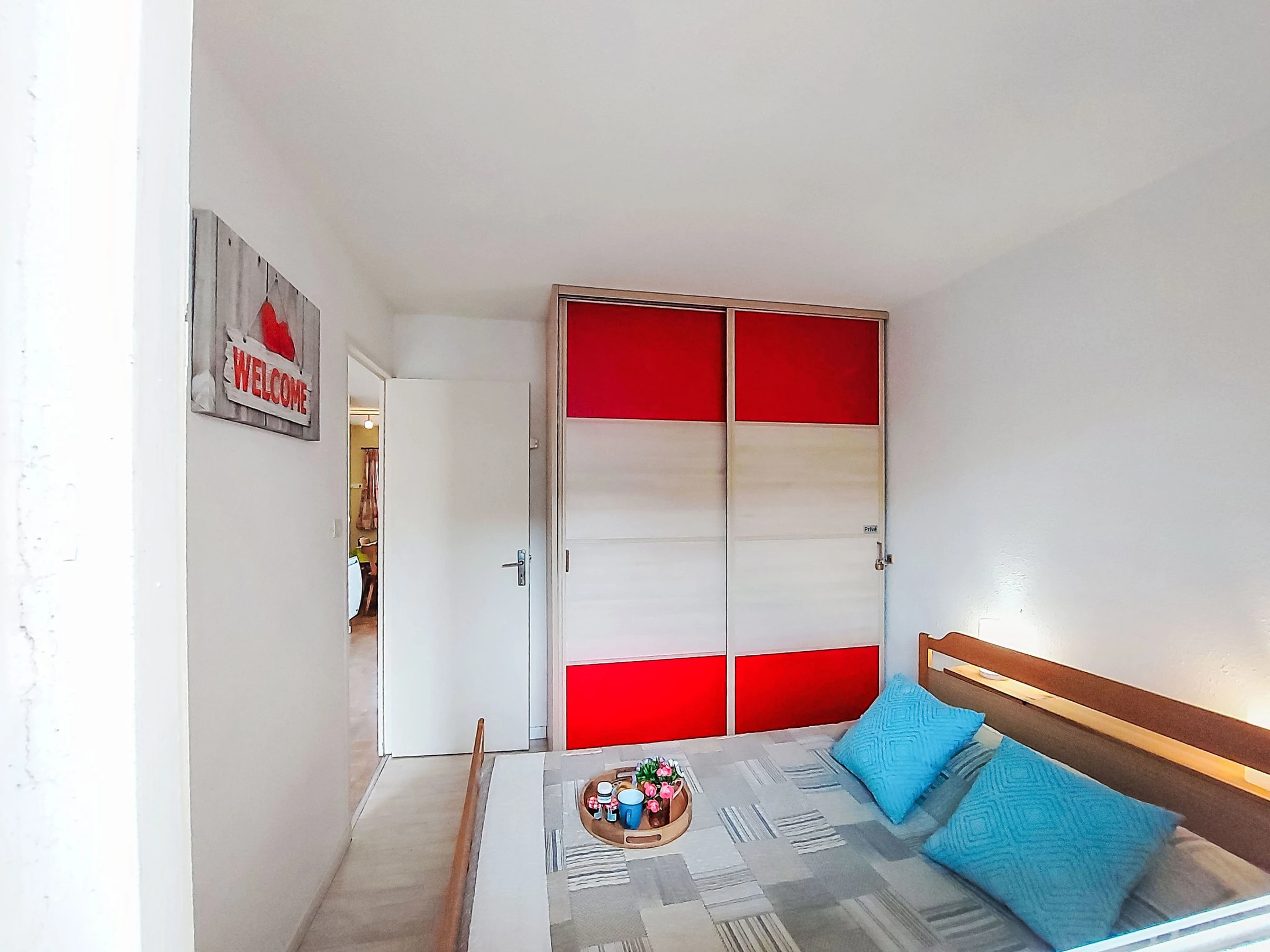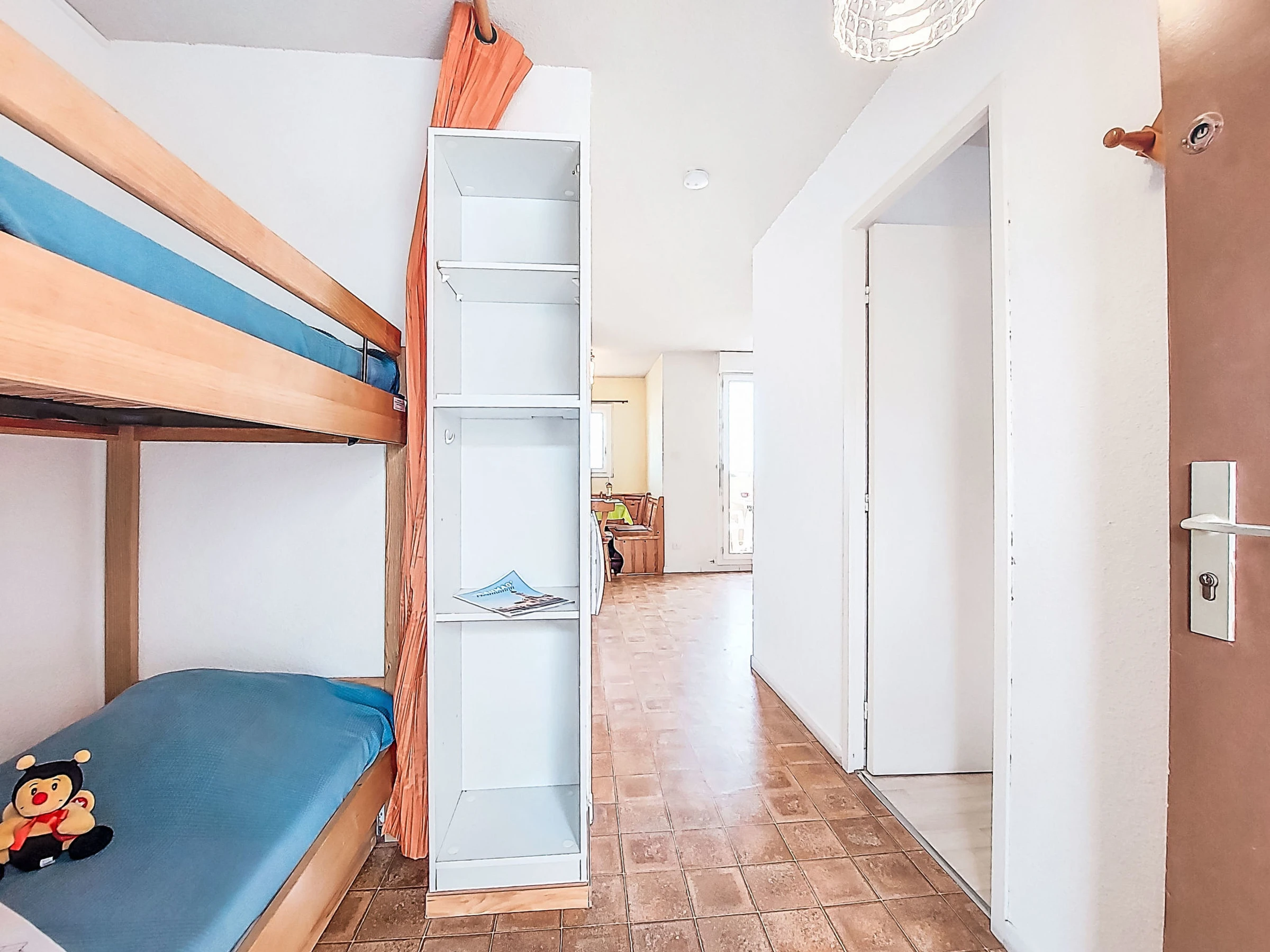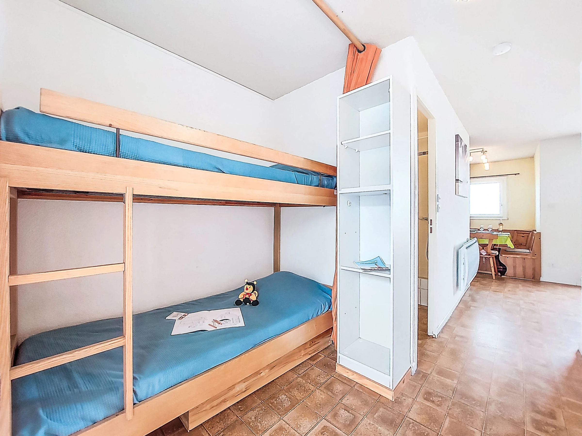 Apt 2 pièces 30 m2 au 4ème étage. Séjour/salle à manger avec TV. 1 chambre avec 1 grand-lit (140 cm, longueur 190 cm). Entrée avec 1 x 2 lits superposés (80 cm, longueur 185 cm). Coin cuisine (3 plaques vitrocéramiques, combiné micro-ondes). Douche/WC. Terrasse 4 m2, situation est. Meubles de terrasse. A disposition: Internet (Connexion WIFI, en sus). Place de parking. Veuillez noter: parking pour 1 petite voiture. Maximum 1 animal/ chien autorisé. Détecteur de fumée. [hidden]