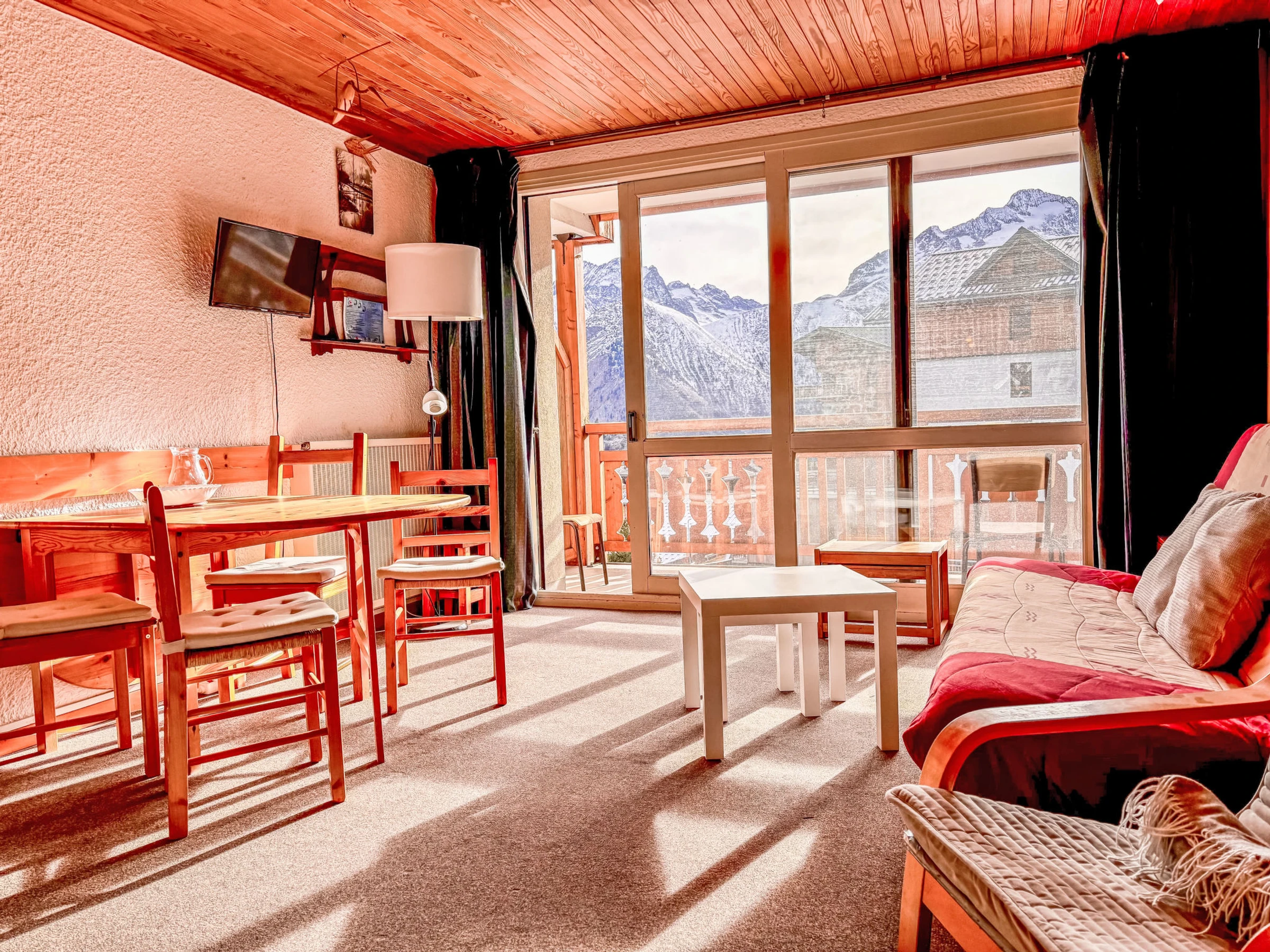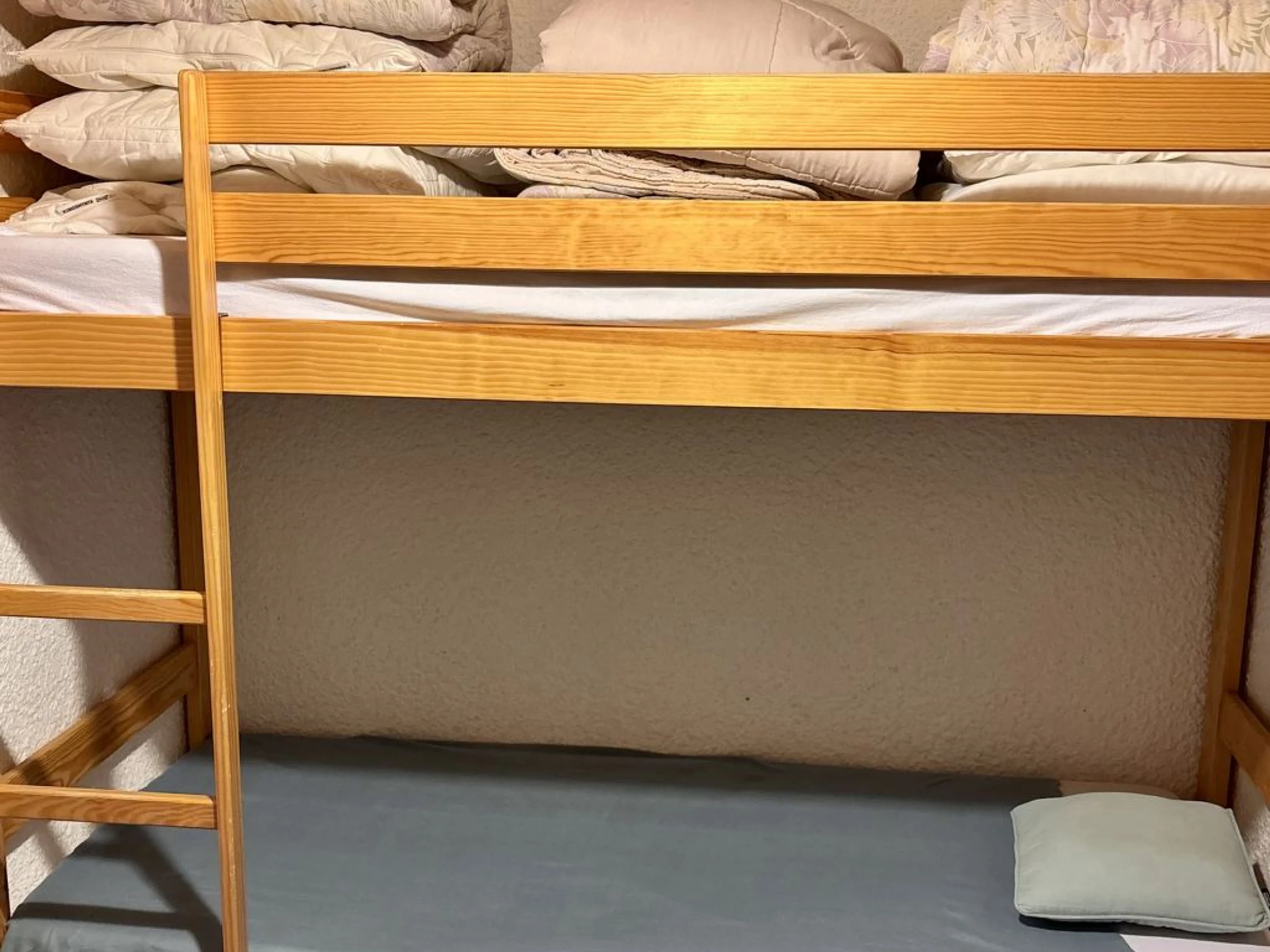 Studio 40 m2 au 4ème étage. Séjour/salle à manger avec 1 divan-lit double et TV. Cabine avec 1 x 2 lits superposés. Coin cuisine (2 plaques de cuisson, four). Salle de bains, WC séparé. Balcon, situation sud. Vue sur les montagnes. Au lieu d'une chambre fermée, des espaces de couchage sont situés dans une zone ouverte (galerie, alcôve...). [hidden]
